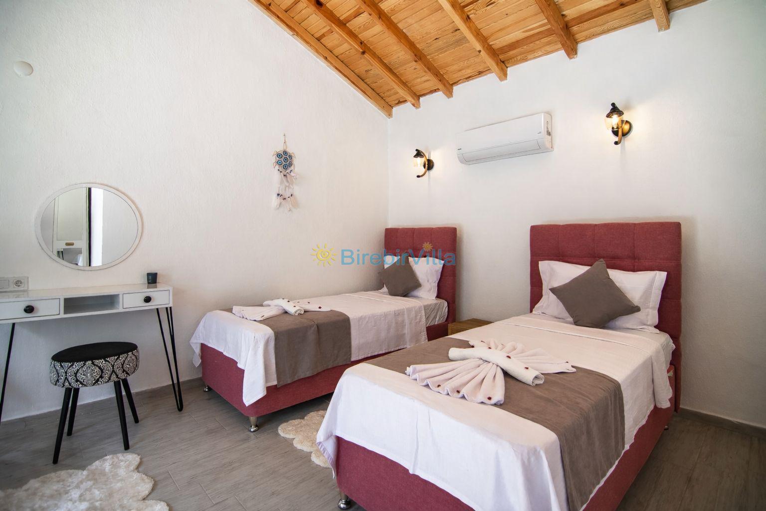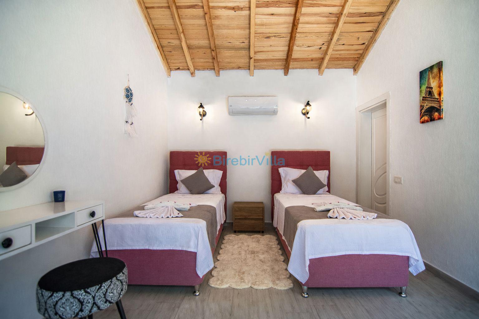 2.Yatak odası: Tek kişilik iki tane yatak, ebeveyn banyo, klima, elbise dolabı, koltuk ve park yatak bulunmaktadır.
