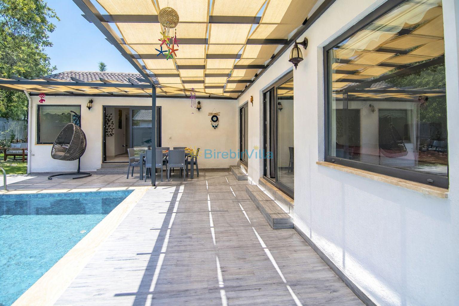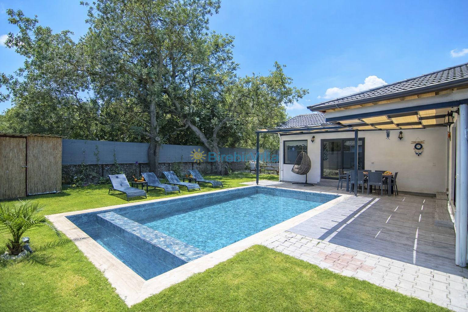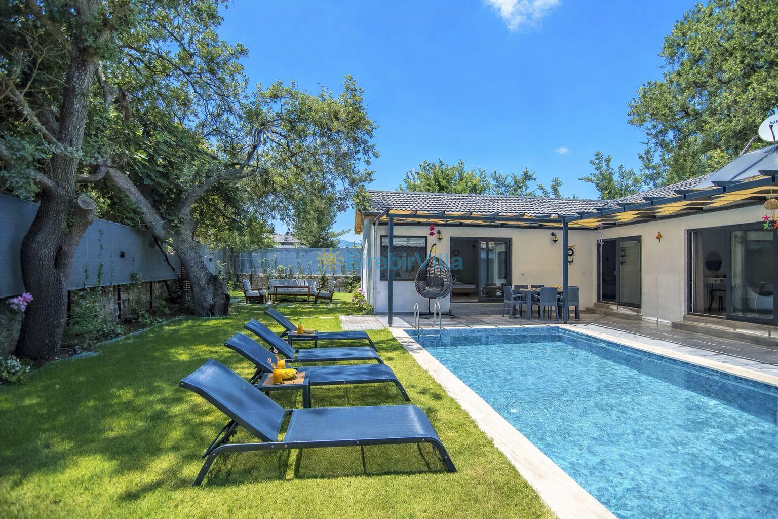 Not: Doğa ile iç içe konuma sahip olan tüm villalarımızda düzenli olarak ilaçlama yapılır. Buna rağmen çevrede haşere vb. bulunma ihtimali vardır. Havuzu korunaklı villalarımızda kesinlikle %100 görünmememe garantisi vermemekteyiz. Bu villalarımızda her zaman %10 sakınma payı mevcuttur. Sitemizde bulunan villa fotoğraflarının, görüntüyü ekrana sığdırmak için ’Geniş Açılı Lens’ ile çekilmektedir. Bu sebeple resimlerdeki objeler, gerçek boyutlarından daha büyük veya küçük görünebilmekte.