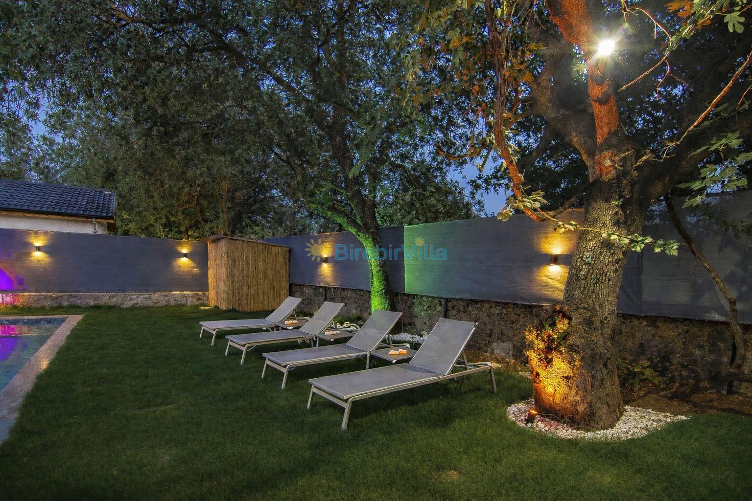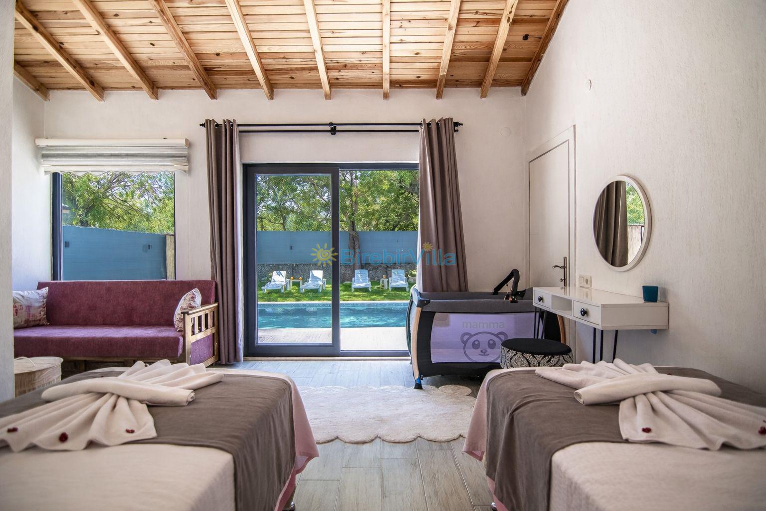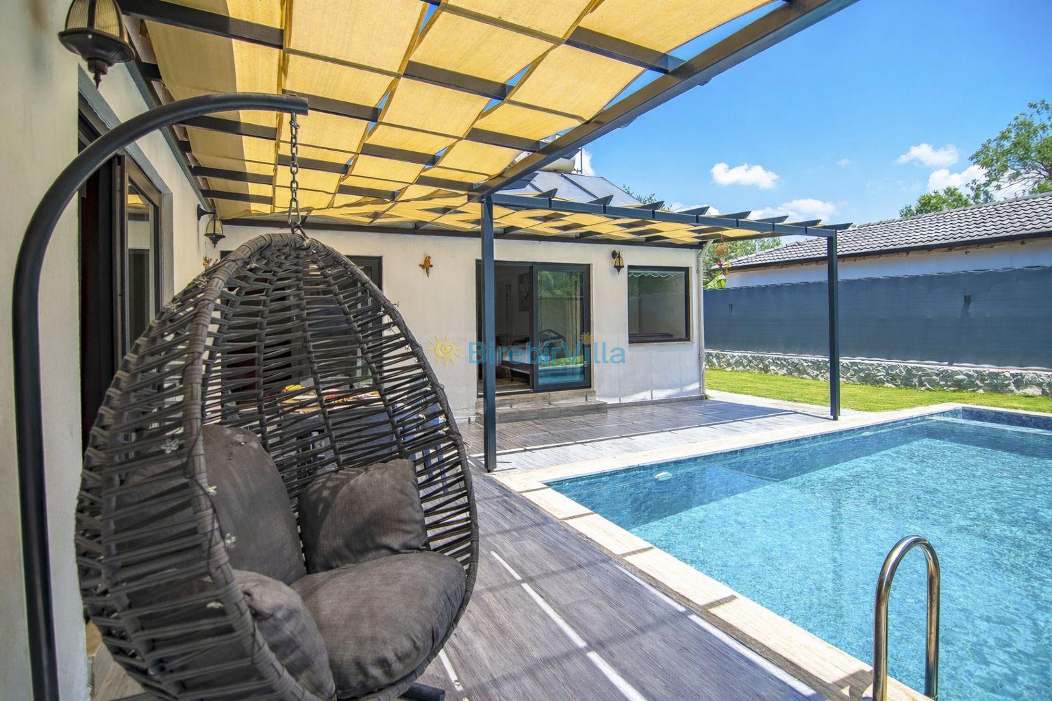 Not: Doğa ile iç içe konuma sahip olan tüm villalarımızda düzenli olarak ilaçlama yapılır. Buna rağmen çevrede haşere vb. bulunma ihtimali vardır. Havuzu korunaklı villalarımızda kesinlikle %100 görünmememe garantisi vermemekteyiz. Bu villalarımızda her zaman %10 sakınma payı mevcuttur. Sitemizde bulunan villa fotoğraflarının, görüntüyü ekrana sığdırmak için ’Geniş Açılı Lens’ ile çekilmektedir. Bu sebeple resimlerdeki objeler, gerçek boyutlarından daha büyük veya küçük görünebilmekte.