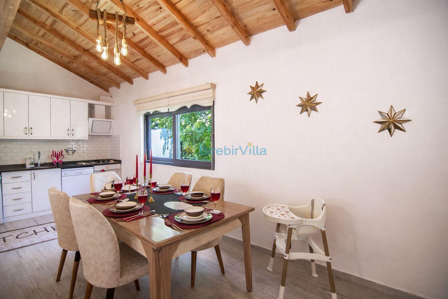 Mutfak: Açık mutfak, 4 kişi ve daha fazla kişiye yetecek kadar mutfak malzemeleri, bulaşık makinesi, çamaşır makinesi, fırın, ocak, buzdolabı, çaydanlık, tost makinesi, mikrodalga fırın , kahve makinesi ve kettle bulunmaktadır.