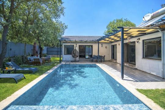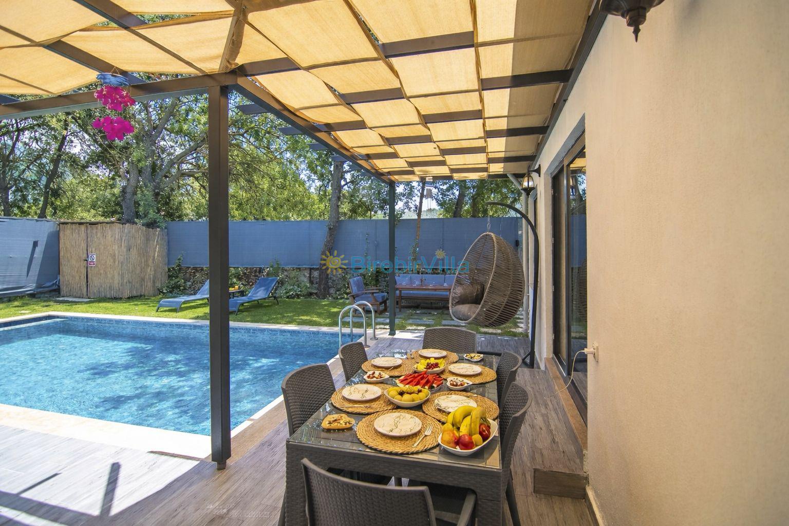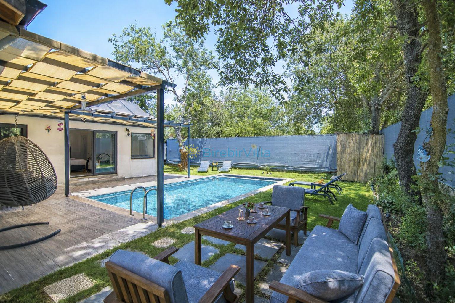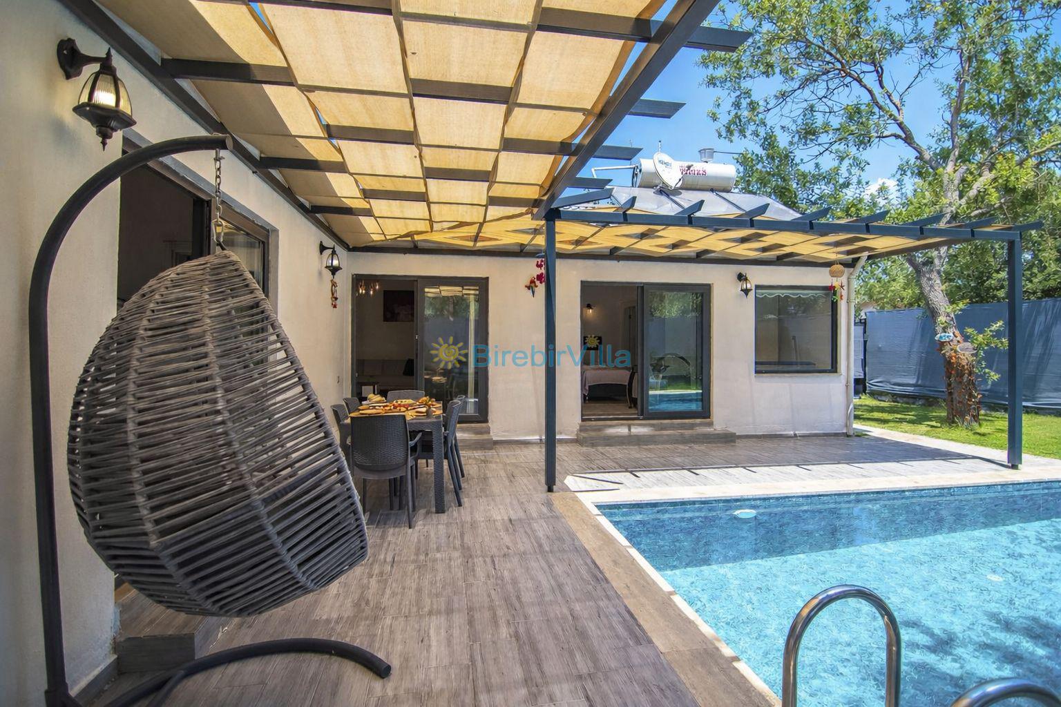 Not: Doğa ile iç içe konuma sahip olan tüm villalarımızda düzenli olarak ilaçlama yapılır. Buna rağmen çevrede haşere vb. bulunma ihtimali vardır. Havuzu korunaklı villalarımızda kesinlikle %100 görünmememe garantisi vermemekteyiz. Bu villalarımızda her zaman %10 sakınma payı mevcuttur. Sitemizde bulunan villa fotoğraflarının, görüntüyü ekrana sığdırmak için ’Geniş Açılı Lens’ ile çekilmektedir. Bu sebeple resimlerdeki objeler, gerçek boyutlarından daha büyük veya küçük görünebilmekte.