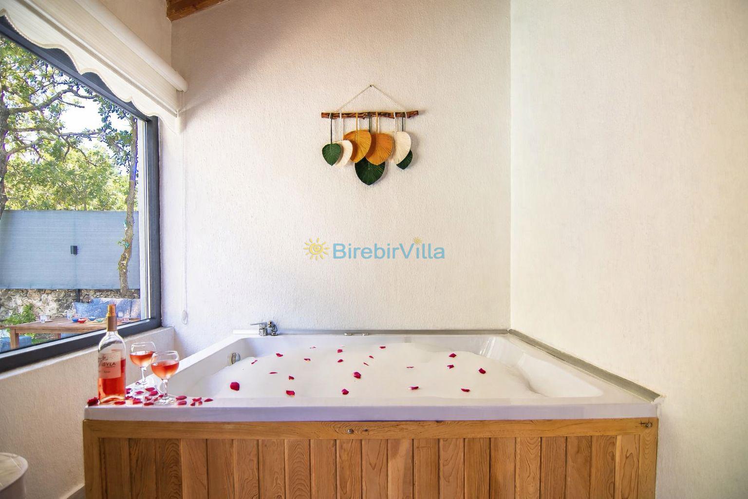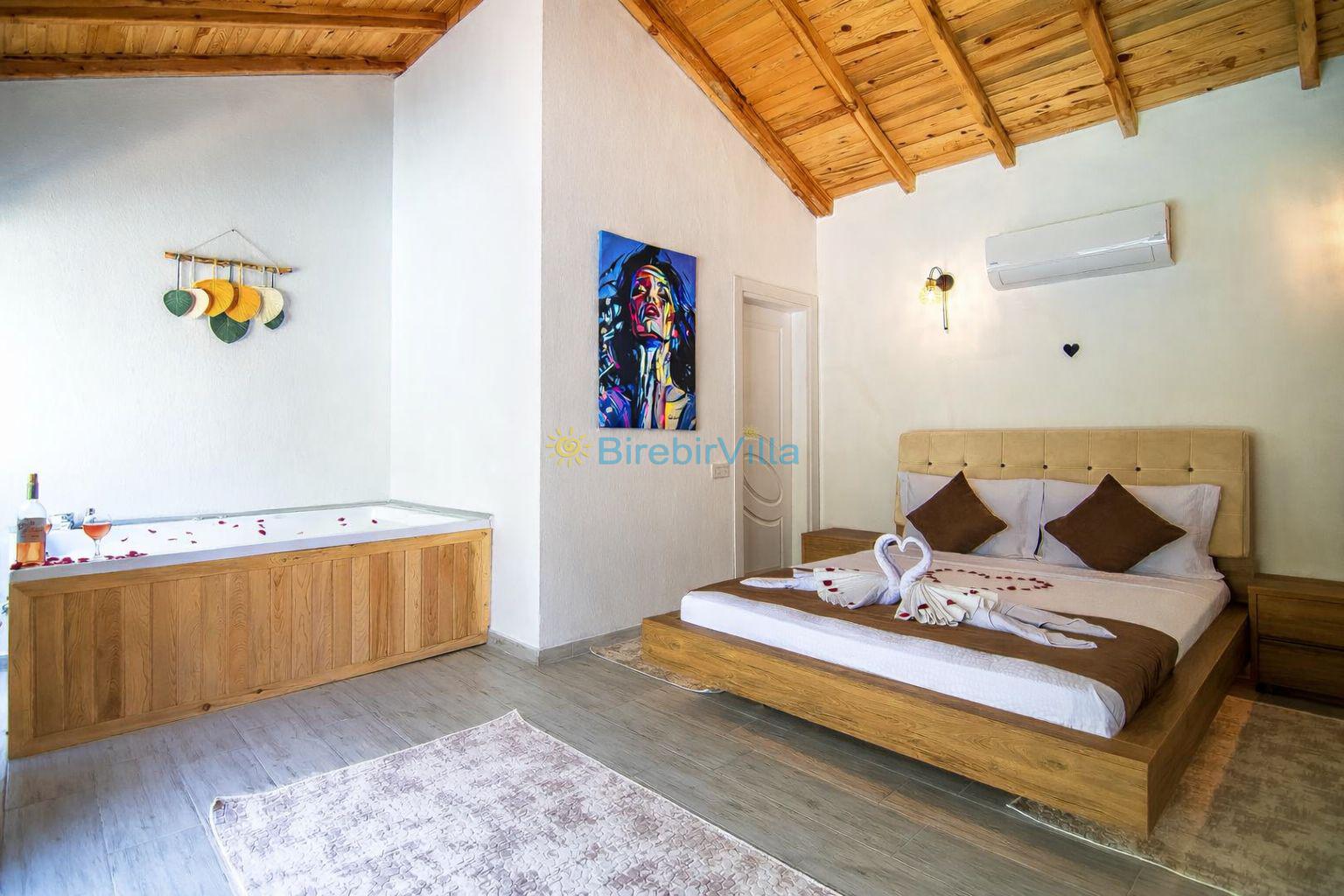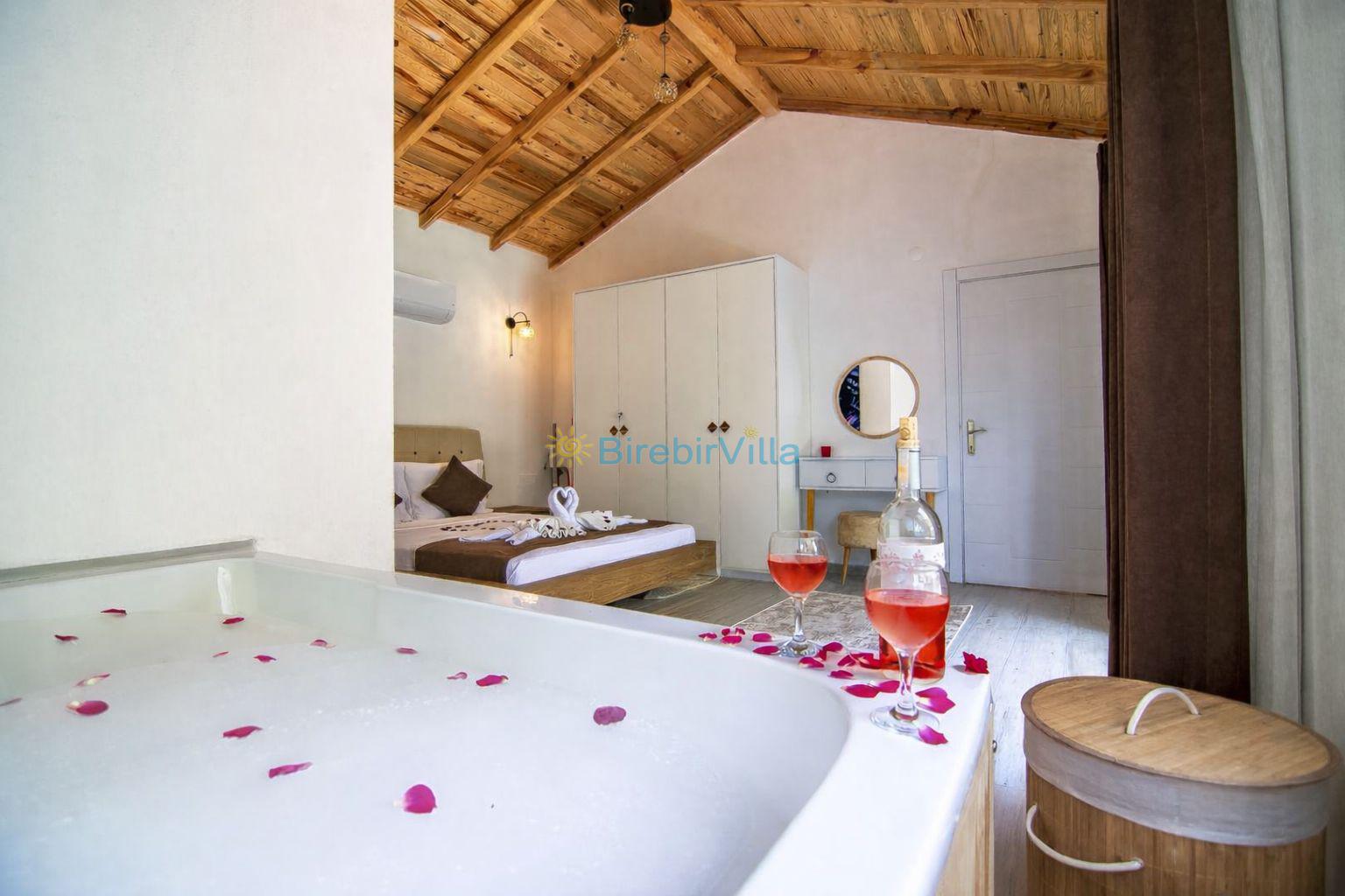 Villa Lavinya 2, Fethiye’nin Kayaköy mevkisinde yer alan, 2 yatak odalı ve 4 kişi konaklama kapasiteli jakuzili muhafazakar kiralık villa konseptine sahip özel bir tatil villasıdır. Korunaklı yapısı sayesinde gözlerden uzak, huzurlu ve güvenli bir tatil imkânı sunmaktadır. Özellikle Fethiye muhafazakar villa kiralama, Kayaköy jakuzili villa ve 4 kişilik kiralık villa arayışında olan misafirler için ideal olan Villa Lavinya 2, balayı çiftleri ve çekirdek aileler tarafından sıklıkla tercih edilmektedir. Modern ve konforlu donanımıyla misafirlerine keyifli bir konaklama deneyimi sunar.