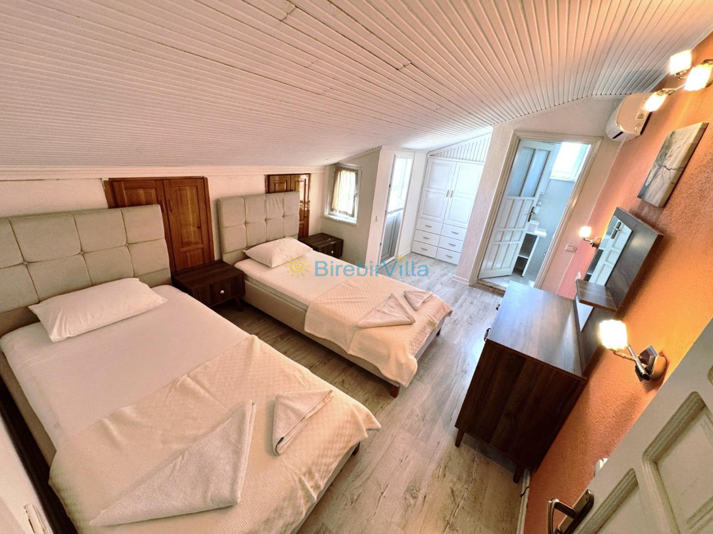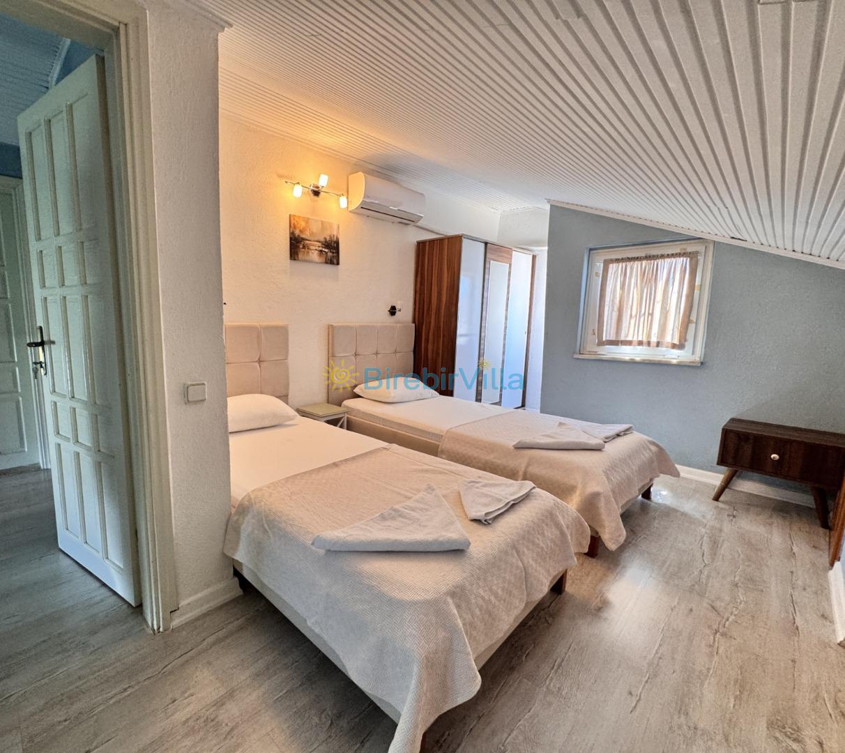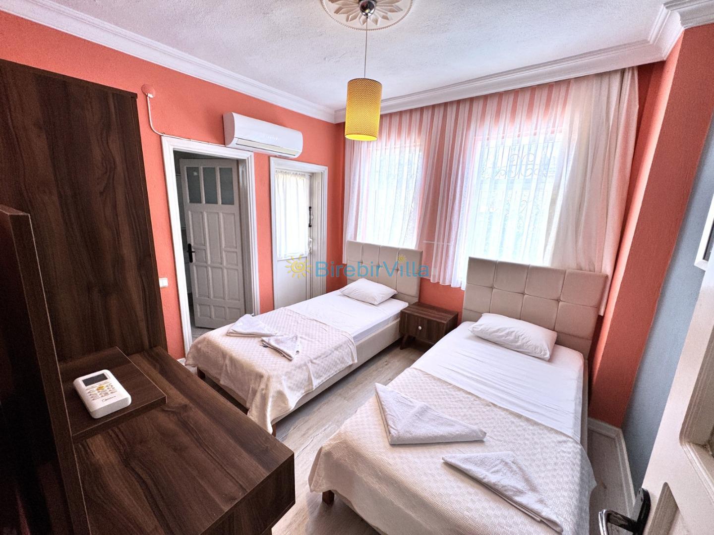 2. Yatak Odası : Tek kişilik iki adet yatak, elbise dolabı, komodin, klimave ebeveyn banyo bulunmaktadır.