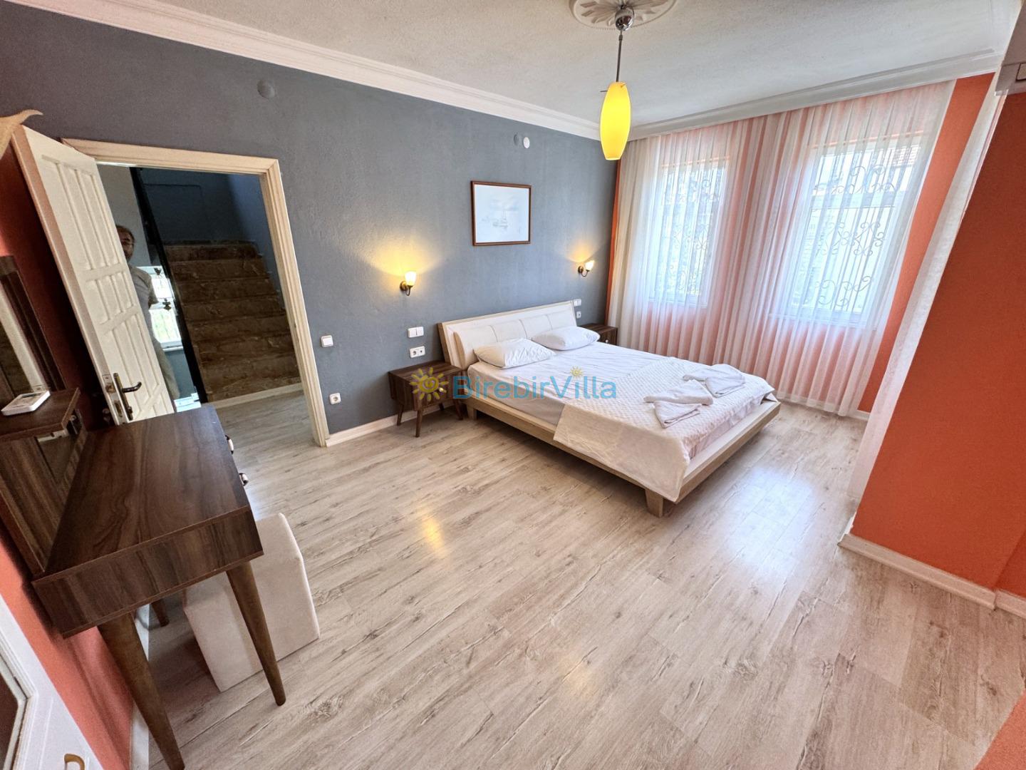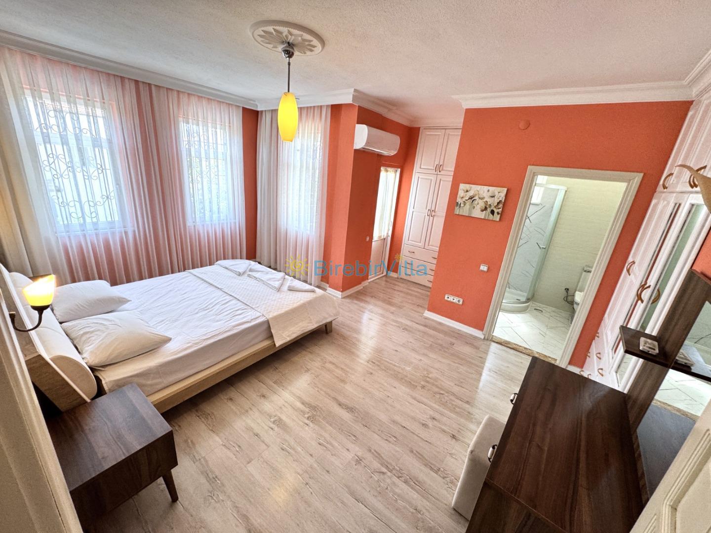 4. Yatak Odası : Çift kişilik bir adet yatak, elbise dolabı, komodin, klimave ebeveyn banyo bulunmaktadır.