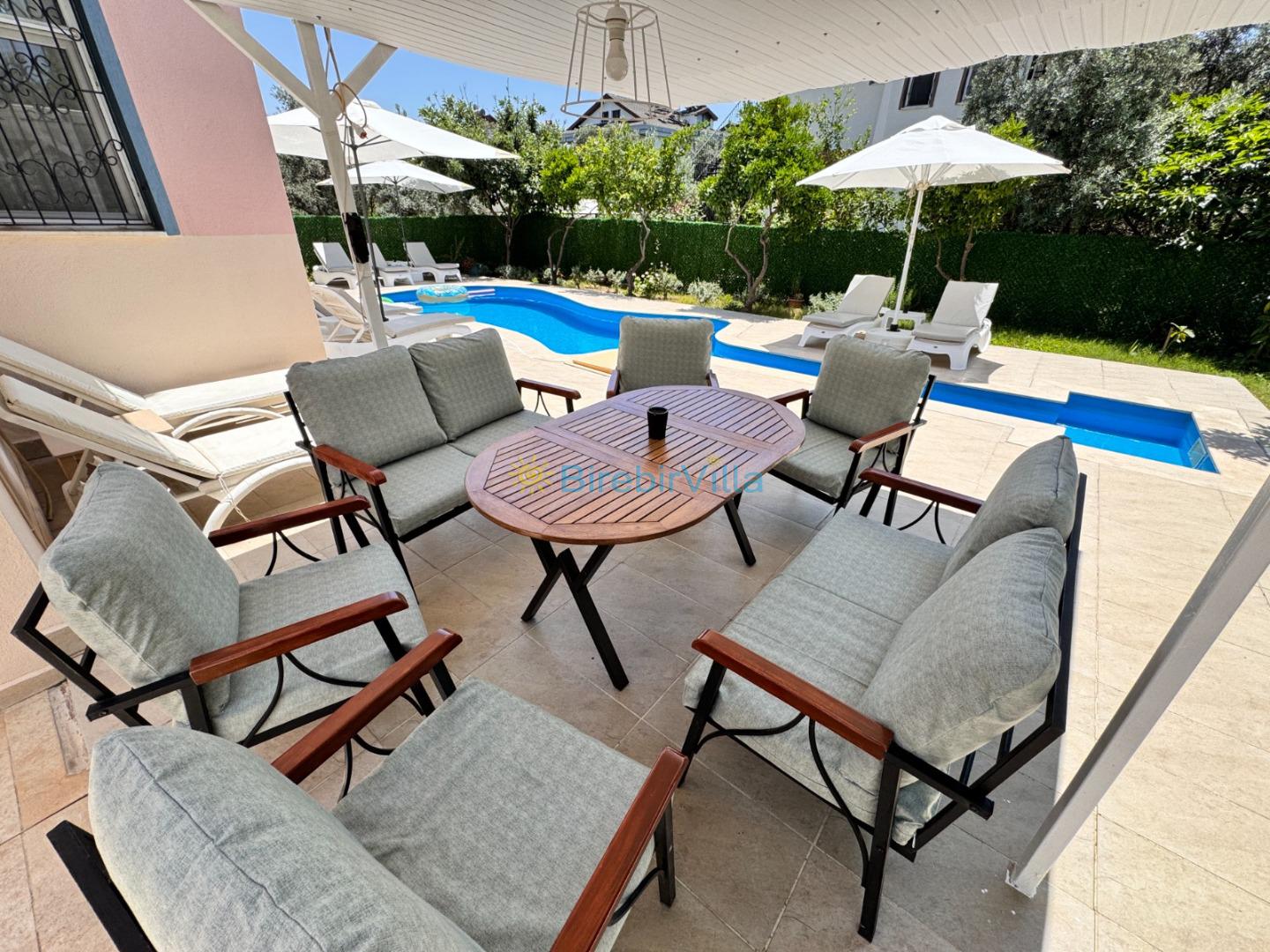 Not: Doğa ile iç içe yaşama sahibi olan tüm villalarımızda düzenli olarak ilaçlama yapılır. Buna rağmen çevrede haşere vb. olma ihtimali vardır. Havuzun korunaklı villalarımızda kesinlikle %100 görünmeme garantisi vermemekteyiz. Bu villalarımızda her zaman %10 sakınma payı mevcuttur. Sitemizde bulunan villa fotoğraflarının ekranı ekrana sığdırmak için 'Geniş Açılı Lens' ile çekilmektedir. Bu nedenle resimlerdeki objeler, gerçek boyutlardan daha büyük veya küçük görünebilmekte.
