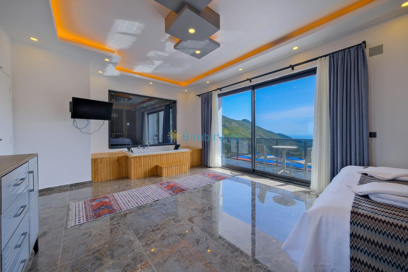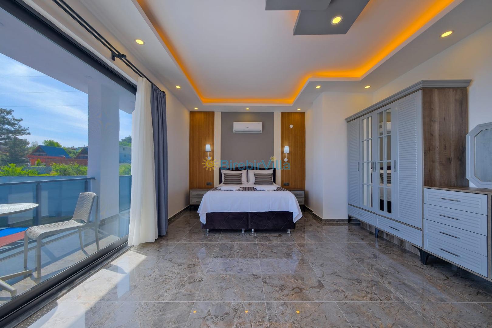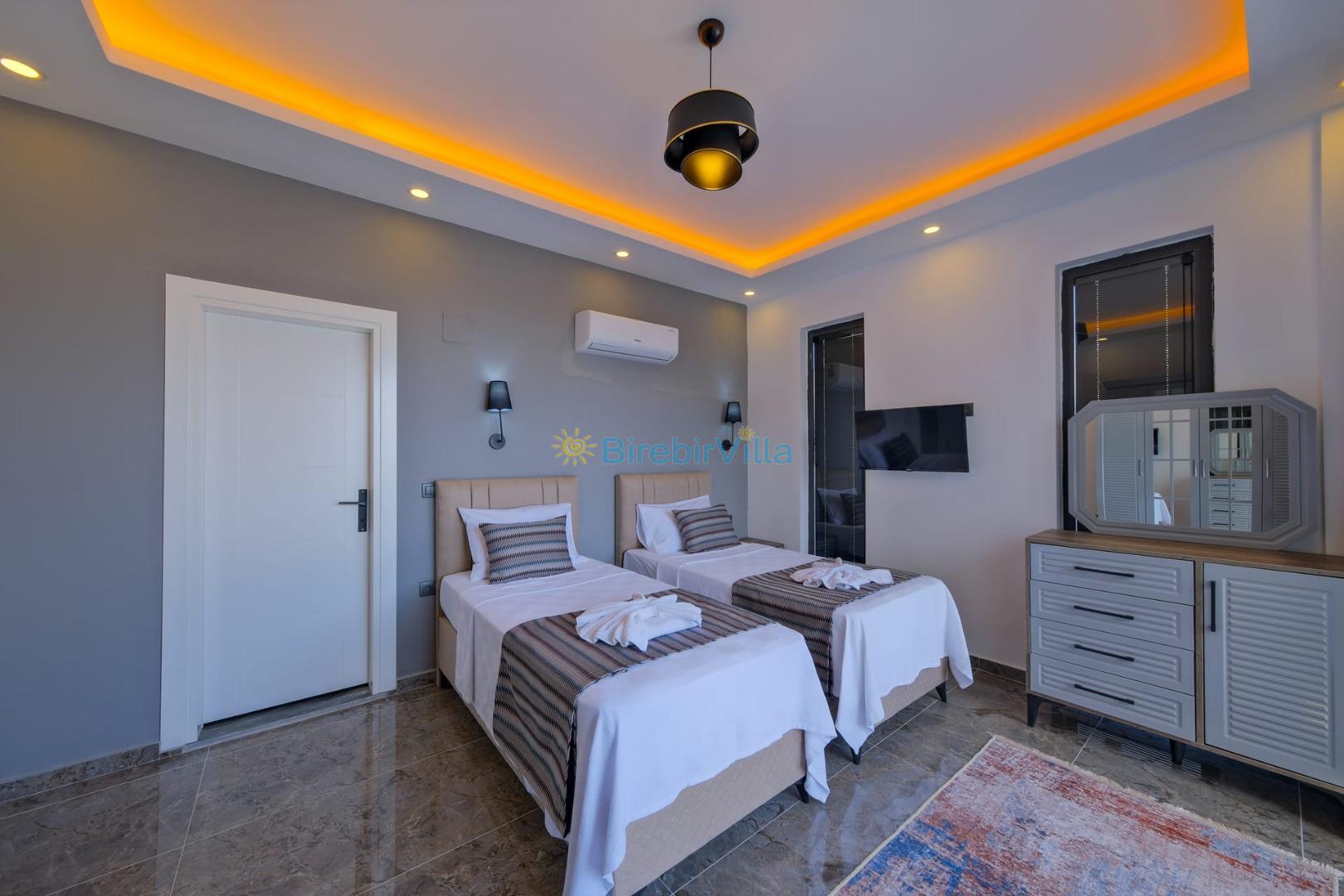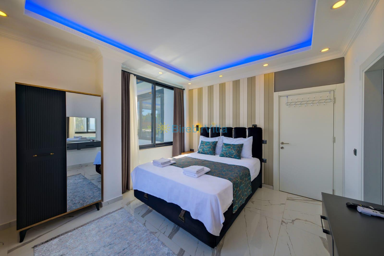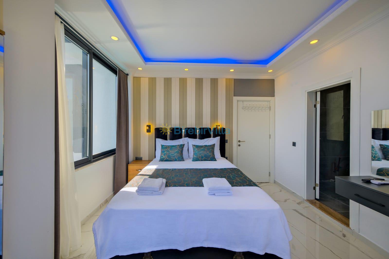 1. Yatak odası: Çift kişilik yatak, jakuzi, klima, elbise dolabı, komodin, ebeveyn banyo, makyaj masası, televizyon ve balkon bulunmaktadır.