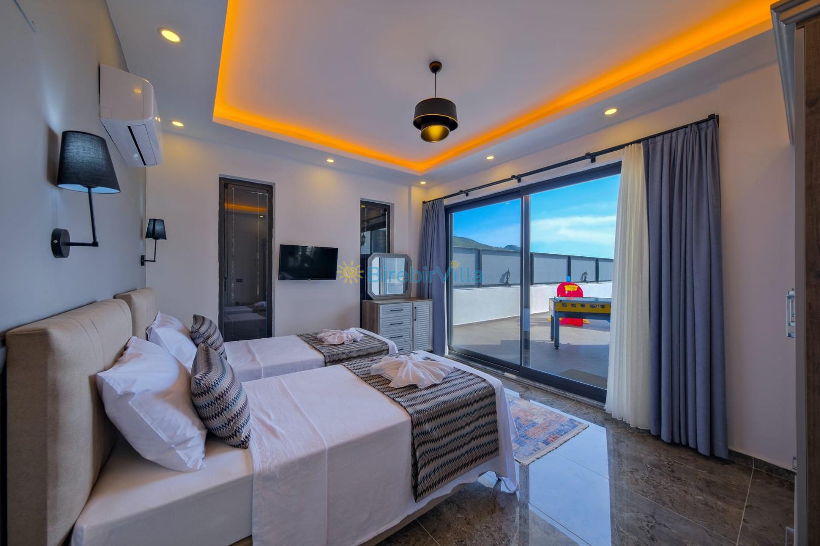 3. Yatak odası: Tek kişilik iki yatak, klima, elbise dolabı, komodin, makyaj masası,ebeveyn banyo ve balkon bulunmaktadır.