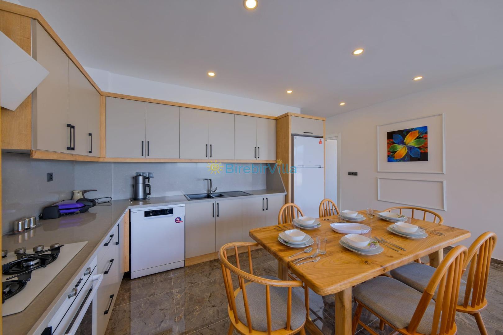 Mutfak : Açık plan mutfak, bulaşık makinesi, buzdolabı, elektrikli su ısıtıcı kettle, çamaşır makinesi, fırın, 4'lü ocak, 6 kişilik yemek takımı,tost makinesi, kaşık, bıçak, çatal takımı, tencere, bardaklar ve tava takımı bulunmaktadır.