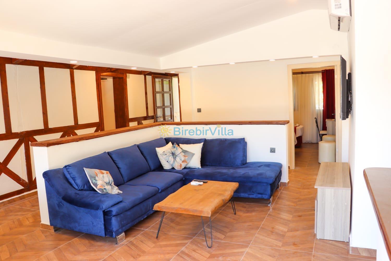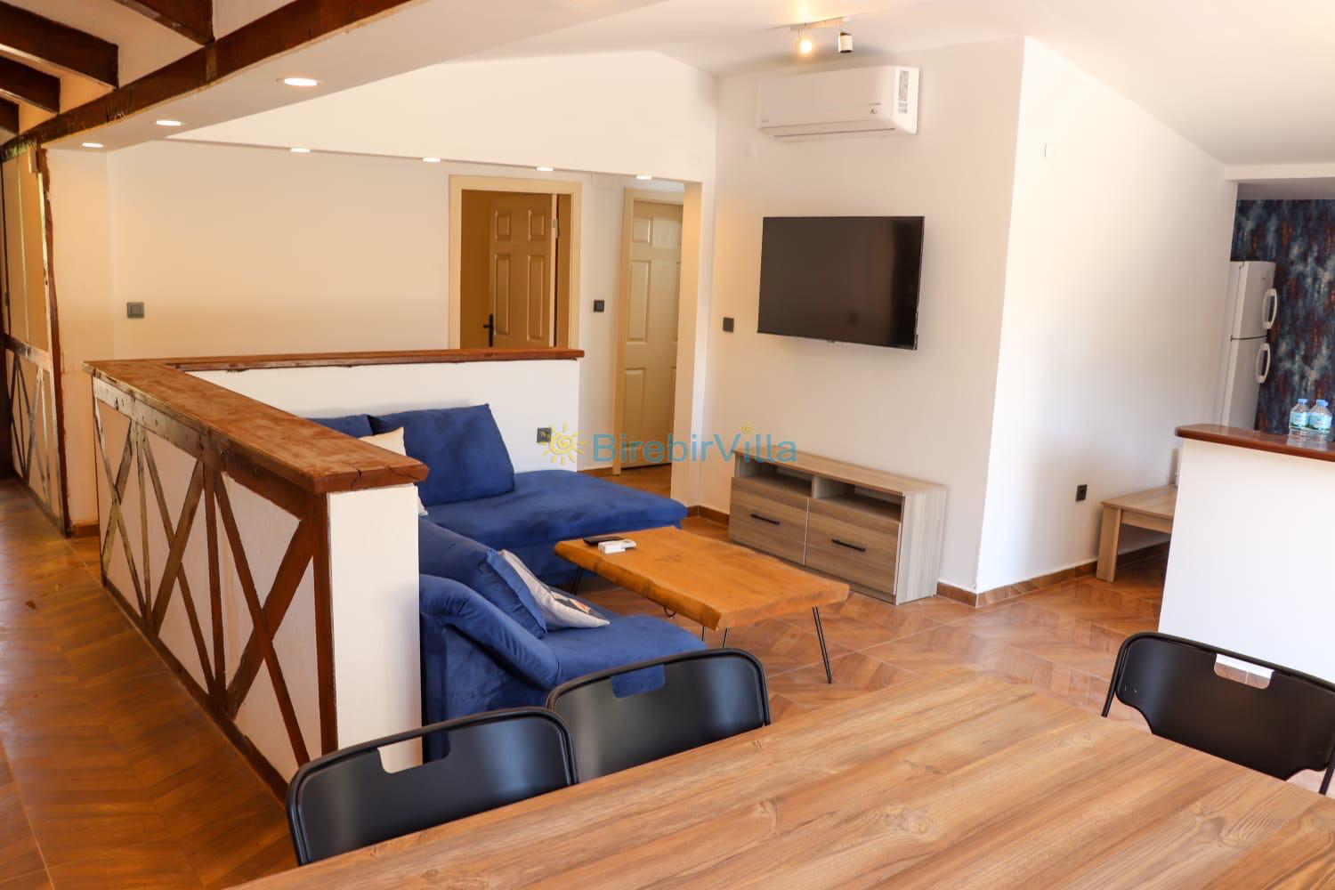 Salon: Açık mutfaklı salon, modern koltuklar, 6 kişilik yemek masası, Lcd tv, uydu alıcısı ve klima bulunmaktadır.
