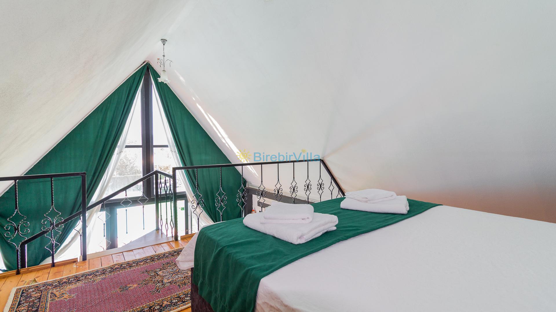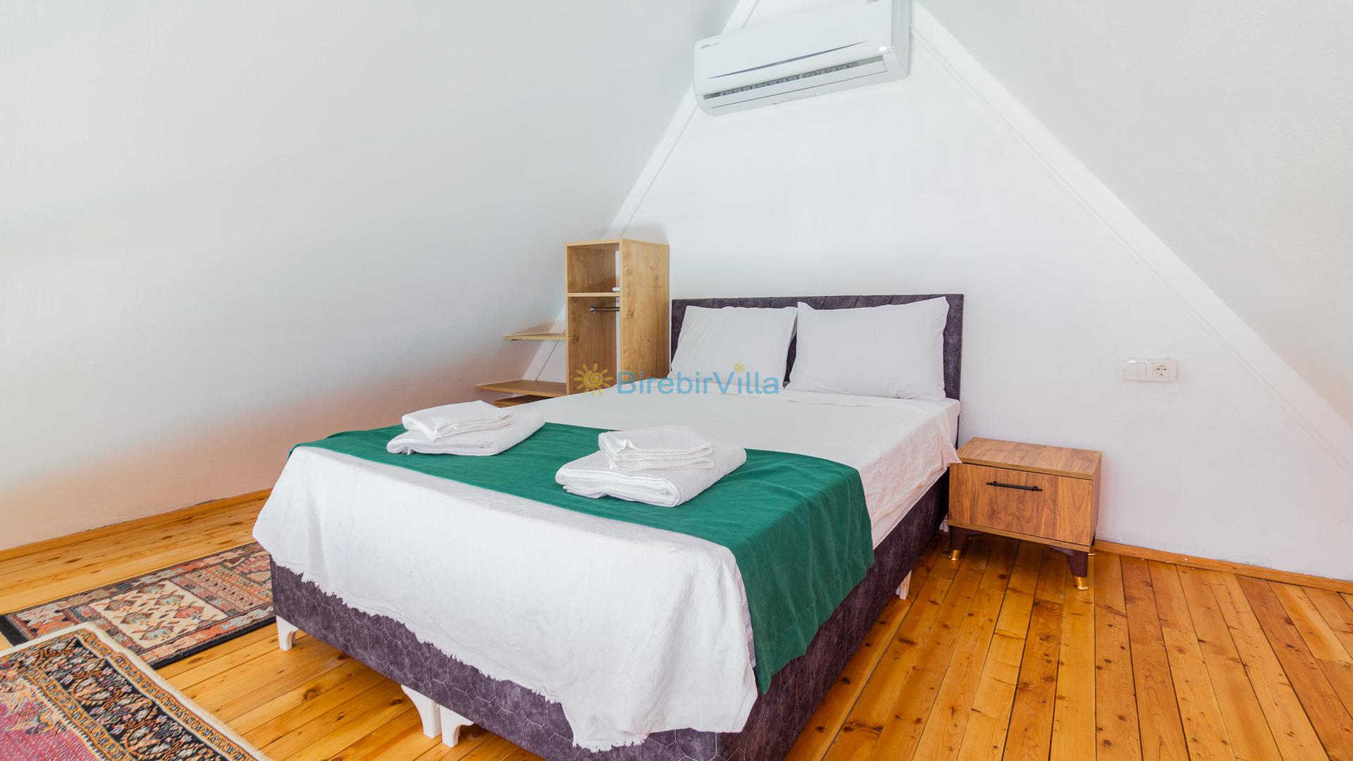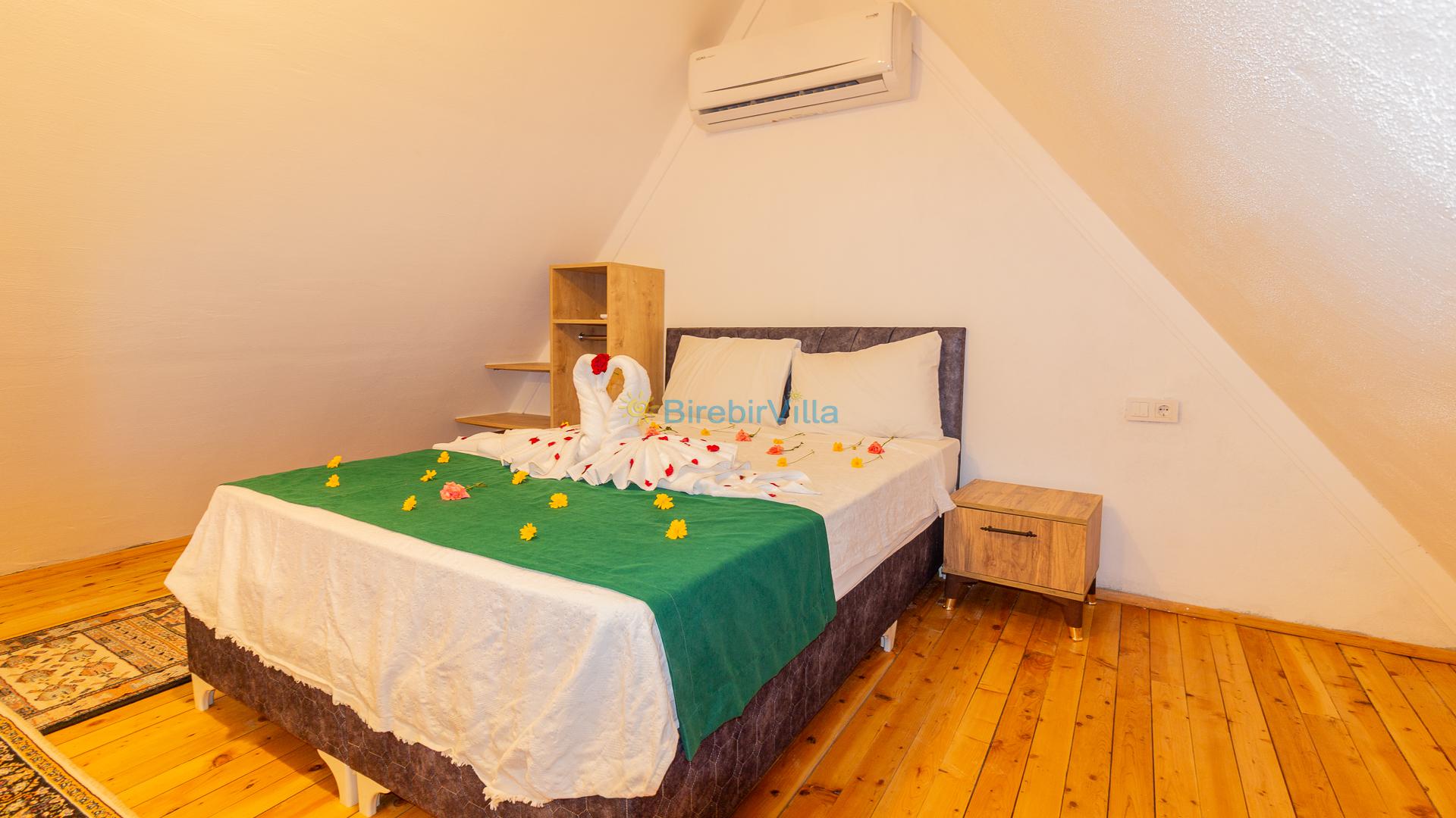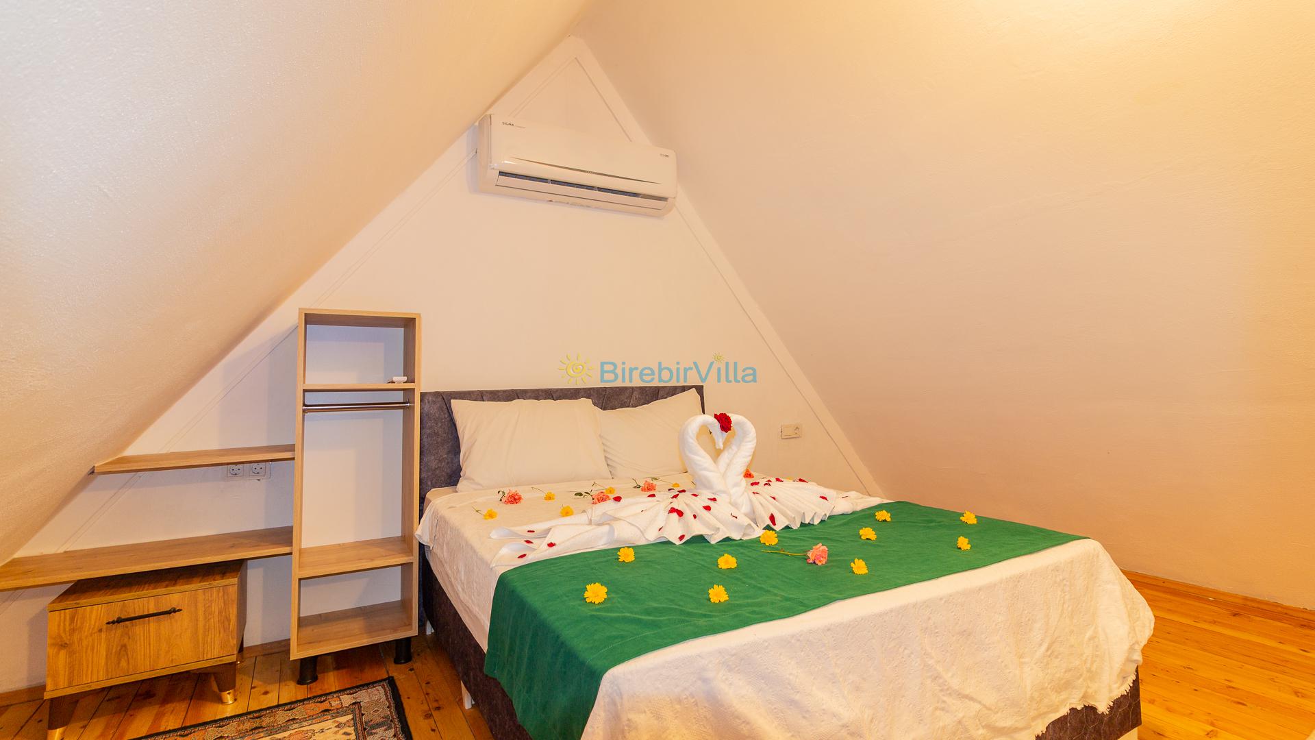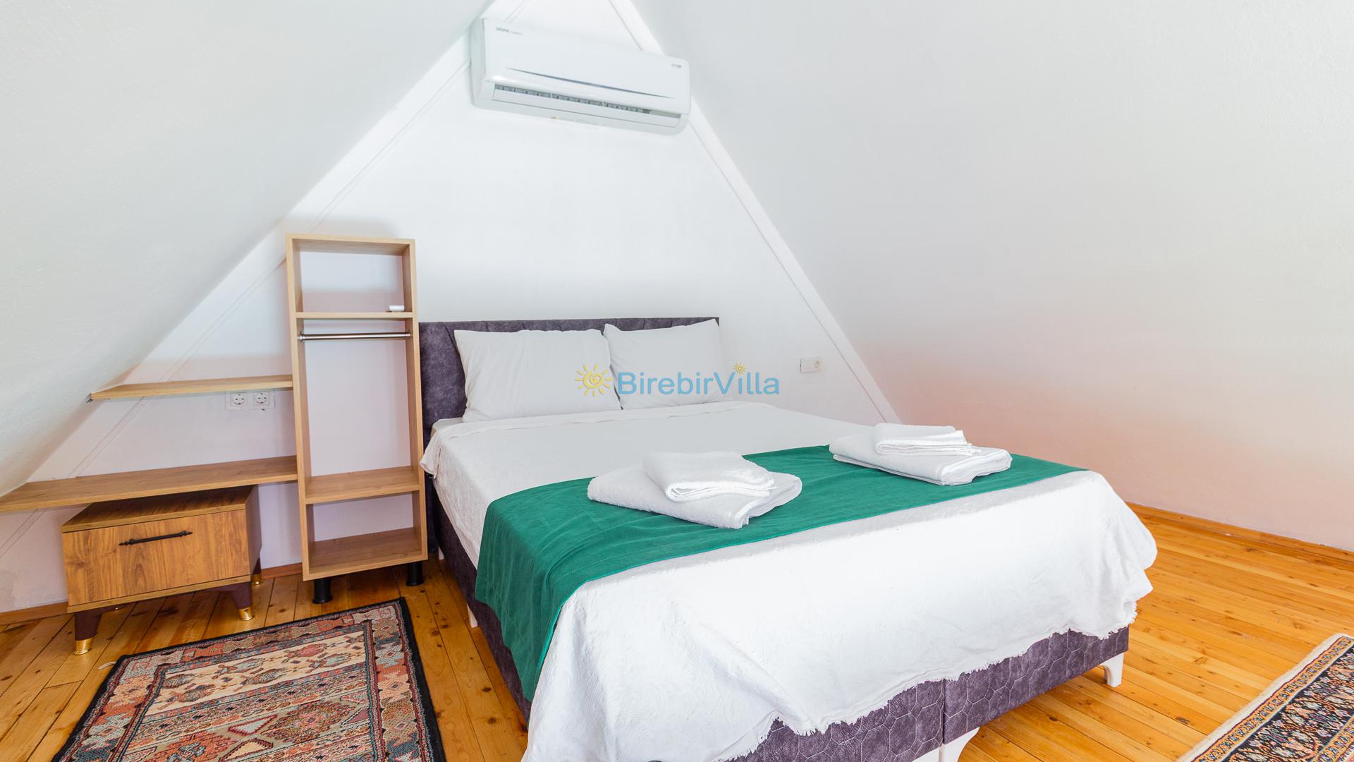 1.Yatak odası: Çift kişilik yatak ve terasa açılan kapısı bulunmaktadır. (Asma katta bulunmaktadır. Salon ile ortak kliması vardır.)