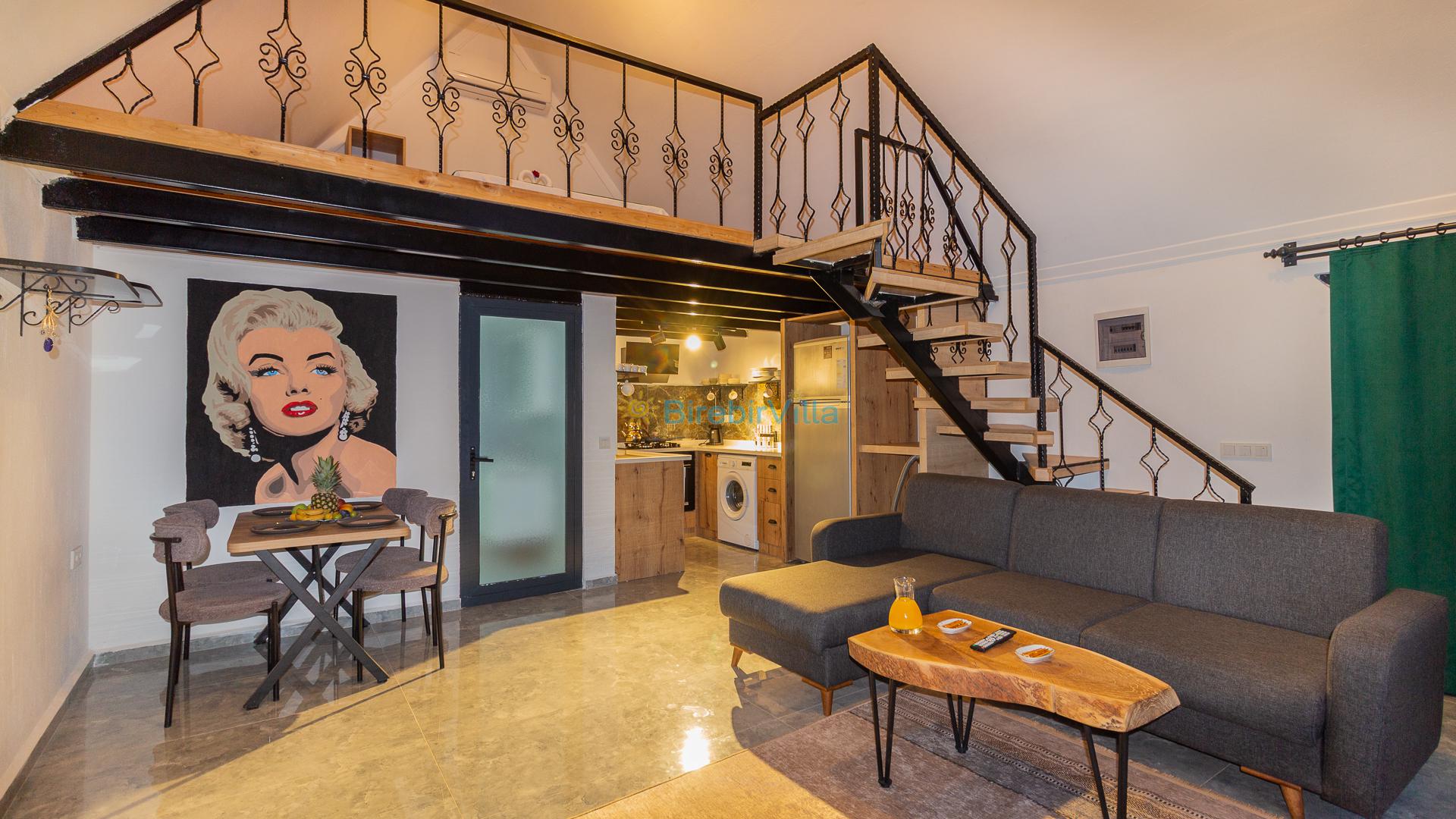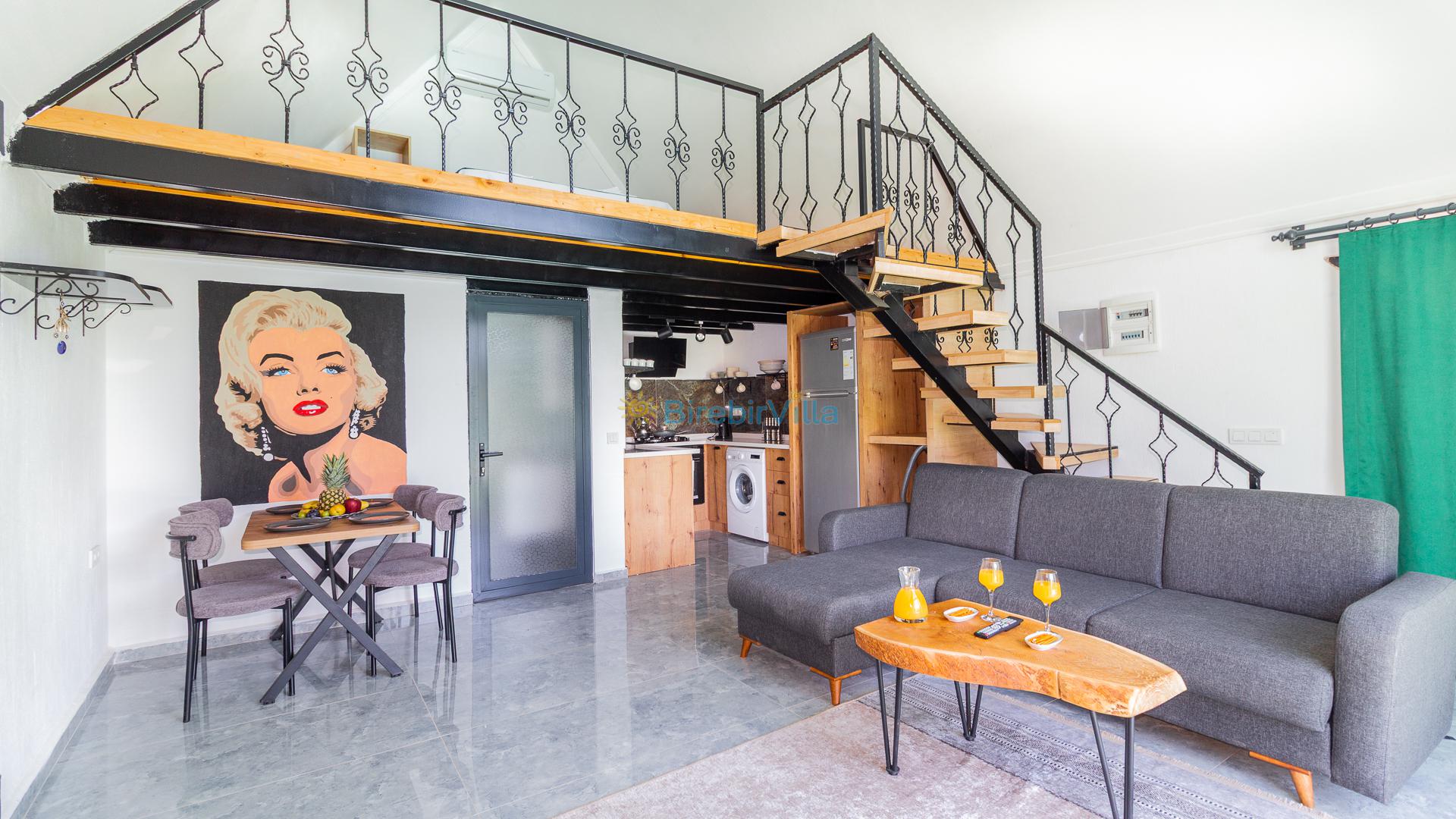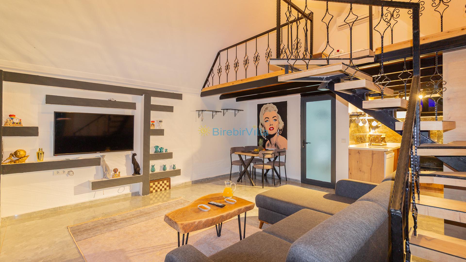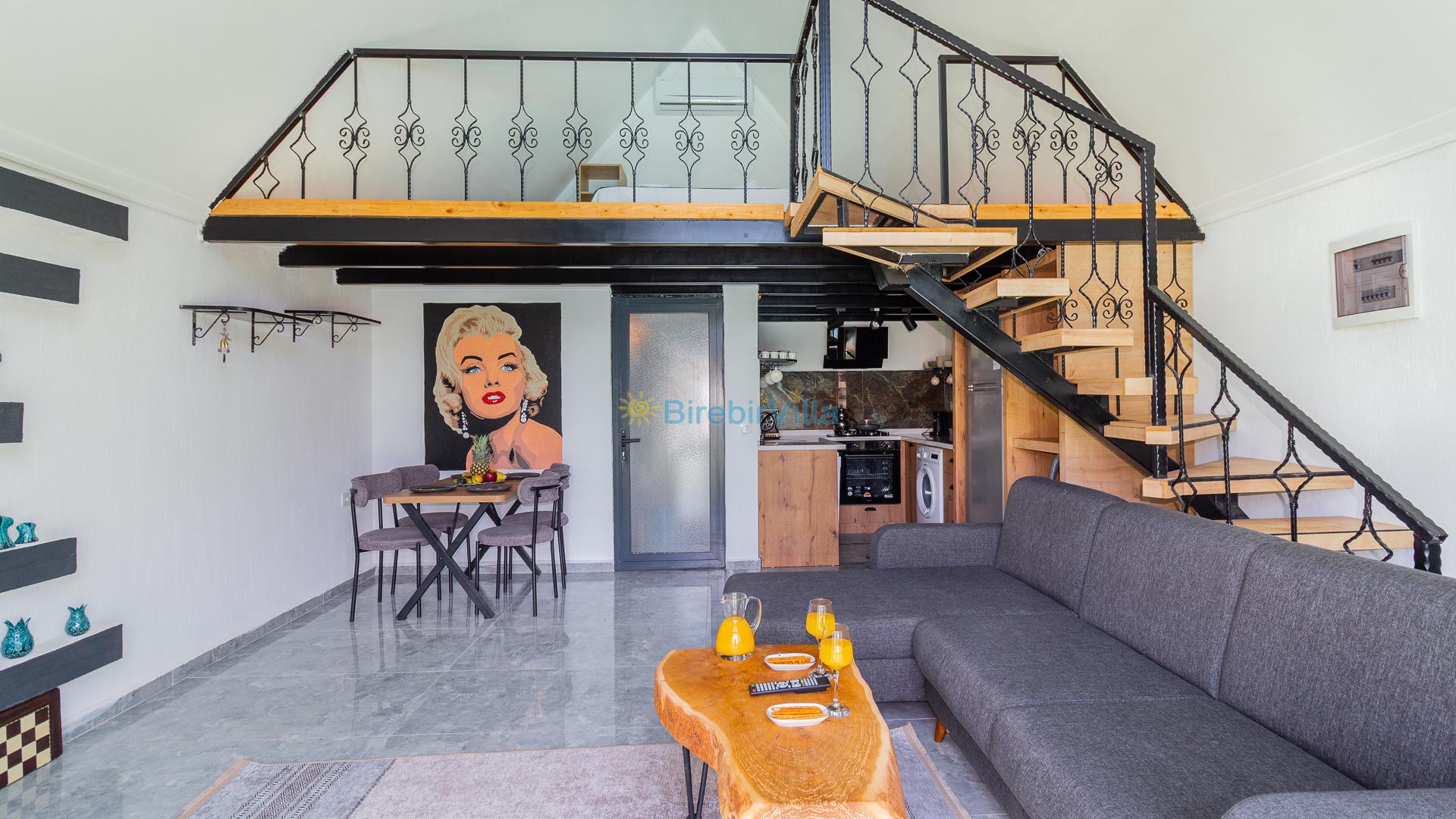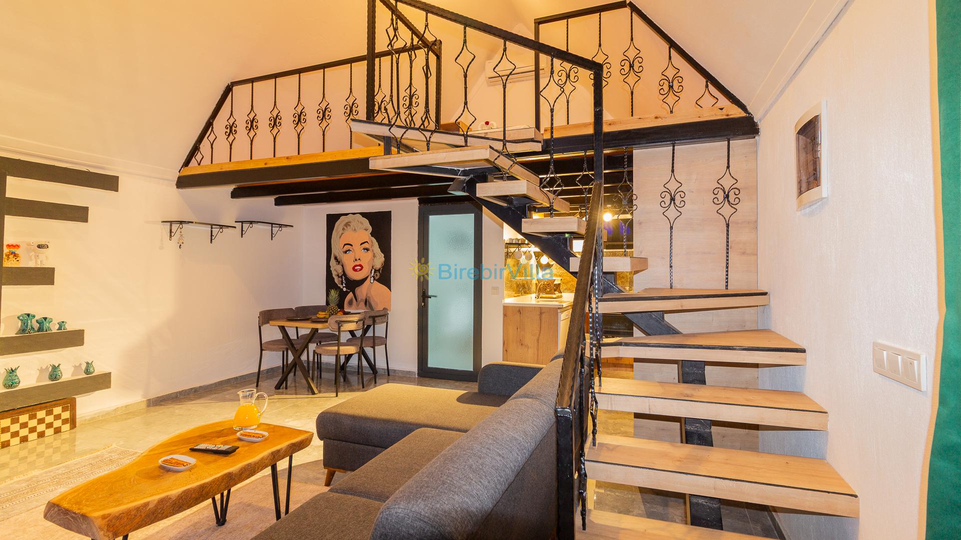 1.Yatak odası: Çift kişilik yatak ve terasa açılan kapısı bulunmaktadır. (Asma katta bulunmaktadır. Salon ile ortak kliması vardır.)
