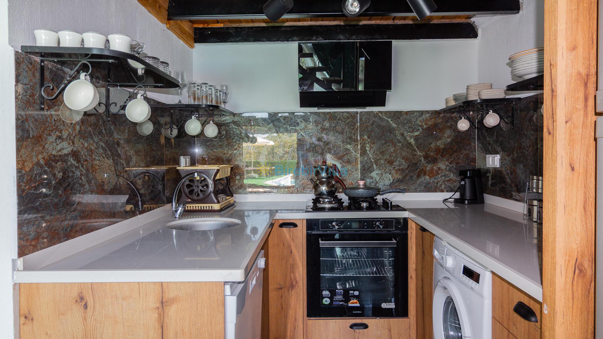 Mutfak: Açık mutfak, 2 kişi ve daha fazla kişiye yetecek kadar mutfak malzemeleri, mama sandalyesi, bulaşık makinesi, çamaşır makinesi, ocak, buzdolabı, kahve makinesi ve çaydanlık bulunmaktadır.