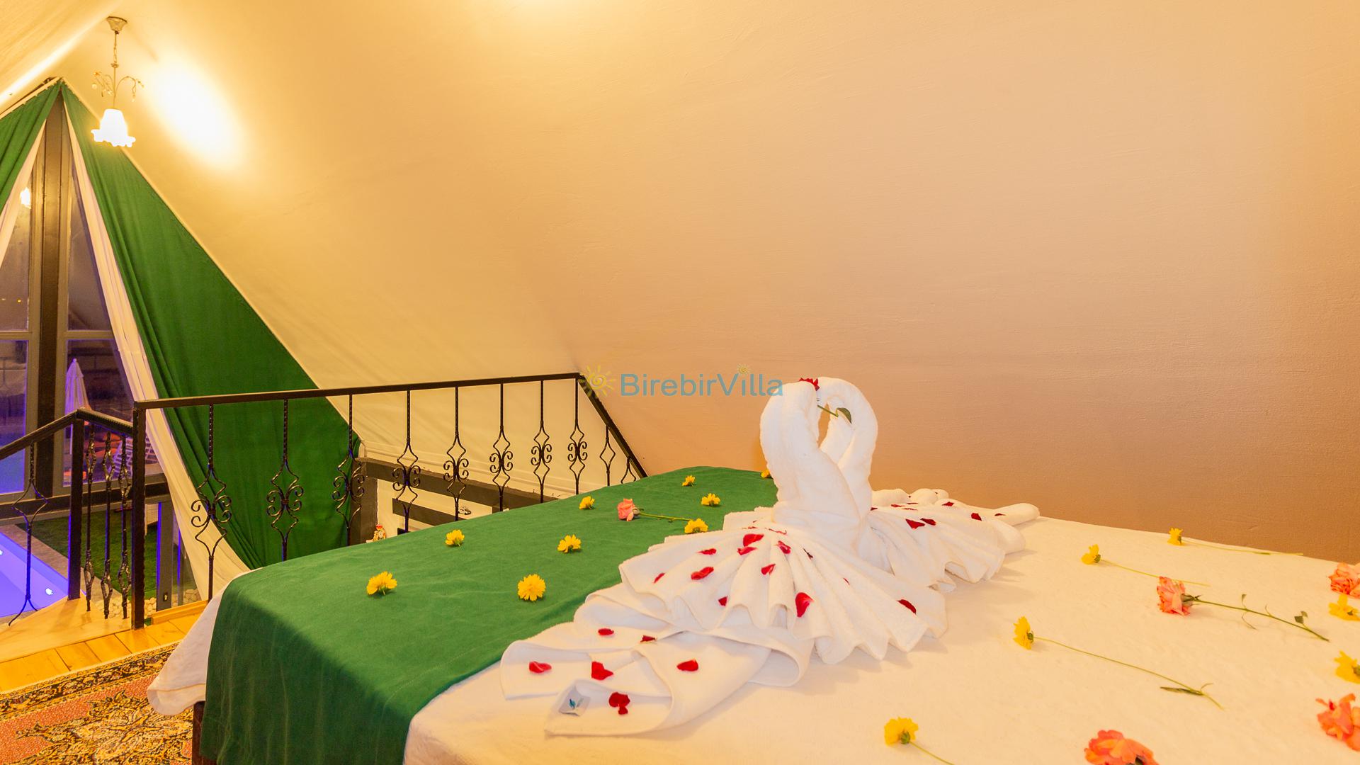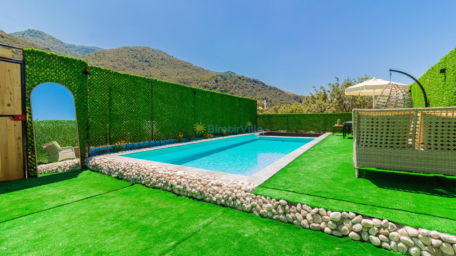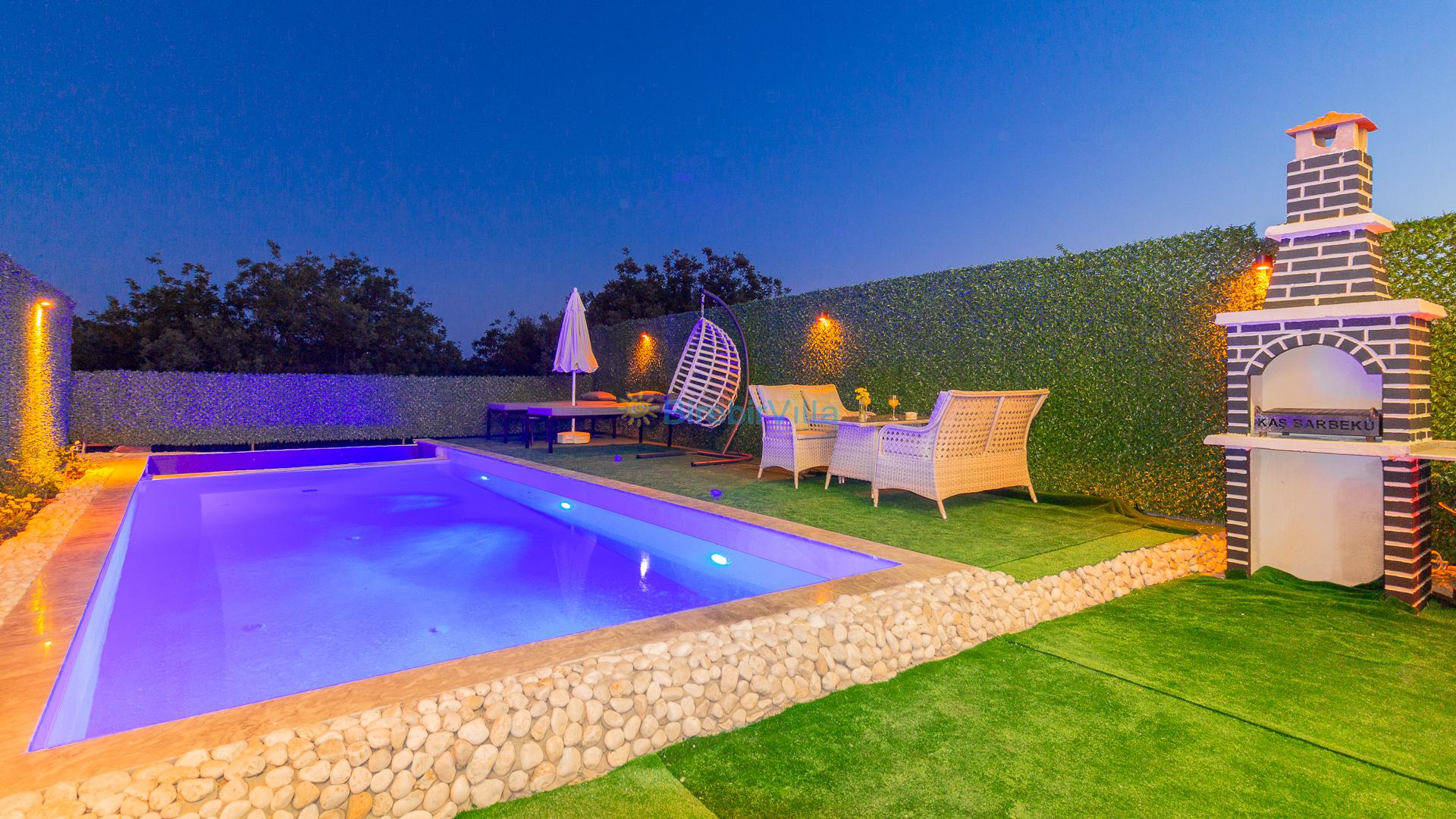 Not: Doğa ile iç içe konuma sahip olan tüm villalarımızda düzenli olarak ilaçlama yapılır. Buna rağmen çevrede haşere vb. bulunma ihtimali vardır. Havuzu korunaklı villalarımızda kesinlikle %100 görünmeme garantisi vermemekteyiz. Bu villalarımızda her zaman %5 sakınma payı mevcuttur. Sitemizde bulunan villa fotoğraflarının, görüntüyü ekrana sığdırmak için ’Geniş Açılı Lens’ ile çekilmektedir. Bu sebeple resimlerdeki objeler, gerçek boyutlarından daha büyük veya küçük görünebilmekte.