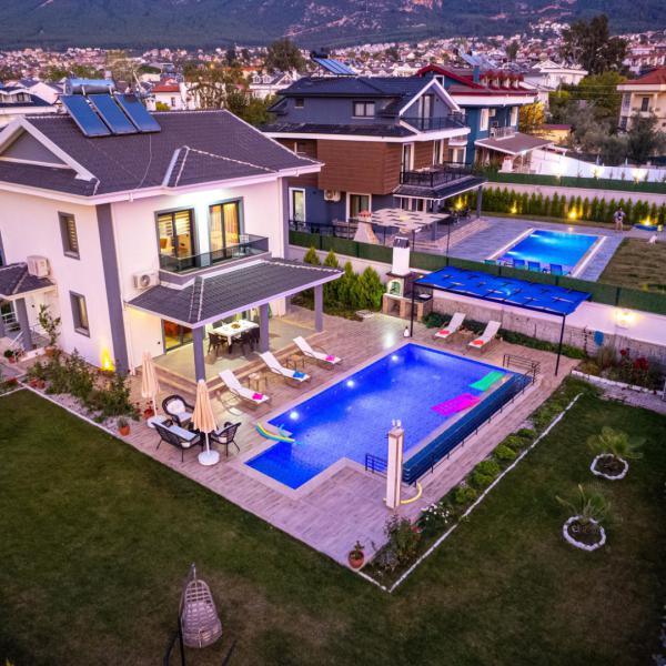 Not: Doğa ile iç içe konuma sahip olan tüm villalarımızda düzenli olarak ilaçlama yapılır. Buna rağmen çevrede haşere vb. bulunma ihtimali vardır. Havuzu korunaklı villalarımızda kesinlikle %100 görünmeme garantisi vermemekteyiz. Bu villalarımızda her zaman %10 sakınma payı mevcuttur. Sitemizde bulunan villa fotoğraflarının, görüntüyü ekrana sığdırmak için ’Geniş Açılı Lens’ ile çekilmektedir. Bu sebeple resimlerdeki objeler, gerçek boyutlarından daha büyük veya küçük görünebilmekte.