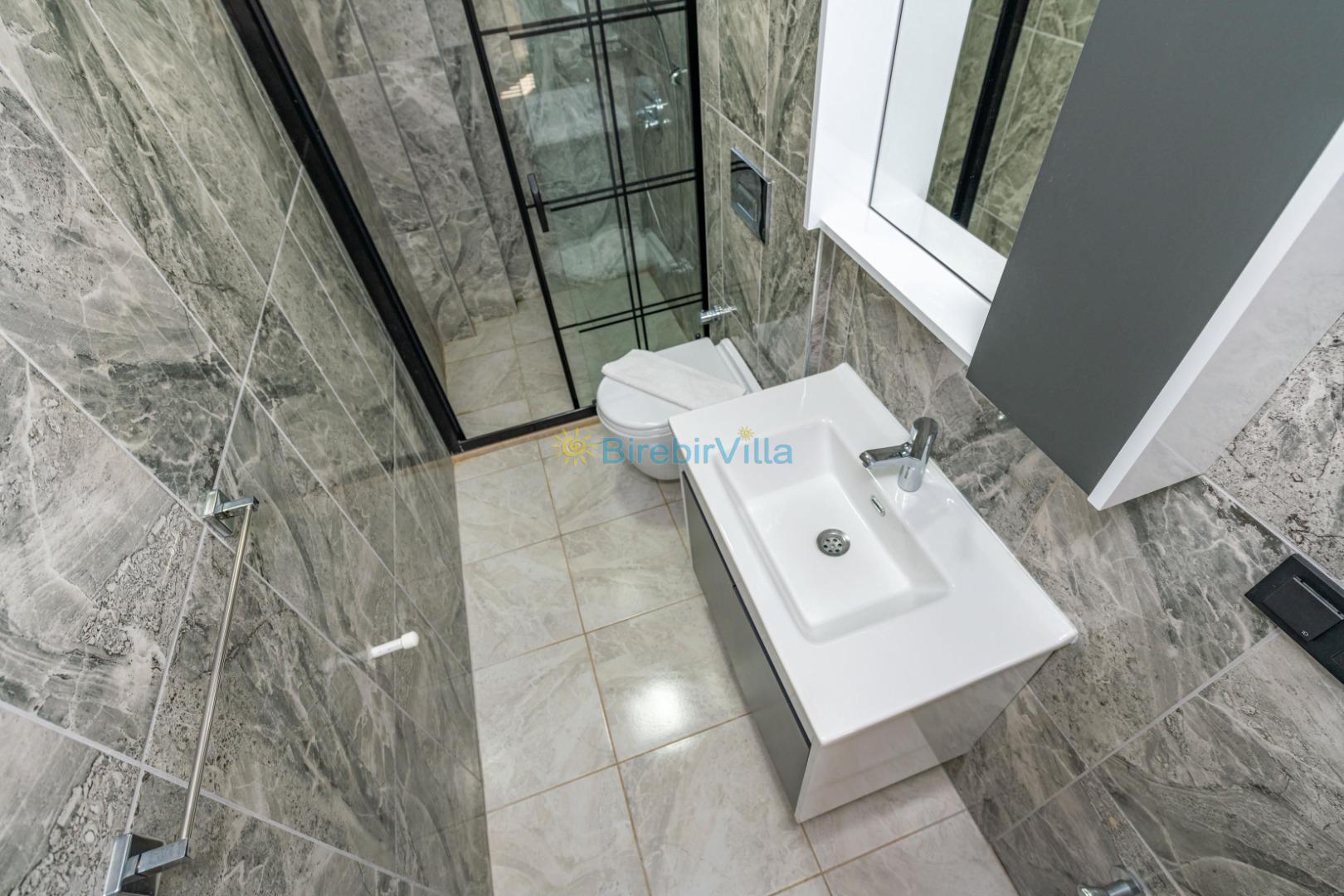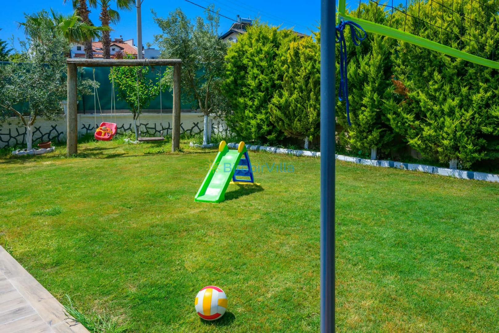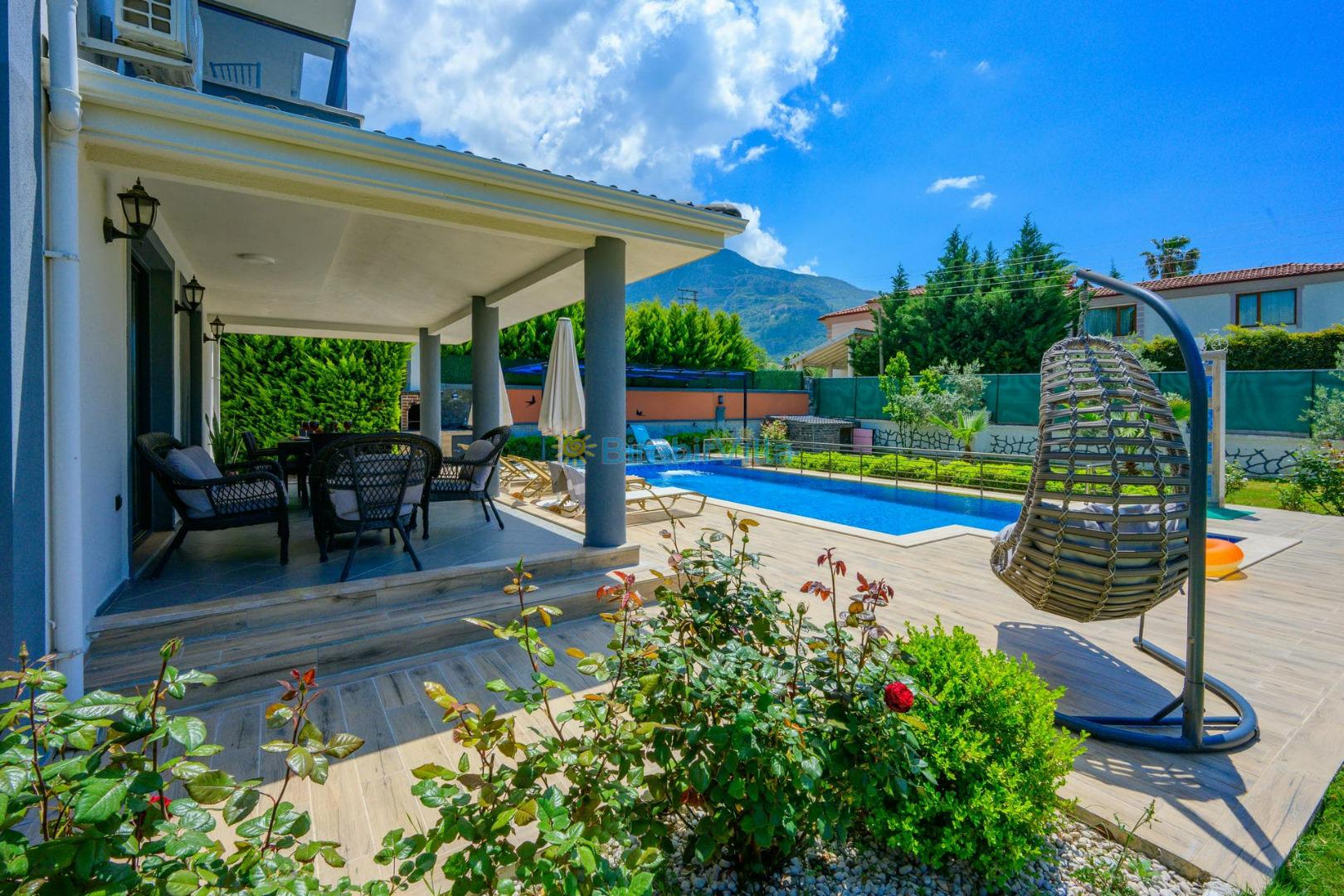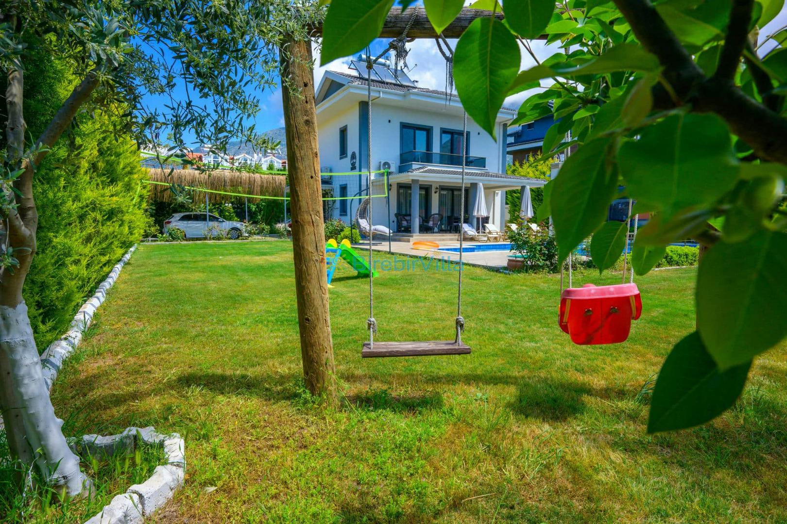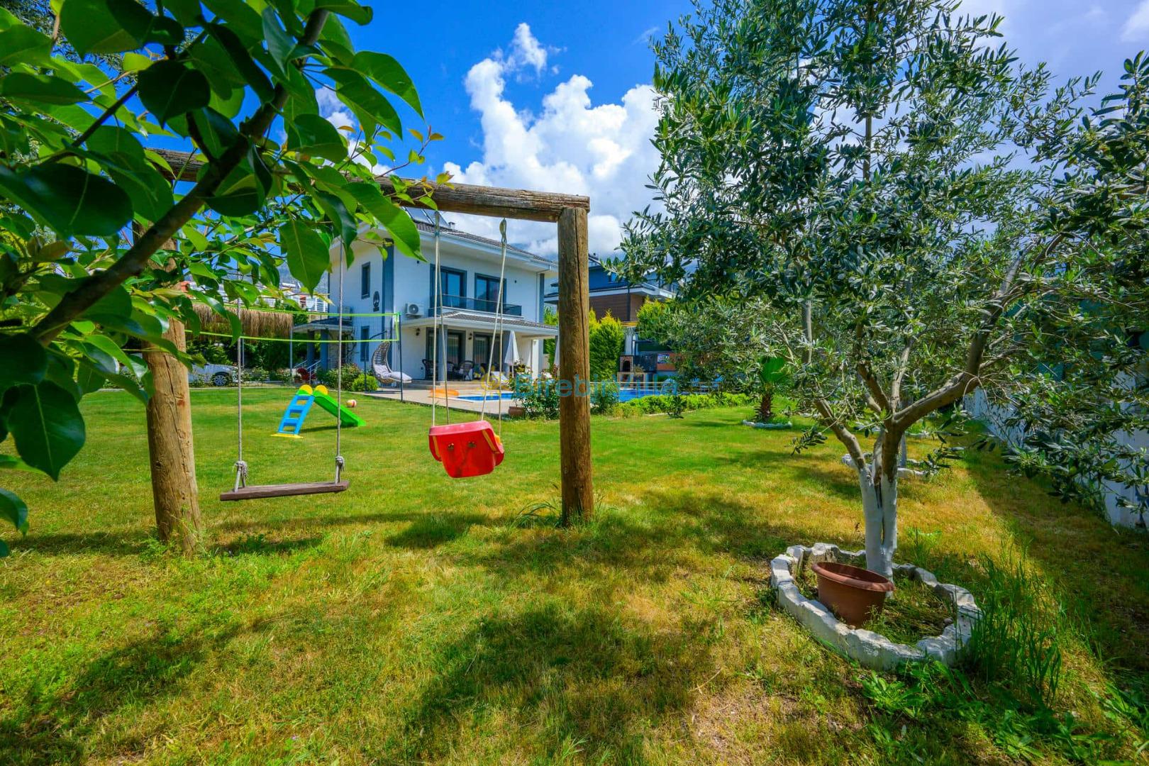 Salon: Özenle döşenmiş açık mutfaklı salon, klima, modern koltuklar, 6 kişilik yemek masası, Led tv, uydu alıcısı, mama sandalyesi ve havuza açılan kapısı bulunmaktadır.