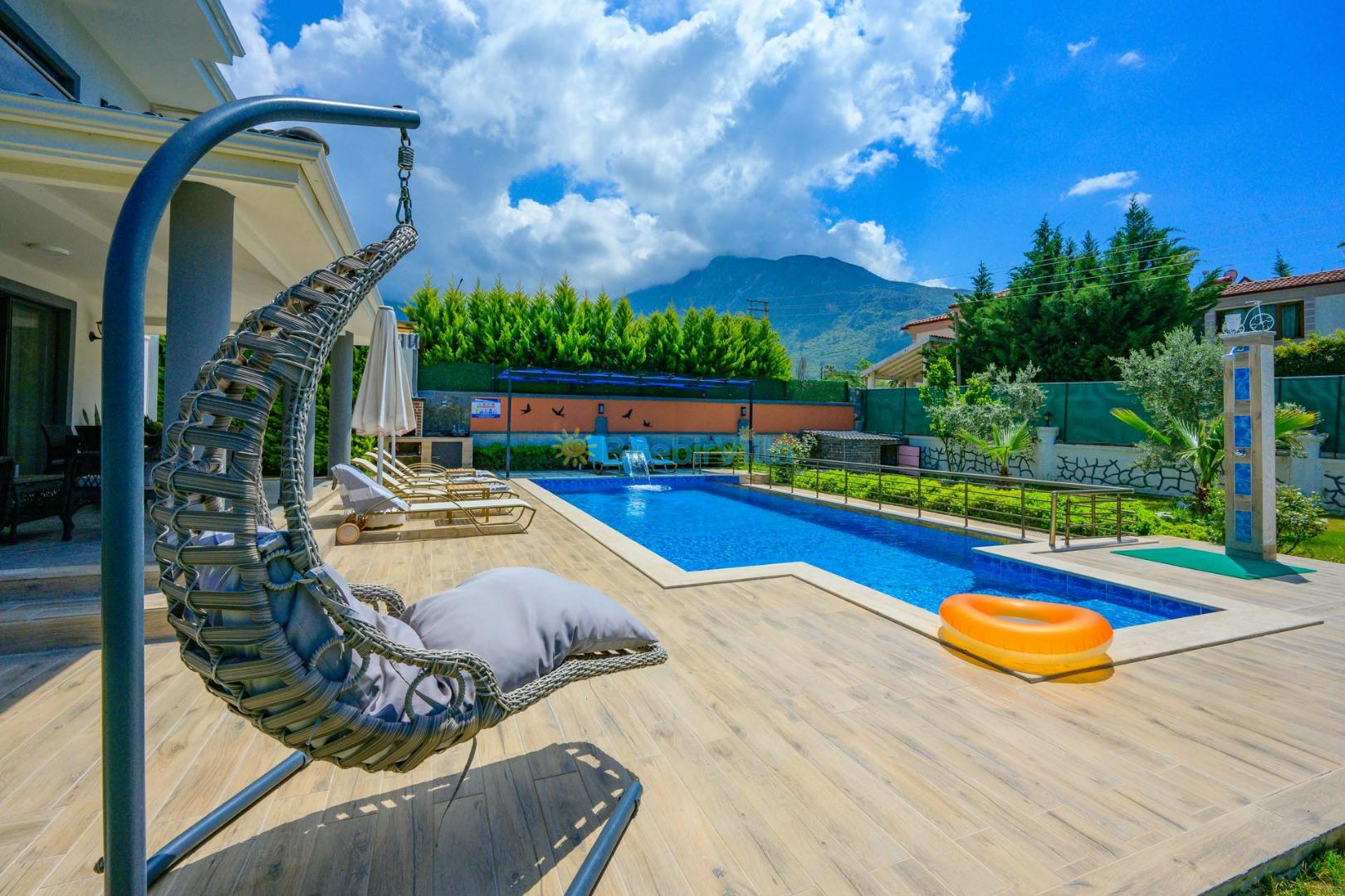 Villa Mireza, Fethiye’nin en çok tercih edilen tatil bölgelerinden Hisarönü mevkiinde konumlanan, 3 yatak odalı, 6 kişi konaklama kapasiteli, özel havuzlu ve jakuzili aile villasıdır. Merkezi konumu sayesinde hem eğlence ve sosyal alanlara hem de doğayla iç içe huzurlu noktalara kolay ulaşım imkânı sunmaktadır. Modern ve konforlu bir anlayışla tasarlanan Villa Mireza, aileler ve arkadaş grupları için rahat ve keyifli bir konaklama deneyimi sunmaktadır. Villaya ait özel yüzme havuzu, sıcak yaz günlerinde serinleme ve keyifli vakit geçirme imkânı sağlarken, jakuzi tatilinize ekstra konfor ve dinlenme ayrıcalığı katmaktadır. Ferah yaşam alanları ve konforlu yatak odaları sayesinde tatil boyunca evinizin rahatlığını hissedebilirsiniz.