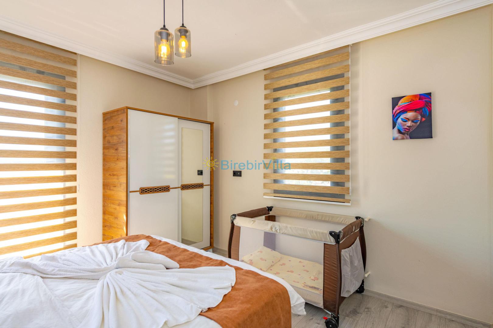 2.Yatak odası: Çift kişilik yatak, klima, ebeveyn banyo, bebek yatağı, elbise dolabı bulunmaktadır.