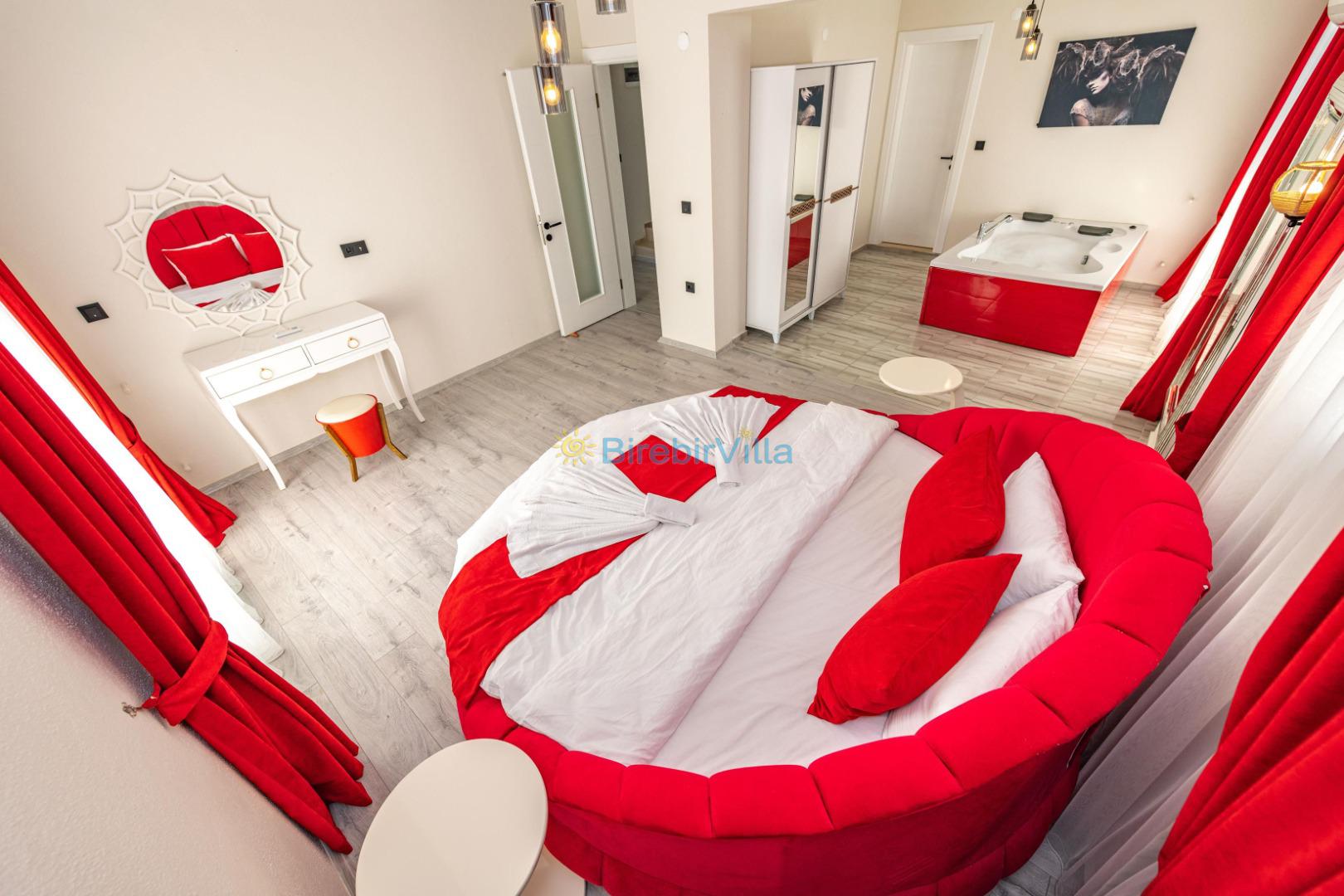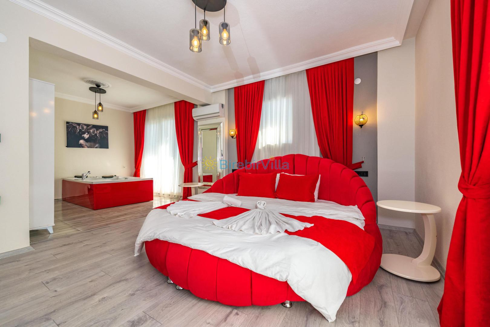 1.Yatak odası: Çift kişilik yatak, klima, ebeveyn banyo, jakuzi, elbise dolabı bulunmaktadır.
