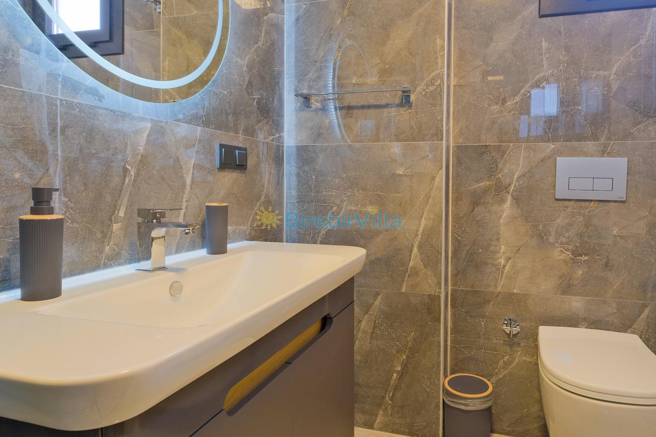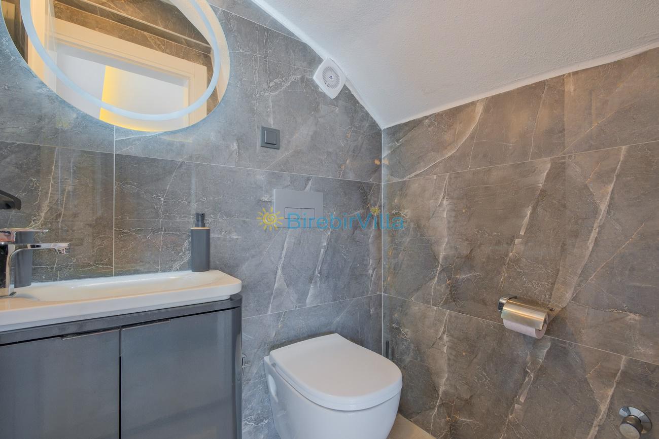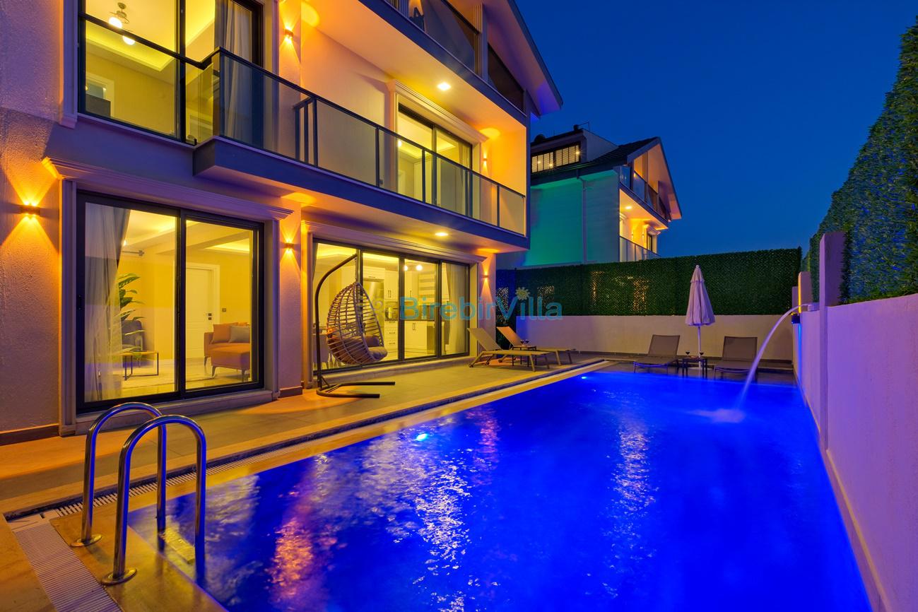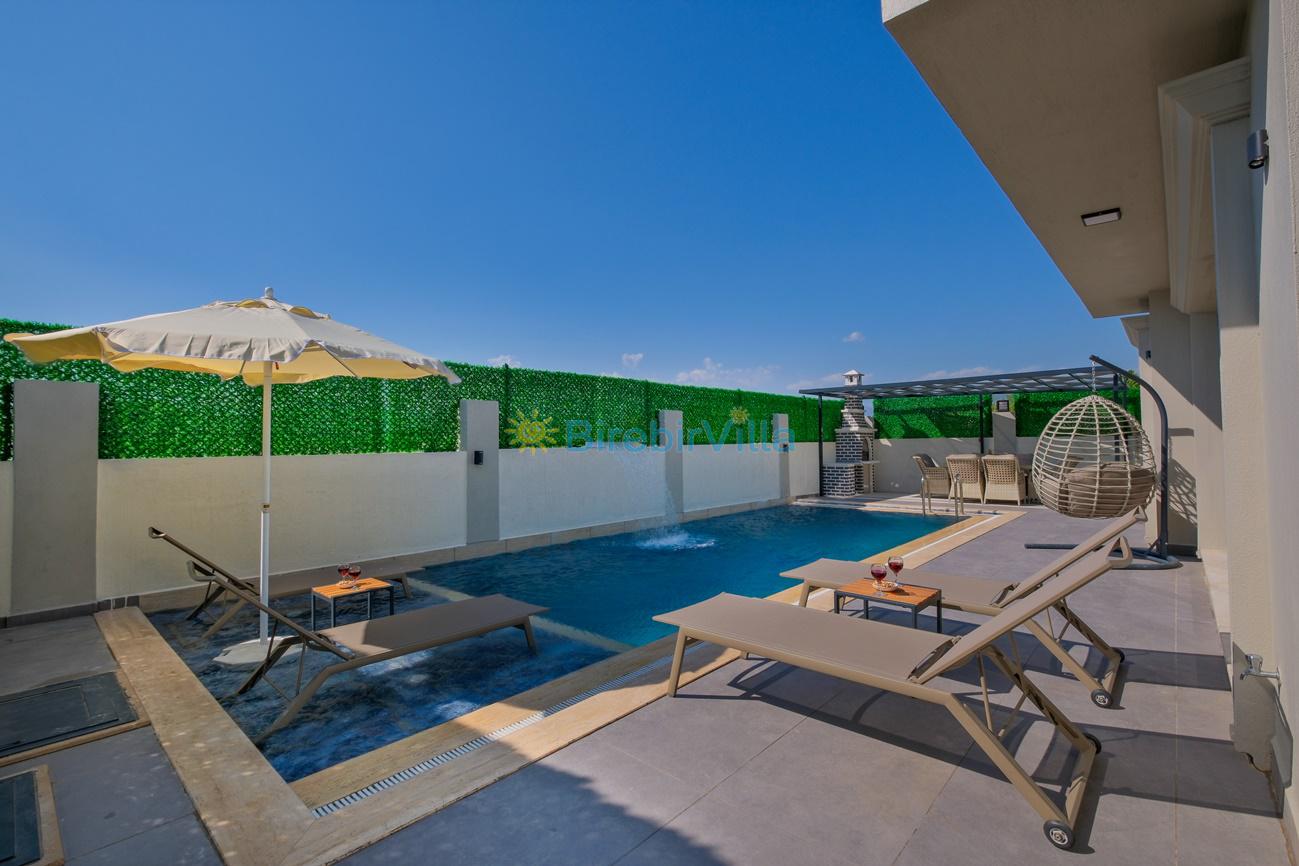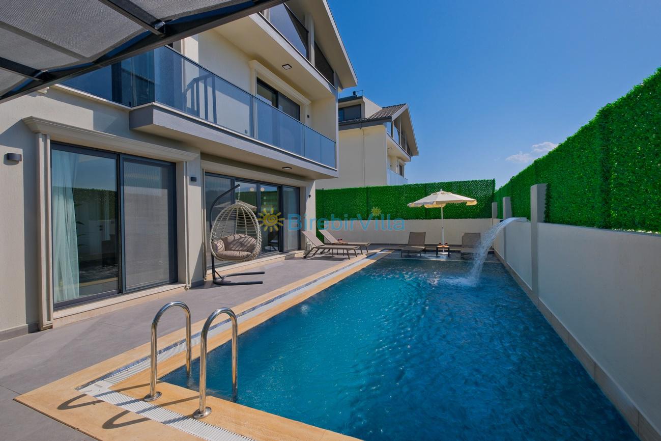 Not: Doğa ile iç içe konuma sahip olan tüm villalarımızda düzenli olarak ilaçlama yapılır. Buna rağmen çevrede haşere vb. bulunma ihtimali vardır. Havuzu korunaklı villalarımızda kesinlikle %100 görünmeme garantisi vermemekteyiz. Bu villalarımızda her zaman % 5 sakınma payı mevcuttur. Sitemizde bulunan villa fotoğraflarının, görüntüyü ekrana sığdırmak için ’Geniş Açılı Lens’ ile çekilmektedir. Bu sebeple resimlerdeki objeler, gerçek boyutlarından daha büyük veya küçük görünebilmekte.