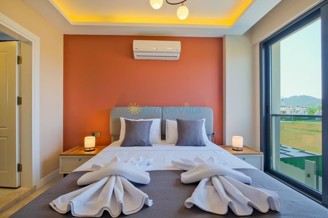 3.Yatak odası: Çift kişilik yatak, klima, ebeveyn banyo, komodin, elbise dolabı ve balkon bulunmaktadır.