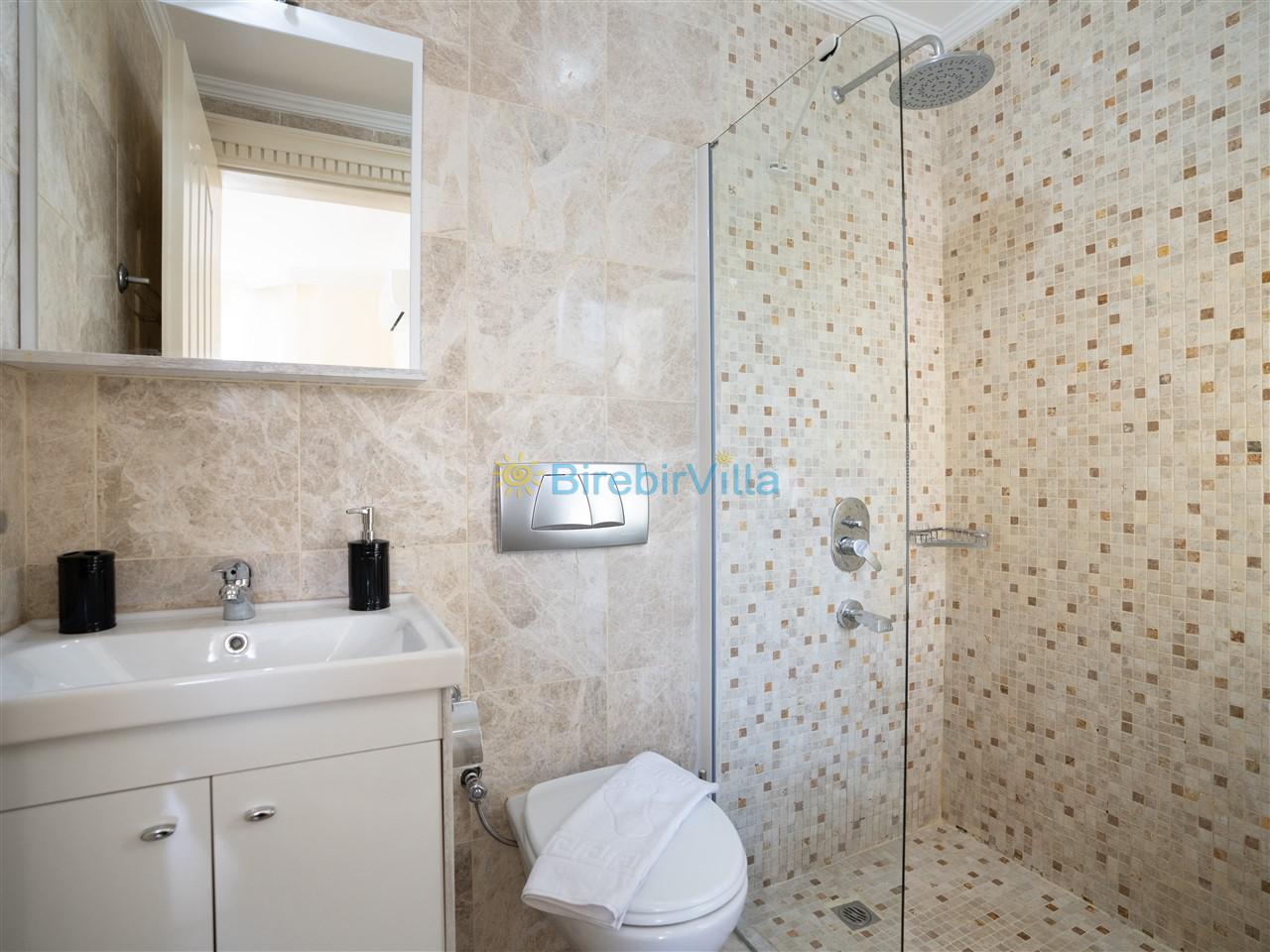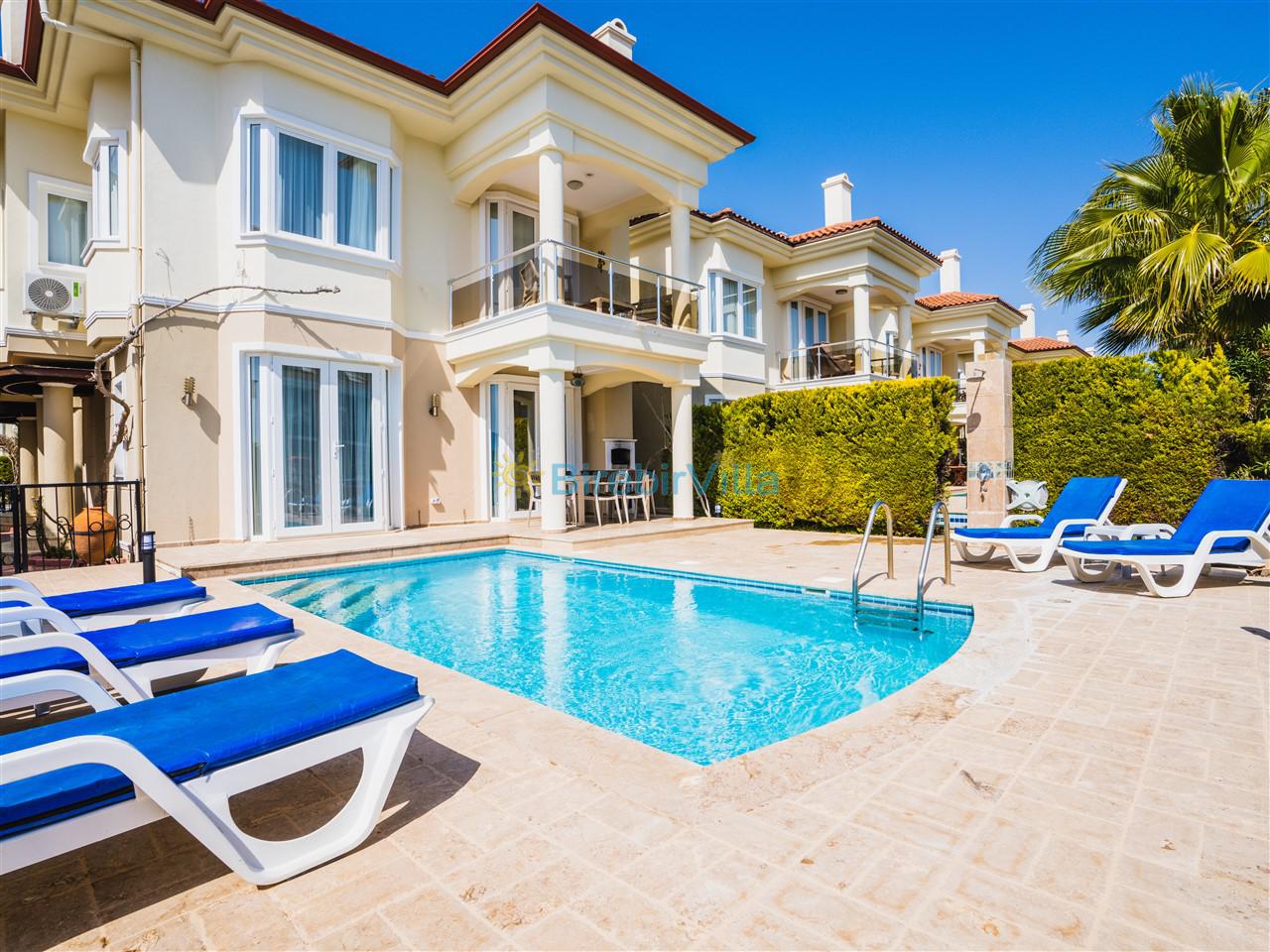Not: Doğa ile iç içe konuma sahip olan tüm villalarımızda düzenli olarak ilaçlama yapılır. Buna rağmen çevrede haşere vb. bulunma ihtimali vardır. Havuzu korunaklı villalarımızda kesinlikle %100 görünmememe garantisi vermemekteyiz. Bu villalarımızda her zaman %5 sakınma payı mevcuttur. Sitemizde bulunan villa fotoğraflarının, görüntüyü ekrana sığdırmak için ’Geniş Açılı Lens’ ile çekilmektedir. Bu sebeple resimlerdeki objeler, gerçek boyutlarından daha büyük veya küçük görünebilmekte.