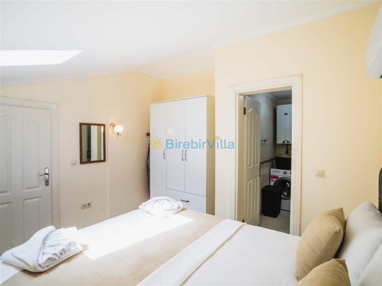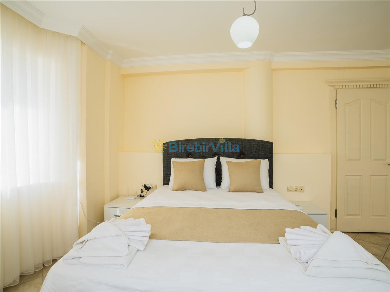 2.Yatak odası: Çift kişilik yatak, klima, elbise dolabı, komodin ve ebeveyn banyo bulunmaktadır.