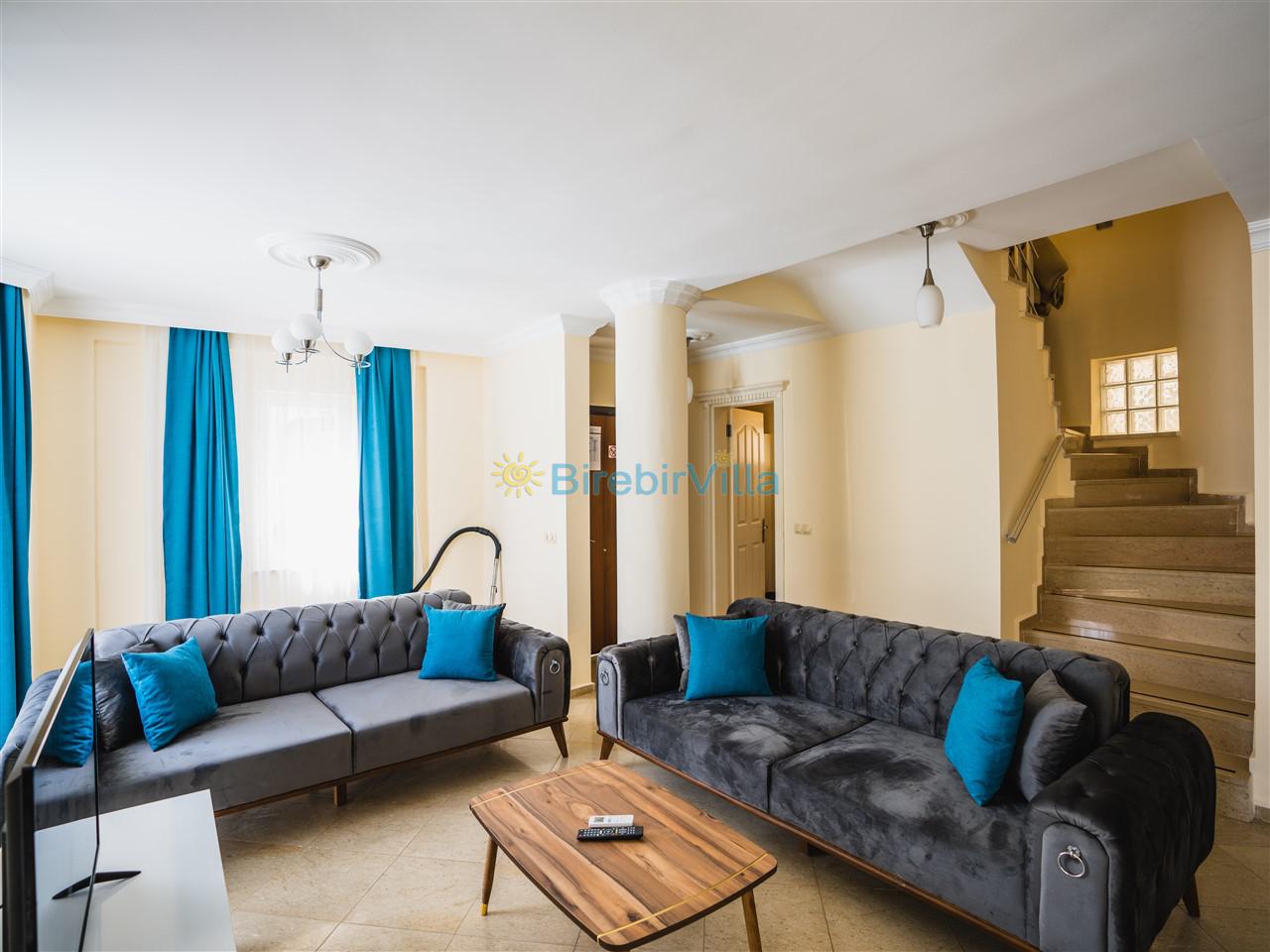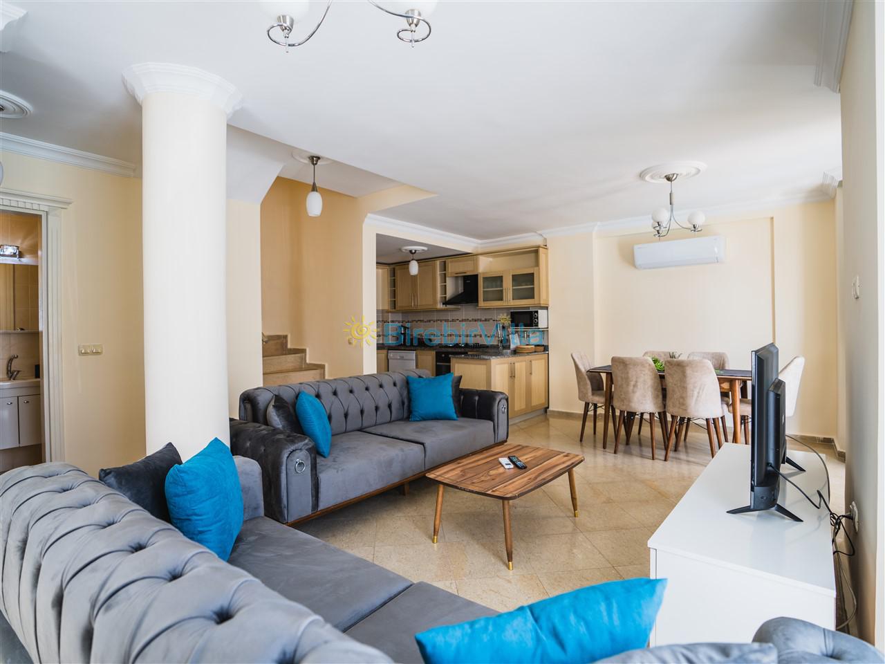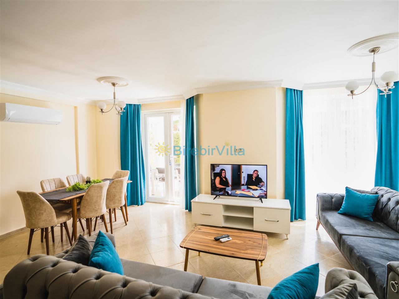 Salon: Modern koltuklar, 6 kişilik yemek masası, sehpa, ünite, Lcd tv, uydu alıcısı ve klima bulunmaktadır.