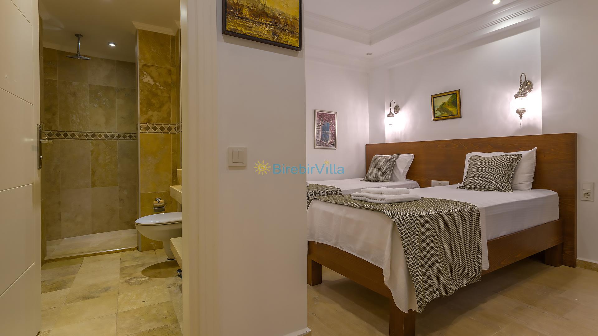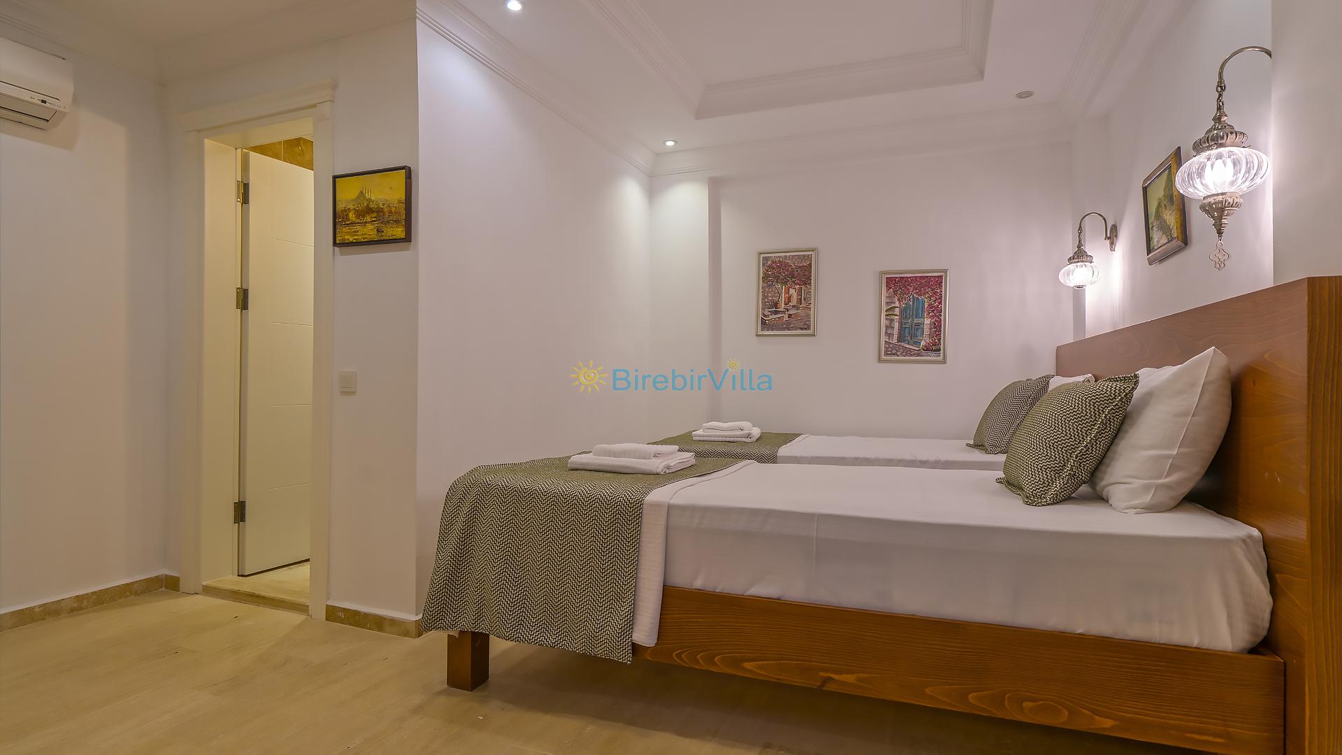 5.Yatak odası: Tek kişilik iki tane yatak, ebeveyn banyosu, klima, elbise dolabı ve makyaj masası bulunmaktadır.