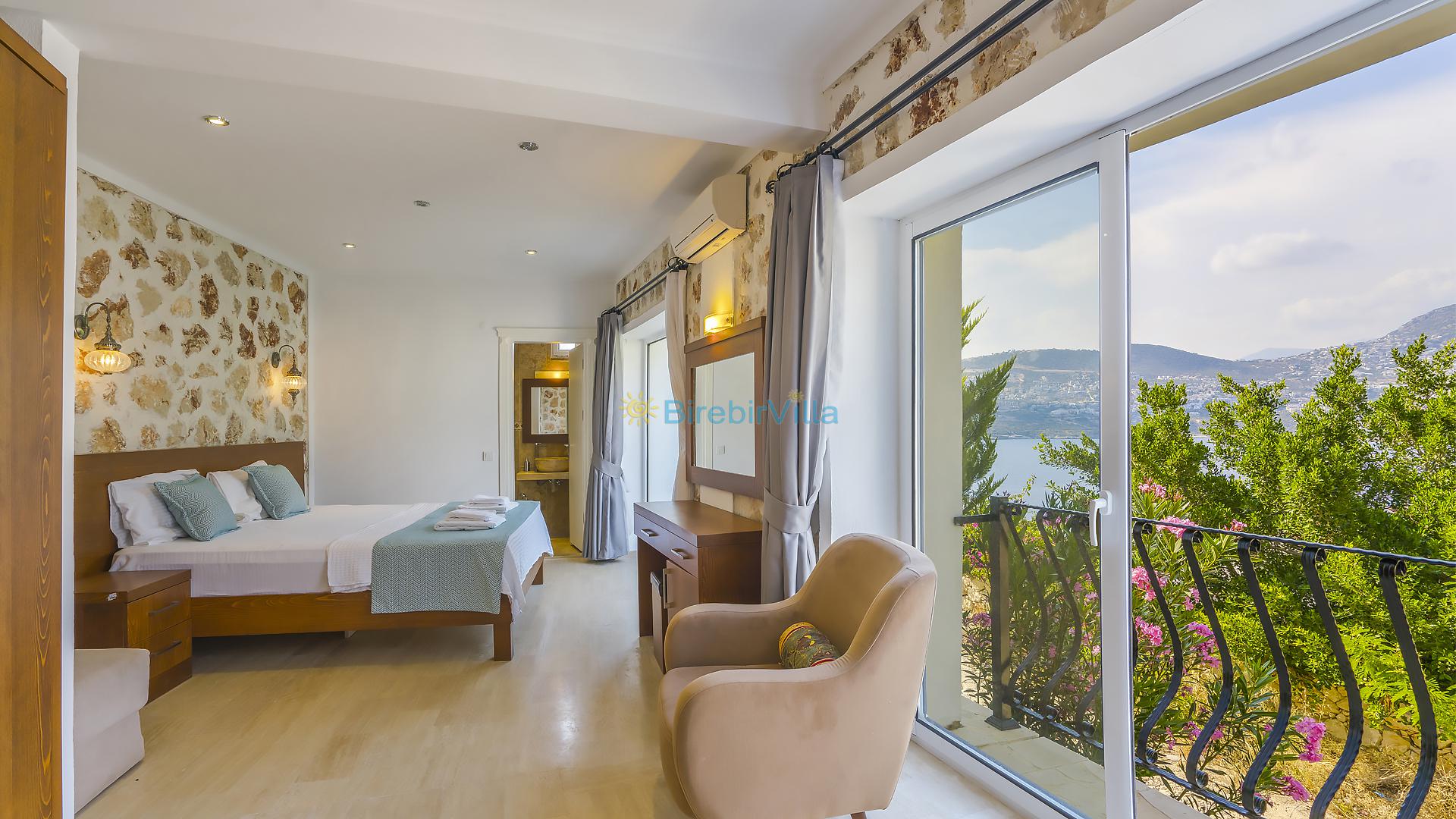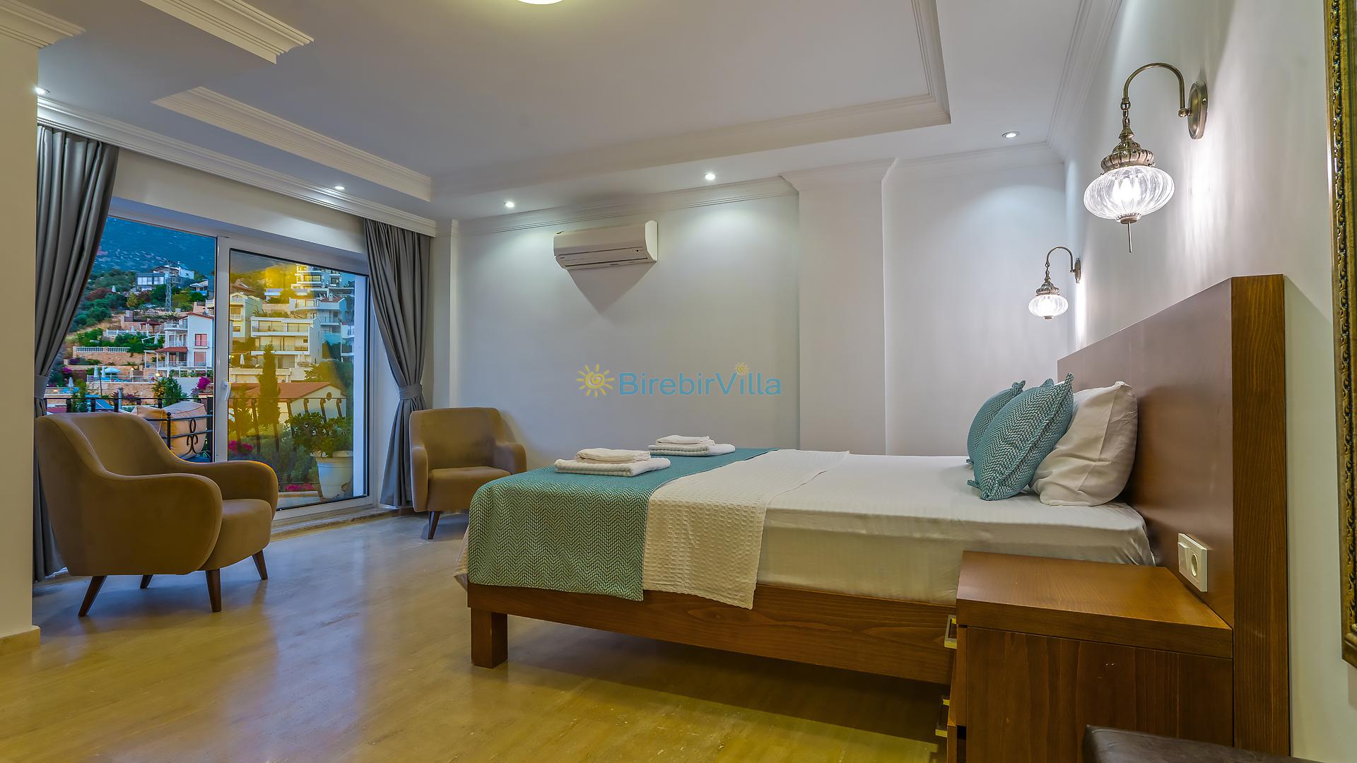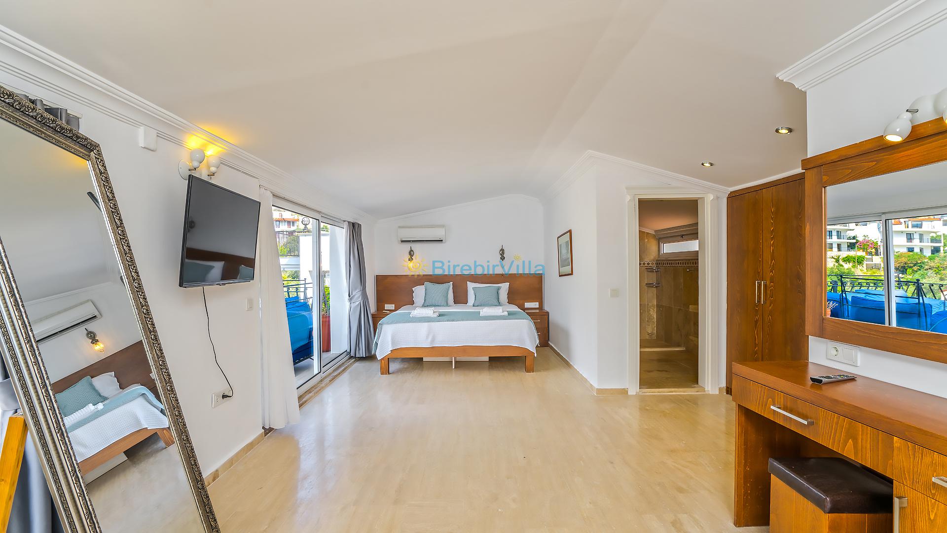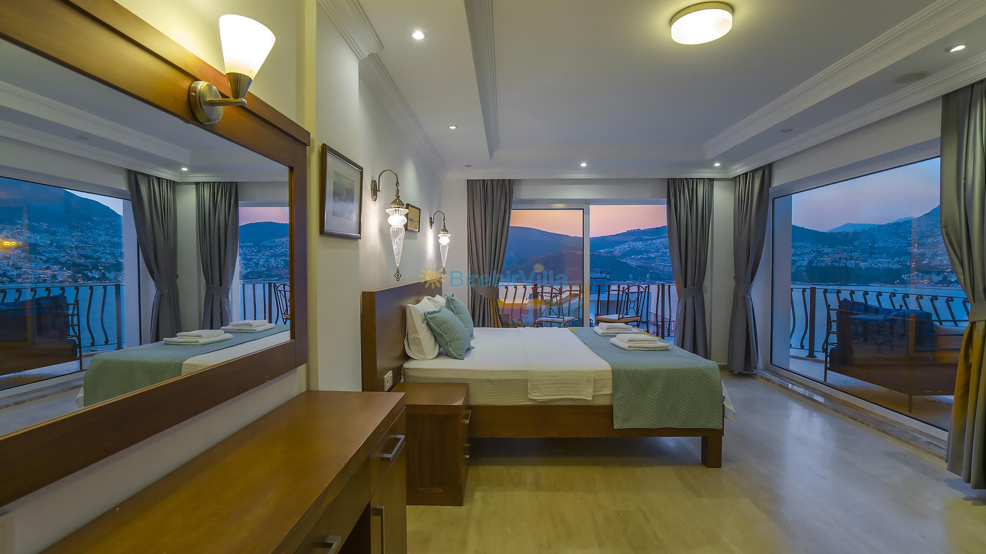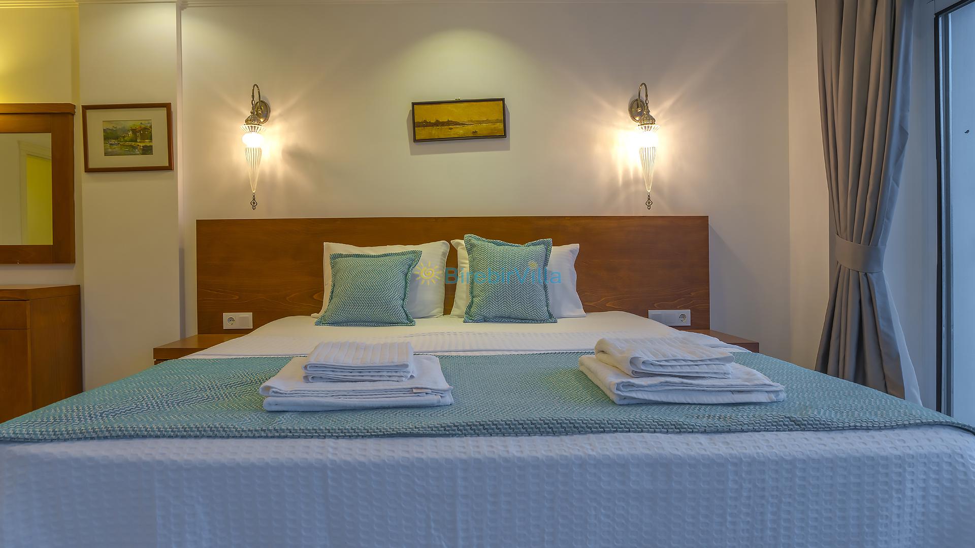 4. Yatak odası: Çift kişilik yatak, ebeveyn banyosu, makyaj masası, klima, elbise dolabı ve balkon bulunmaktadır.
