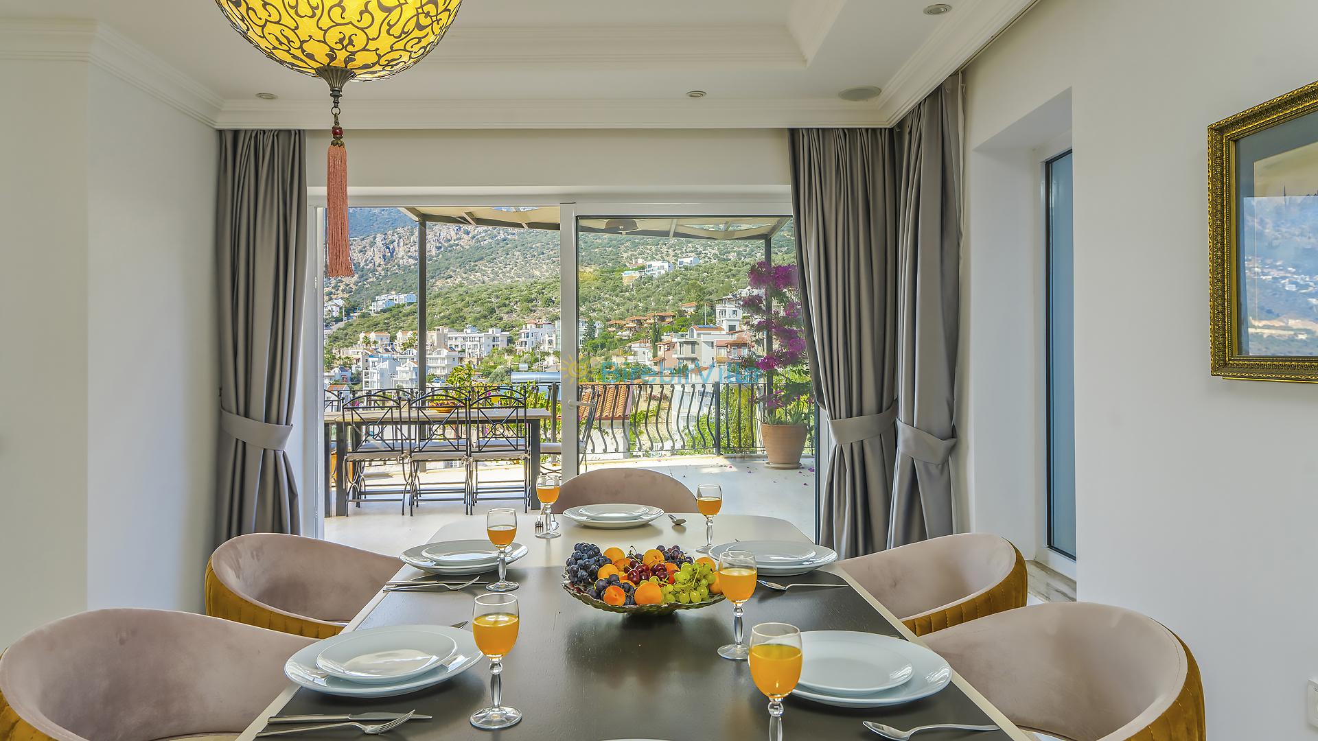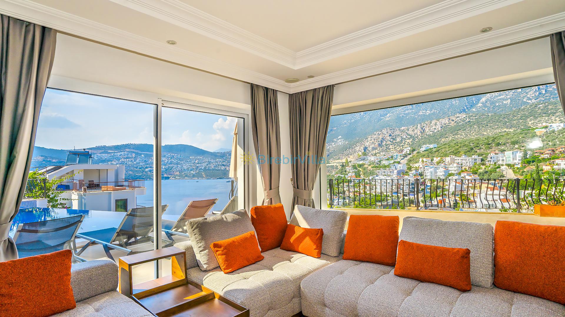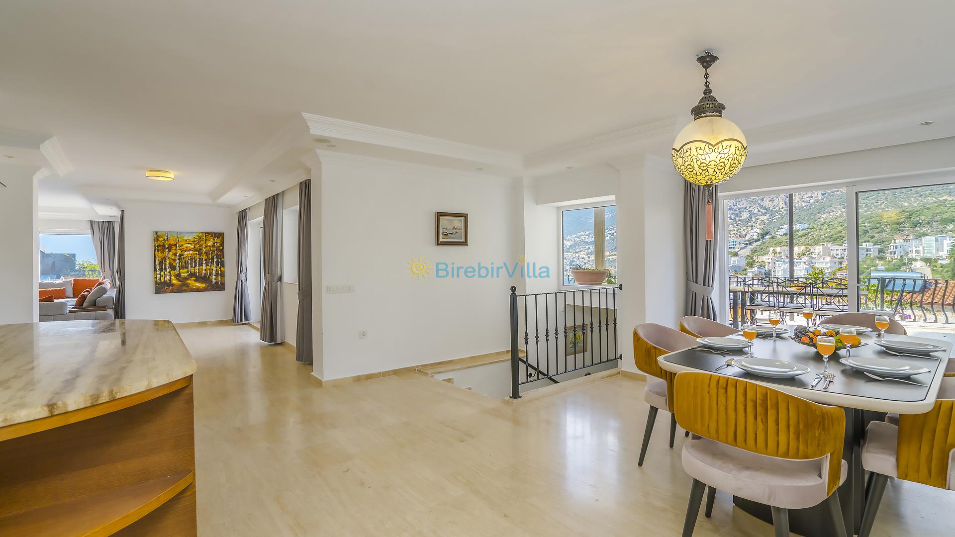 Salon: Özenle döşenmiş açık mutfaklı salon, şömine, modern koltuklar, Lcd tv, uydu alıcısı, 6 kişilik yemek masası, şömine ve klima bulunmaktadır.