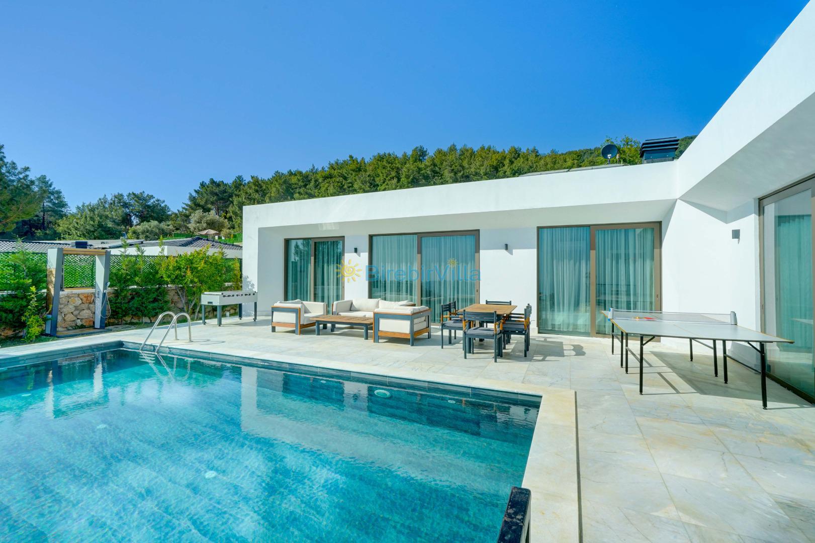 Not: Doğa ile iç içe yaşama sahibi olan tüm villalarımızda düzenli olarak ilaçlama yapılır. Buna rağmen çevrede haşere vb. olma ihtimali vardır. Havuzun korunaklı villalarımızda kesinlikle %100 görünmeme garantisi vermemekteyiz. Bu villalarımızda her zaman %10 sakınma payı mevcuttur.Sitemizde bulunan villa fotoğraflarının ekranı ekrana sığdırmak için 'Geniş Açılı Lens' ile çekilmektedir. Bu nedenle resimlerdeki objeler, gerçek boyutlardan daha büyük veya küçük görünebilmekte.