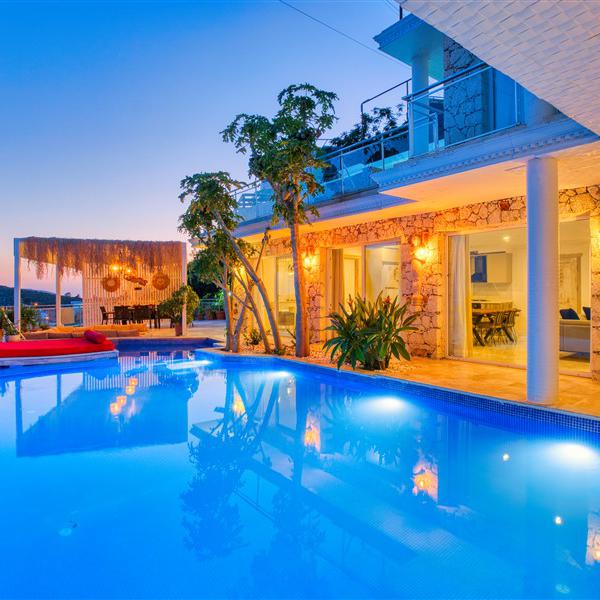 Villa Plaza, Kalkan merkezde bulunan 4 yatak odalı, 8 kişilik özel havuzlu ve deniz manzaralı kiralık geniş ailelere uygun villadır. Villamızda deniz manzarasının tadını çıkarın. Modern iç dizayna sahip villamız içerisinde jakuzi ve çocuk oyun alanı bulunmaktadır. Villamızda huzur dolu bir tatil sizi bekliyor.