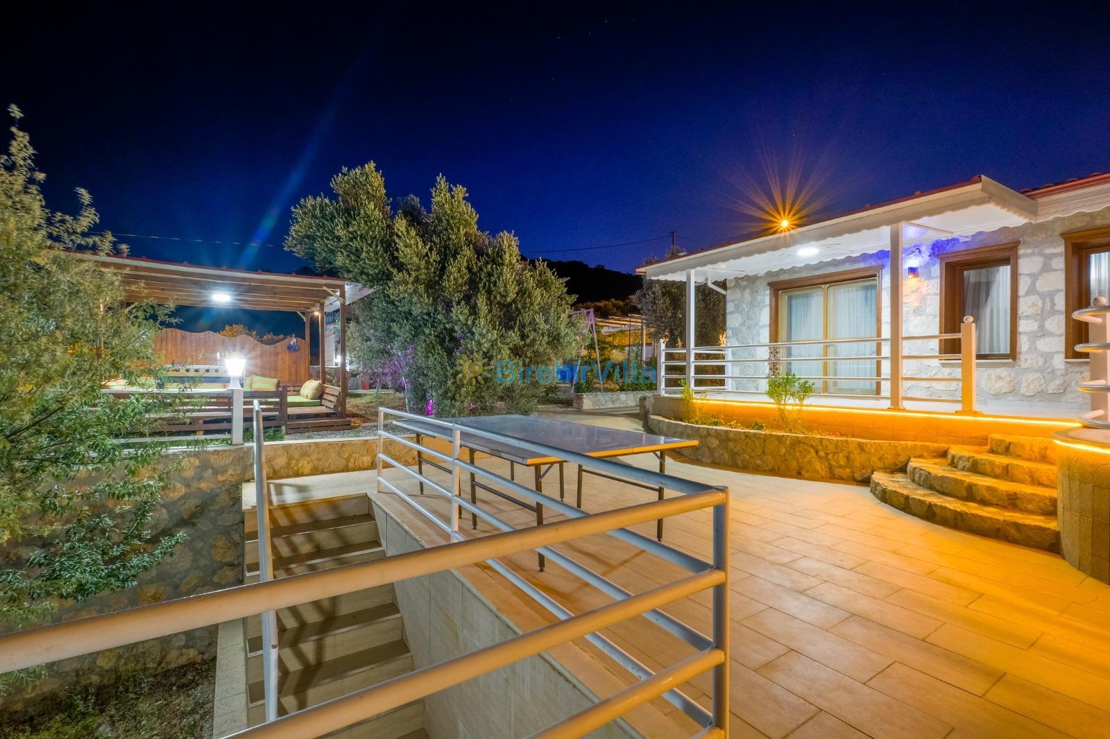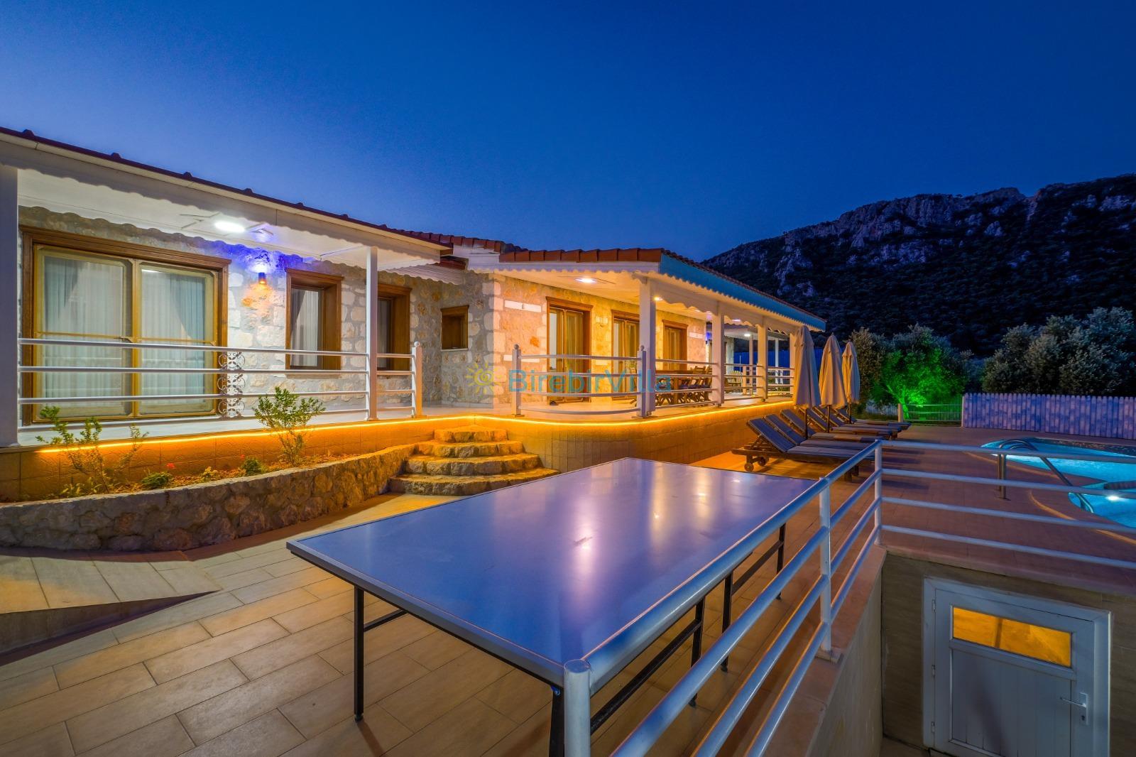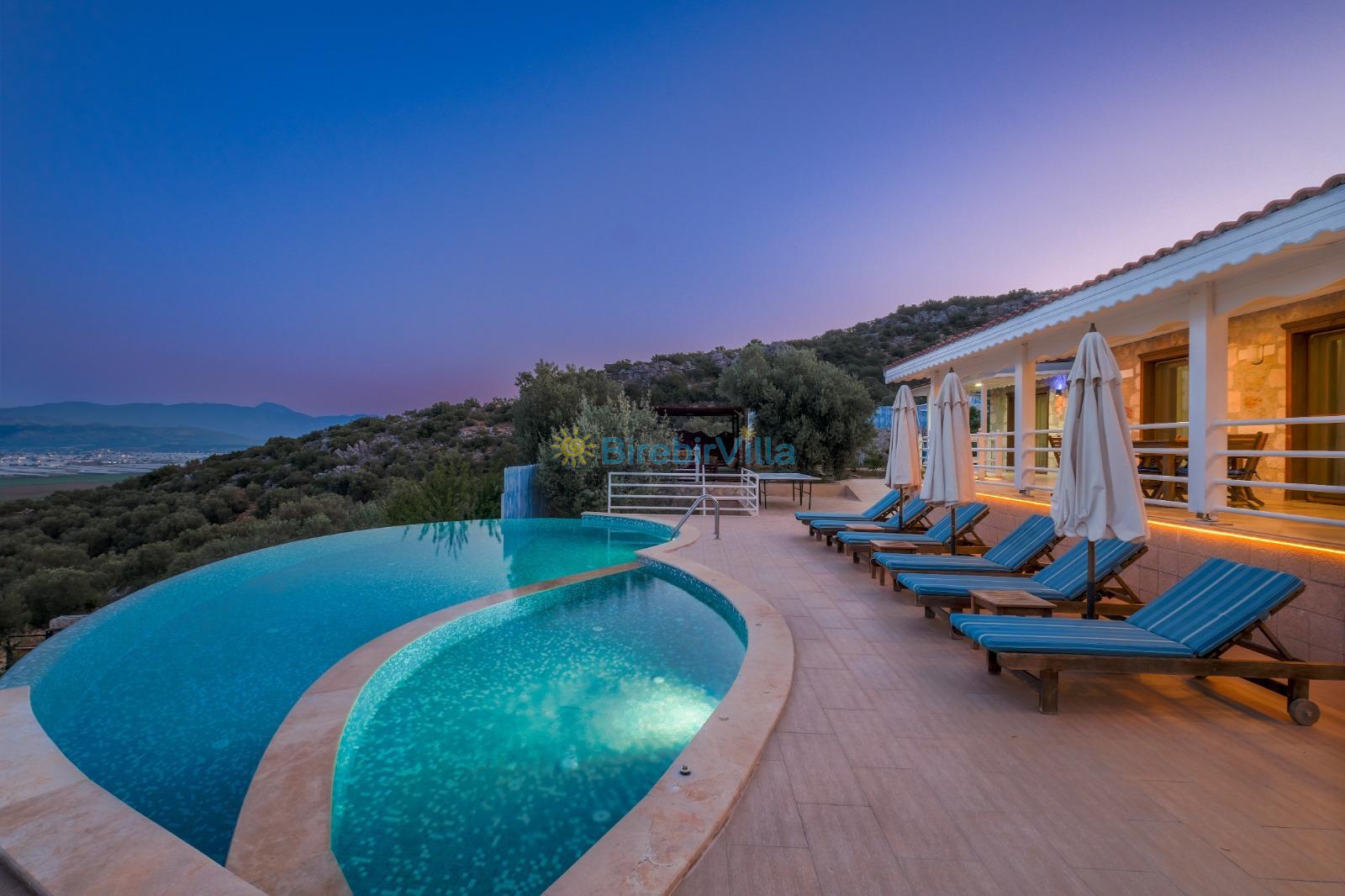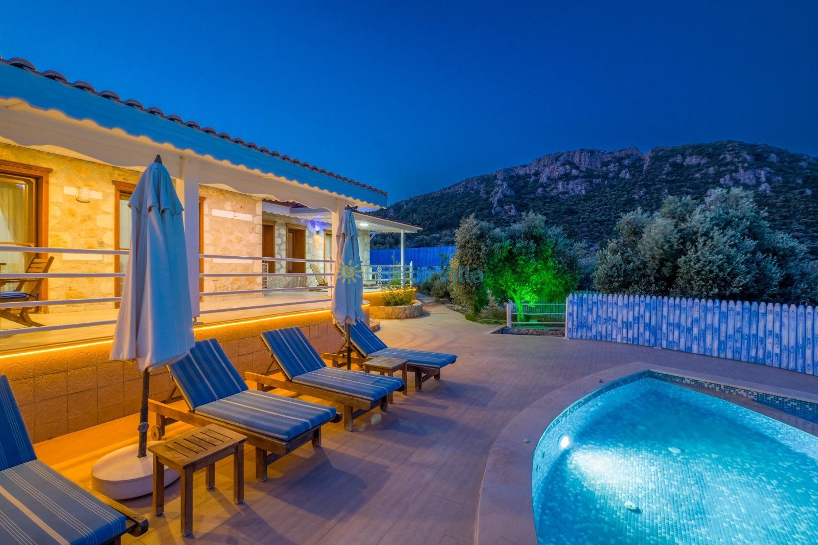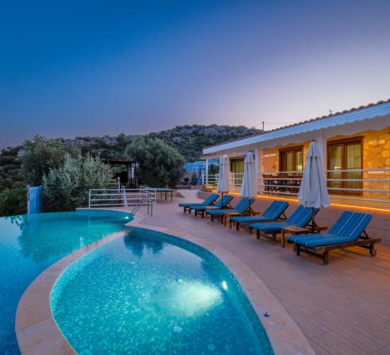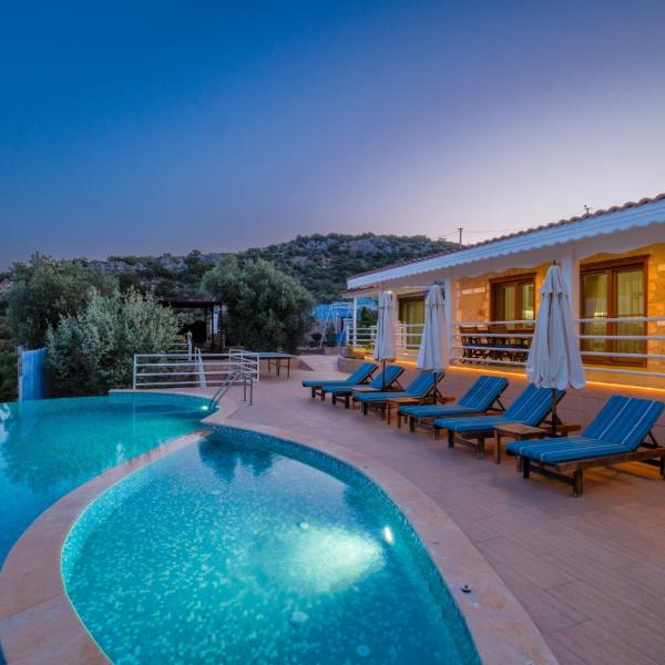 Villa Pool 1, Kalkan’ın doğası ve manzarasıyla öne çıkan Üzümlü mevkiinde yer alan, 3 yatak odalı ve 6 kişilik kapasiteye sahip, deniz manzaralı lüks kiralık tatil villasıdır. Şık mimarisi ve konforlu yaşam alanlarıyla aileler ve arkadaş grupları için seçkin bir tatil deneyimi sunar. Panoramik deniz manzarası eşliğinde keyifli vakit geçirebileceğiniz villa, modern ve özenle dekore edilmiş iç mekanı, tam donanımlı mutfağı ve ferah salonu ile misafirlerine üst düzey konfor sağlar. Doğa ile iç içe konumu sayesinde sakin bir tatil ortamı sunarken, Kalkan merkez ve plajlara kolay ulaşım imkanı da bulunmaktadır.