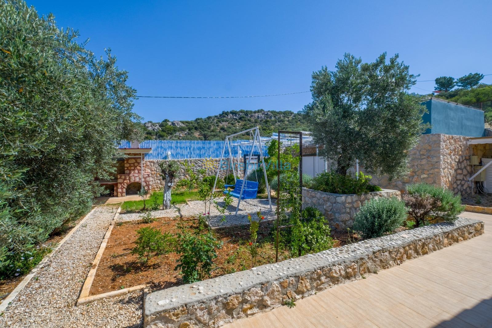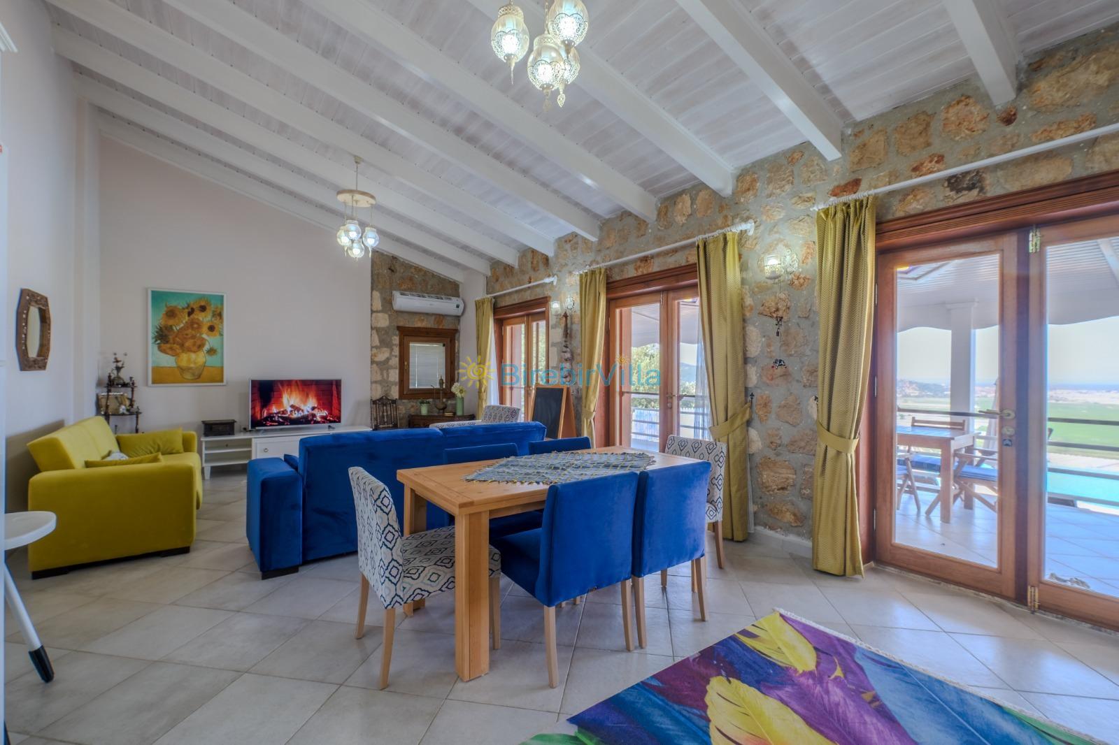 Salon: Özenle döşenmiş açık mutfaklı salon, modern koltuklar, yemek alanı, mama sandalyesi, Led tv, uydu alıcısı , klima ve Salondan havuza çıkış bulunmaktadır.