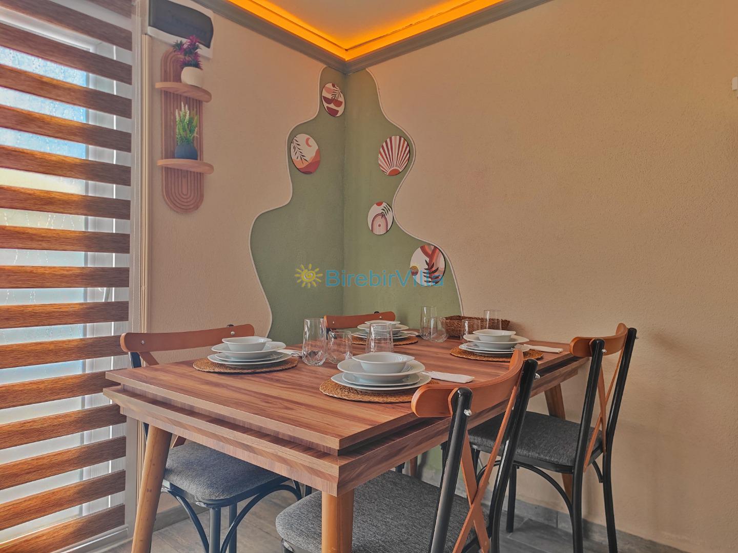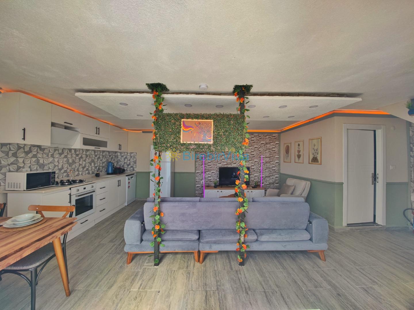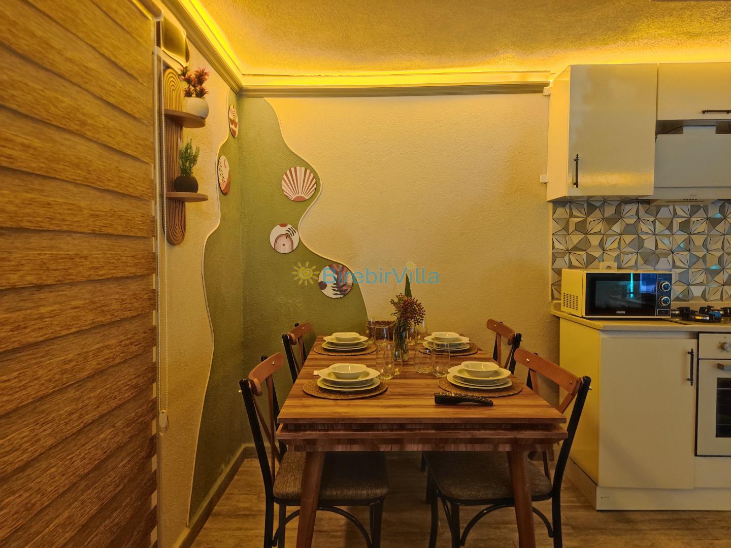 Mutfak: Buzdolabı, bulaşık makinesi, çamaşır makinesi, ankastre set, kettle, türk kahve makinesi, mikrodalga fırın yemek takımı ve tüm mutfak gereçleri yeteri kadar bulunmaktadır.