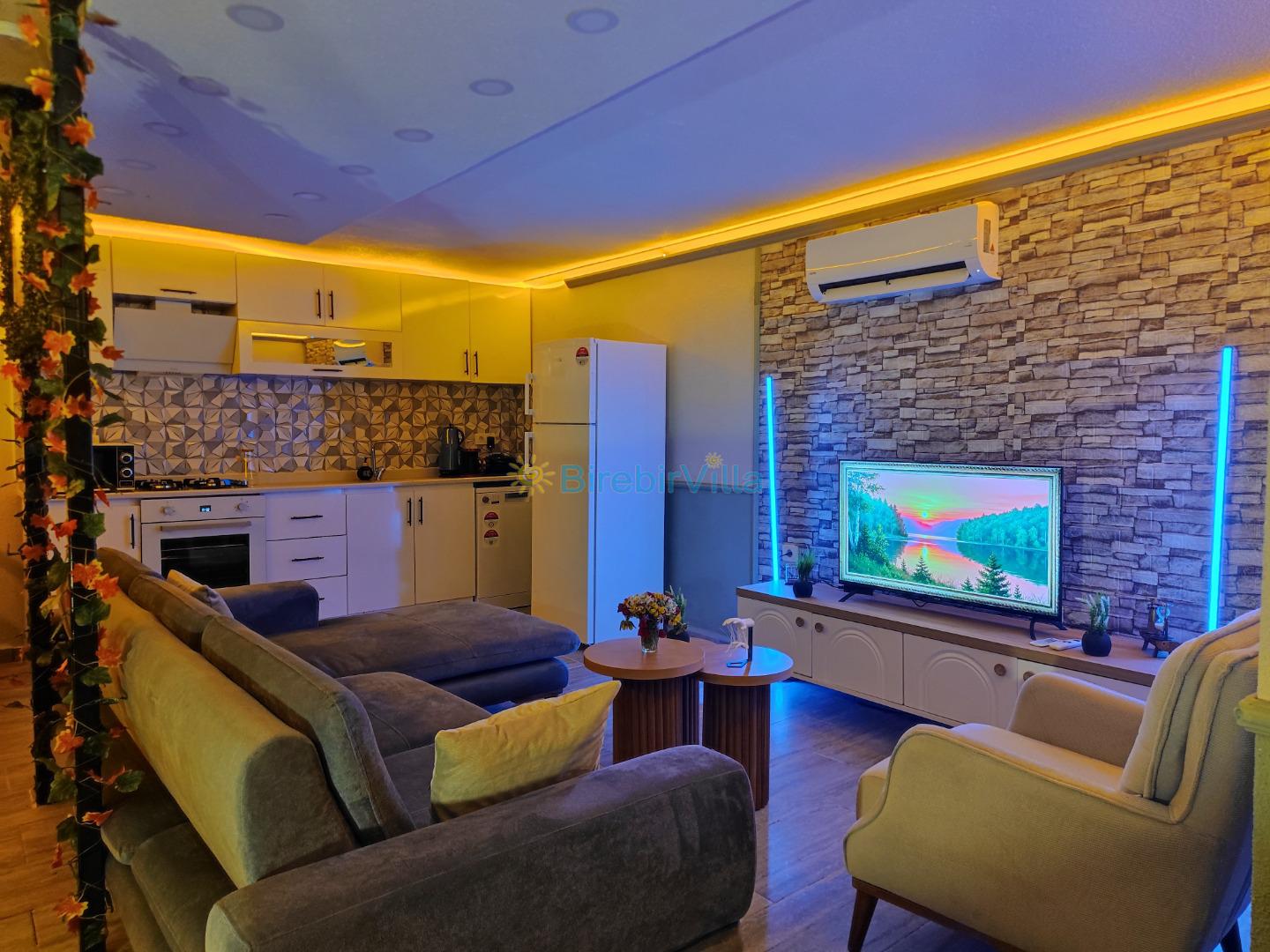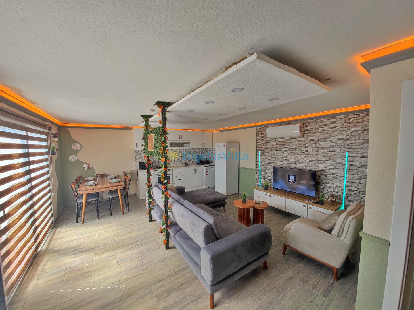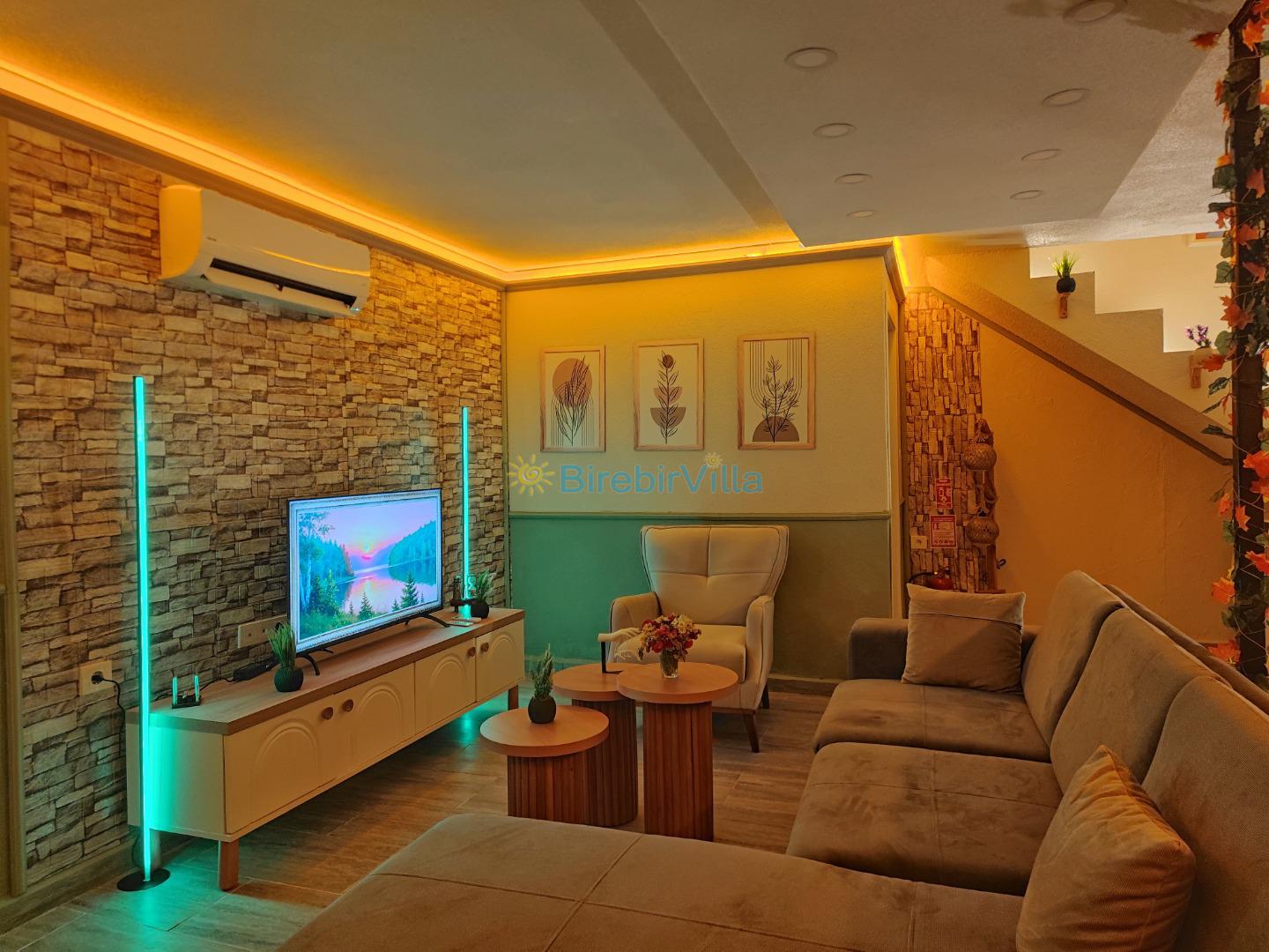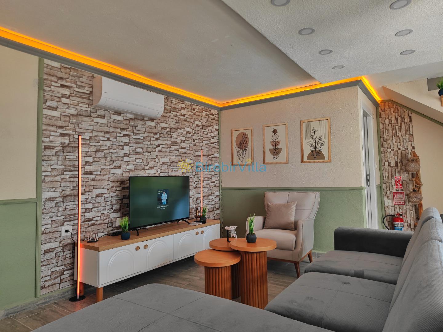 Salon: Ana salonda rahat ve konforlu oturma grubu, Lcd tv, klima ve havuz bölümüne çıkış kapısı bulunmaktadır.