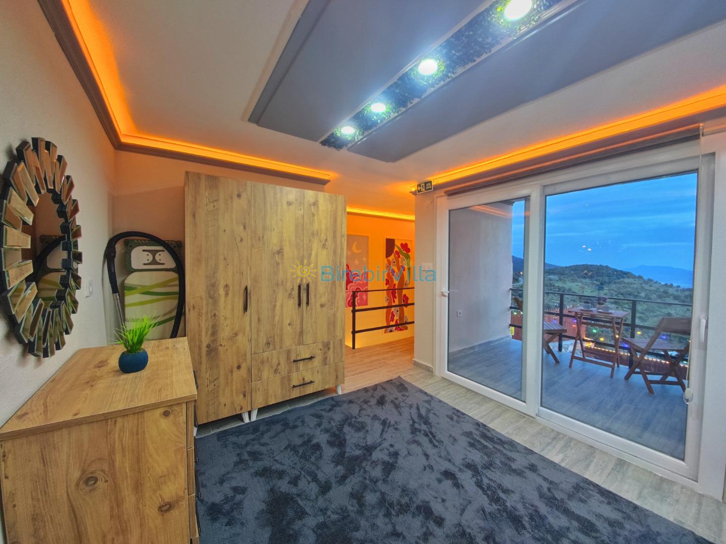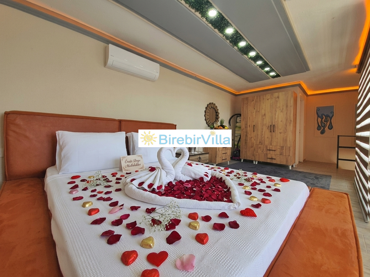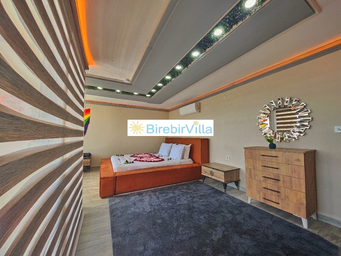 1.Yatak Odası: 1 adet çift kişilik yatak, ebeveyn banyosu, jakuzi, klima ve salıncak yer almaktadır.