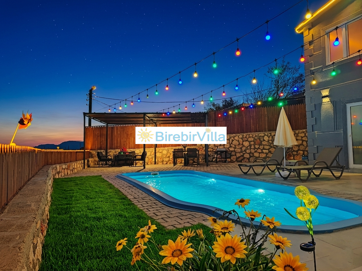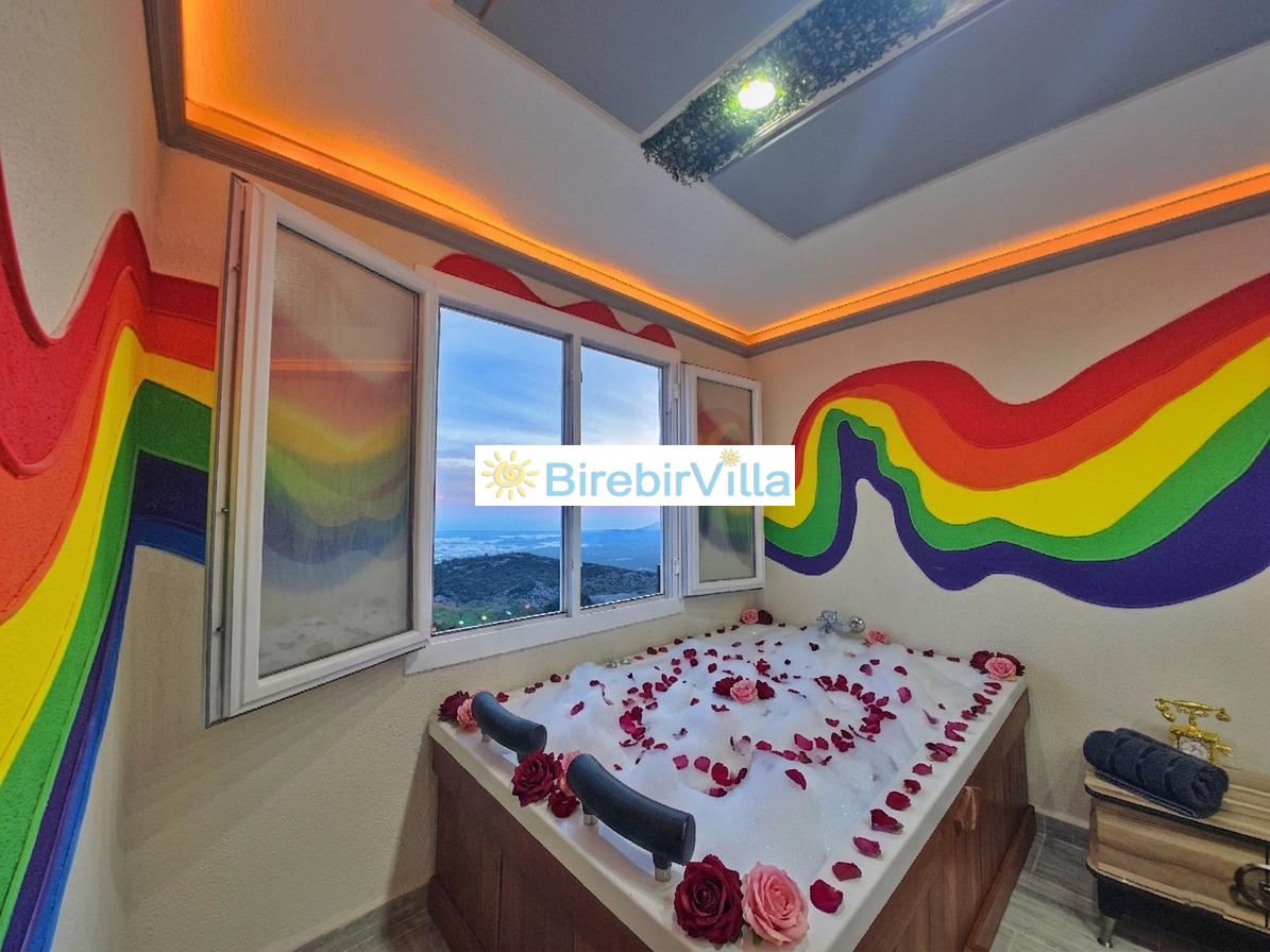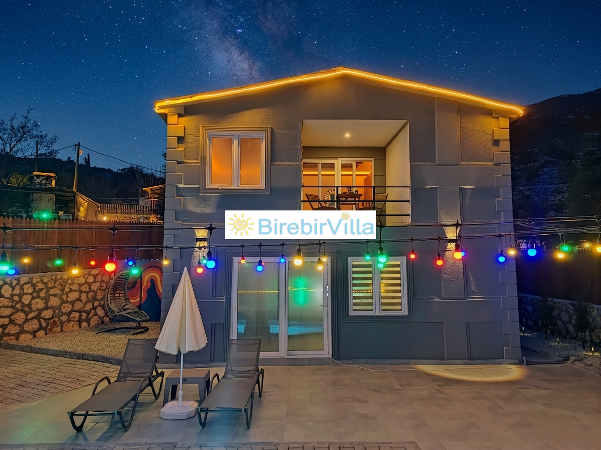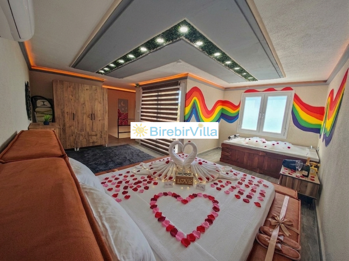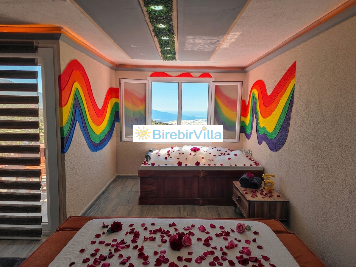 Villa Rengarenk, Kalkan’ın en çok tercih edilen ve huzurlu atmosferiyle öne çıkan Akbel mevkiinde konumlanan, balayı çiftlerine özel olarak tasarlanmış muhafazakar bir kiralık tatil villasıdır. Doğa ile iç içe konumu, eşsiz manzarası ve sakin yapısıyla dikkat çeken villamız, 1 yatak odası ve 2 kişilik konaklama kapasitesiyle özellikle romantik bir tatil planlayan çiftler için ideal bir seçenektir. Villa Rengarenk, dışarıdan görünmeyen özel yüzme havuzu sayesinde muhafazakar villa arayan misafirler için maksimum gizlilik sunarken, jakuzili yapısıyla da konfor ve lüksü bir arada yaşama imkanı sağlar. Modern ve şık iç dekorasyonu, tam donanımlı mutfağı, ferah yaşam alanları ve doğa manzaralı terası ile unutulmaz bir balayı tatili deneyimi sunmaktadır.