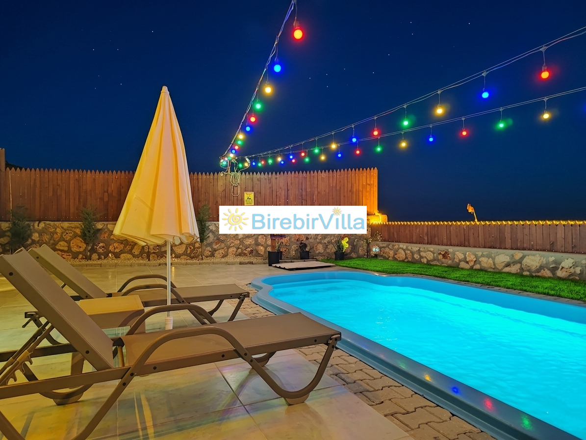 Not: Doğa ile iç içe konuma sahip olan tüm villalarımızda düzenli olarak ilaçlama yapılır. Buna rağmen çevrede haşere vb. bulunma ihtimali vardır. Havuzu korunaklı villalarımızda kesinlikle %100 görünmeme garantisi vermemekteyiz. Bu villalarımızda her zaman %5 sakınma payı mevcuttur. Sitemizde bulunan villa fotoğraflarının, görüntüyü ekrana sığdırmak için ’Geniş Açılı Lens’ ile çekilmektedir. Bu sebeple resimlerdeki objeler, gerçek boyutlarından daha büyük veya küçük görünebilmekte.