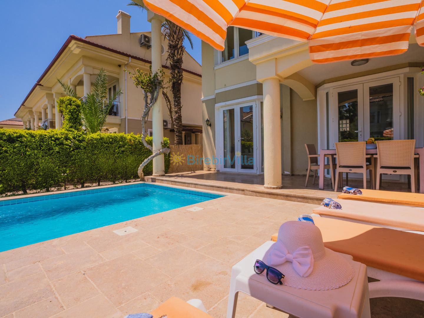 Not: Doğa ile iç içe konuma sahip olan tüm villalarımızda düzenli olarak ilaçlama yapılır. Buna rağmen çevrede haşere vb. bulunma ihtimali vardır. Havuzu korunaklı villalarımızda kesinlikle %100 görünmememe garantisi vermemekteyiz. Bu villalarımızda her zaman %5 sakınma payı mevcuttur. Sitemizde bulunan villa fotoğraflarının, görüntüyü ekrana sığdırmak için ’Geniş Açılı Lens’ ile çekilmektedir. Bu sebeple resimlerdeki objeler, gerçek boyutlarından daha büyük veya küçük görünebilmekte.