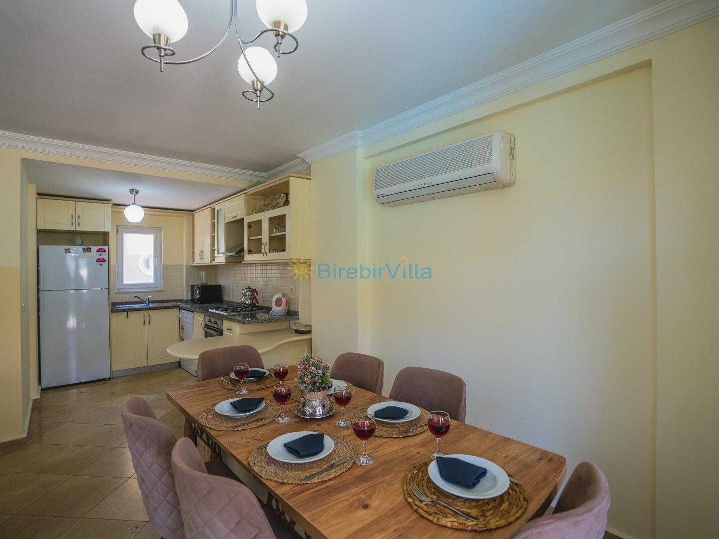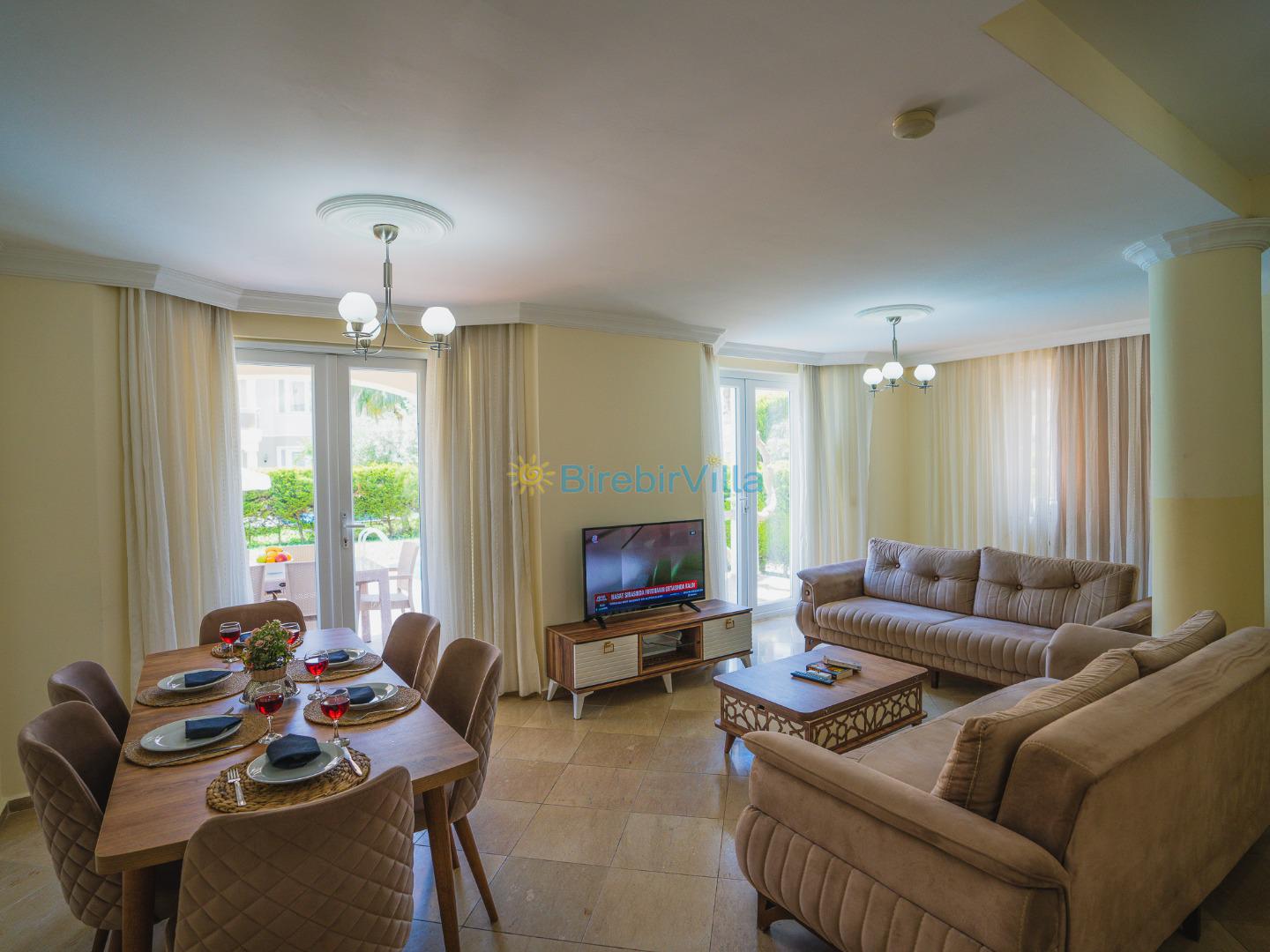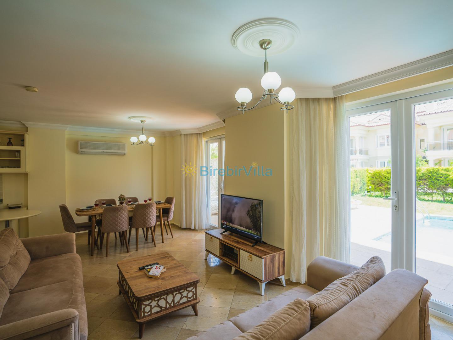 Salon: Modern koltuklar, 6 kişilik yemek masası, sehpa, ünite, Lcd tv, uydu alıcısı ve klima bulunmaktadır.