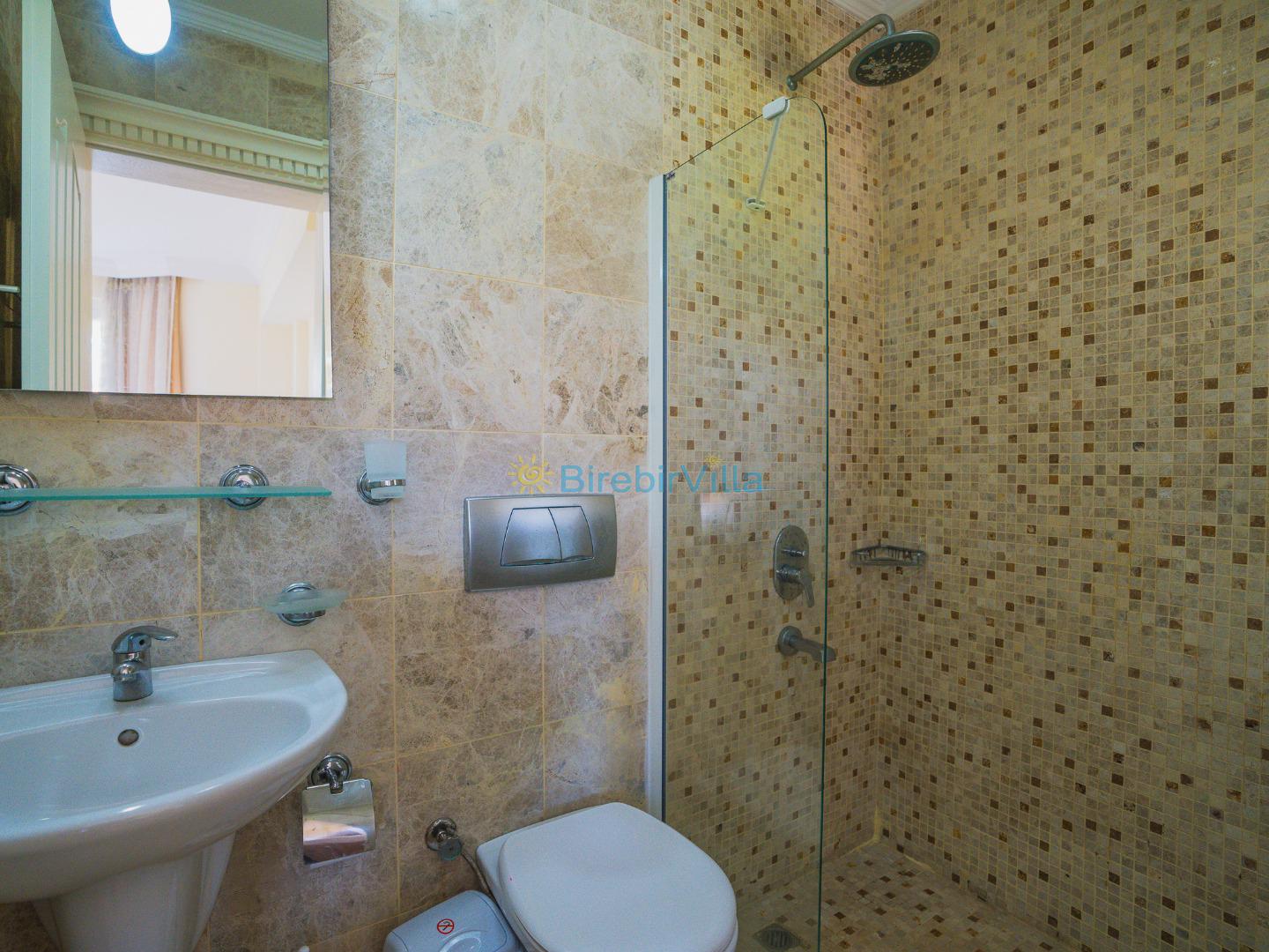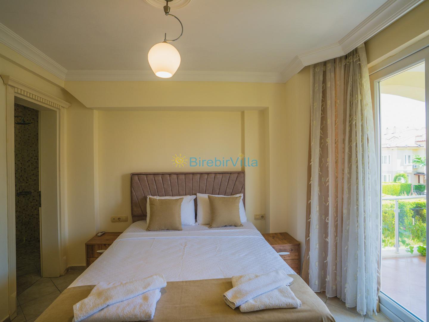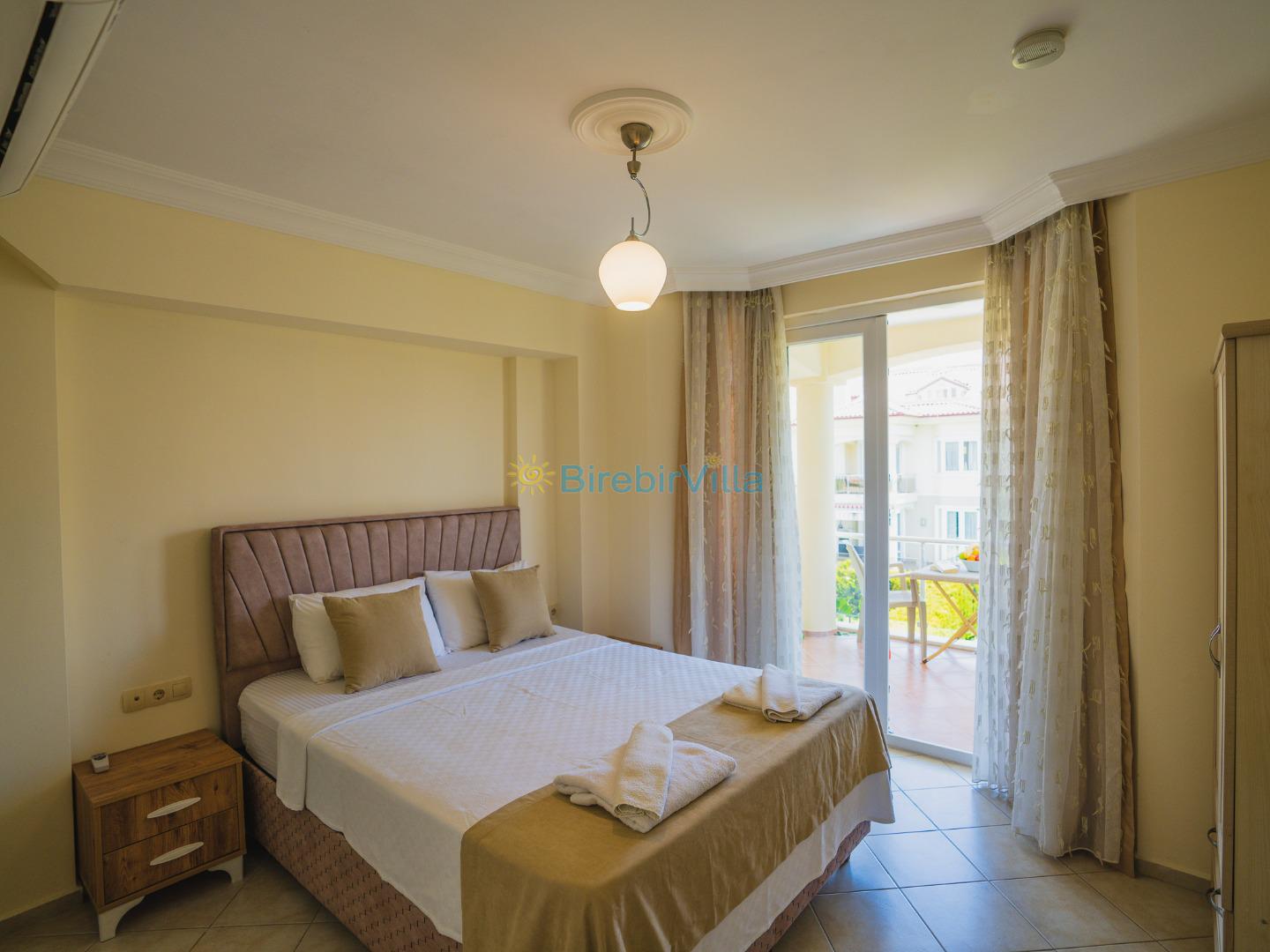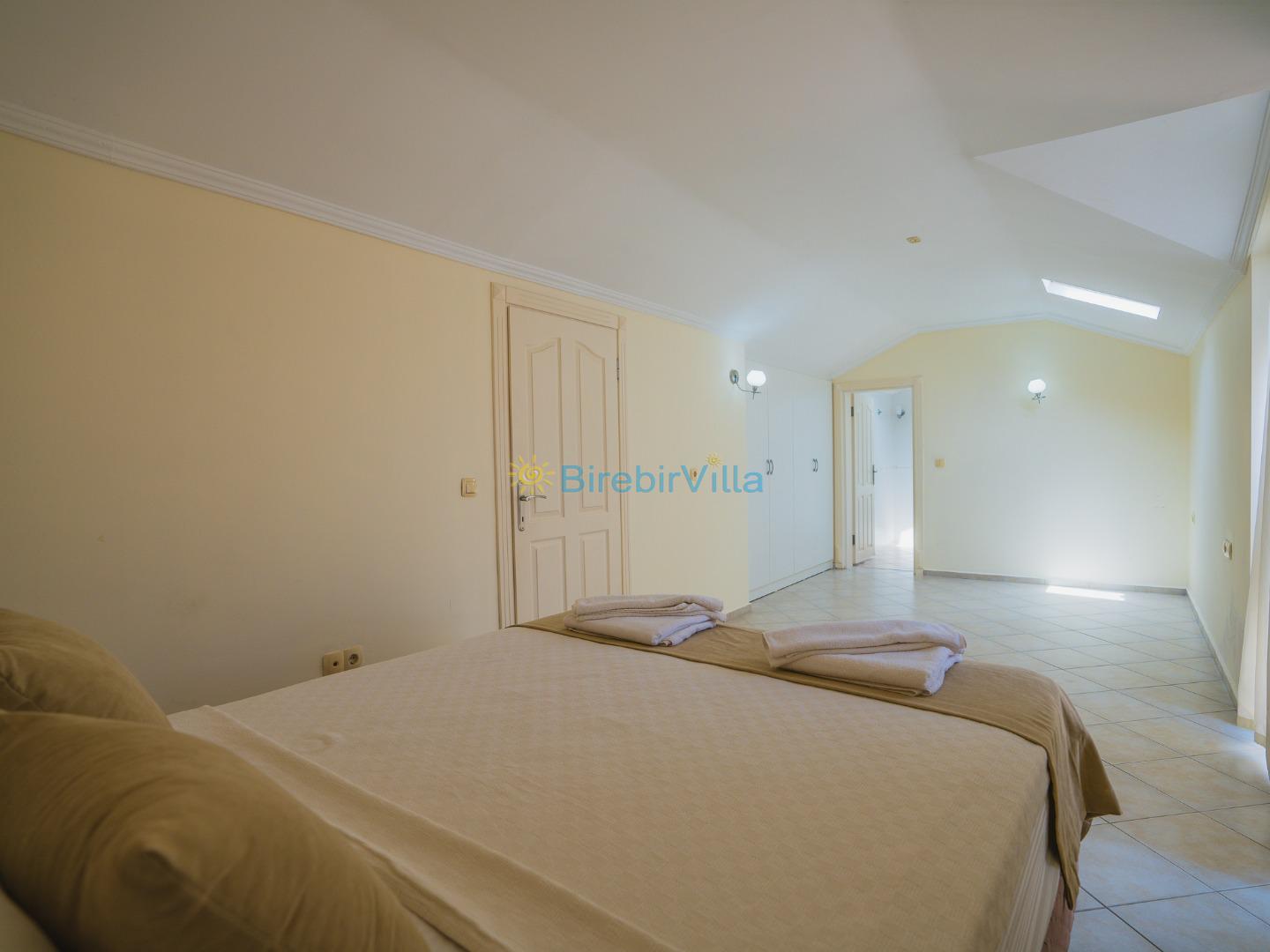 2.Yatak odası: Çift kişilik yatak, klima, elbise dolabı, komodin ve ebeveyn banyo bulunmaktadır.