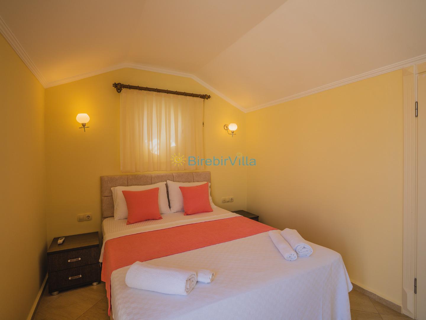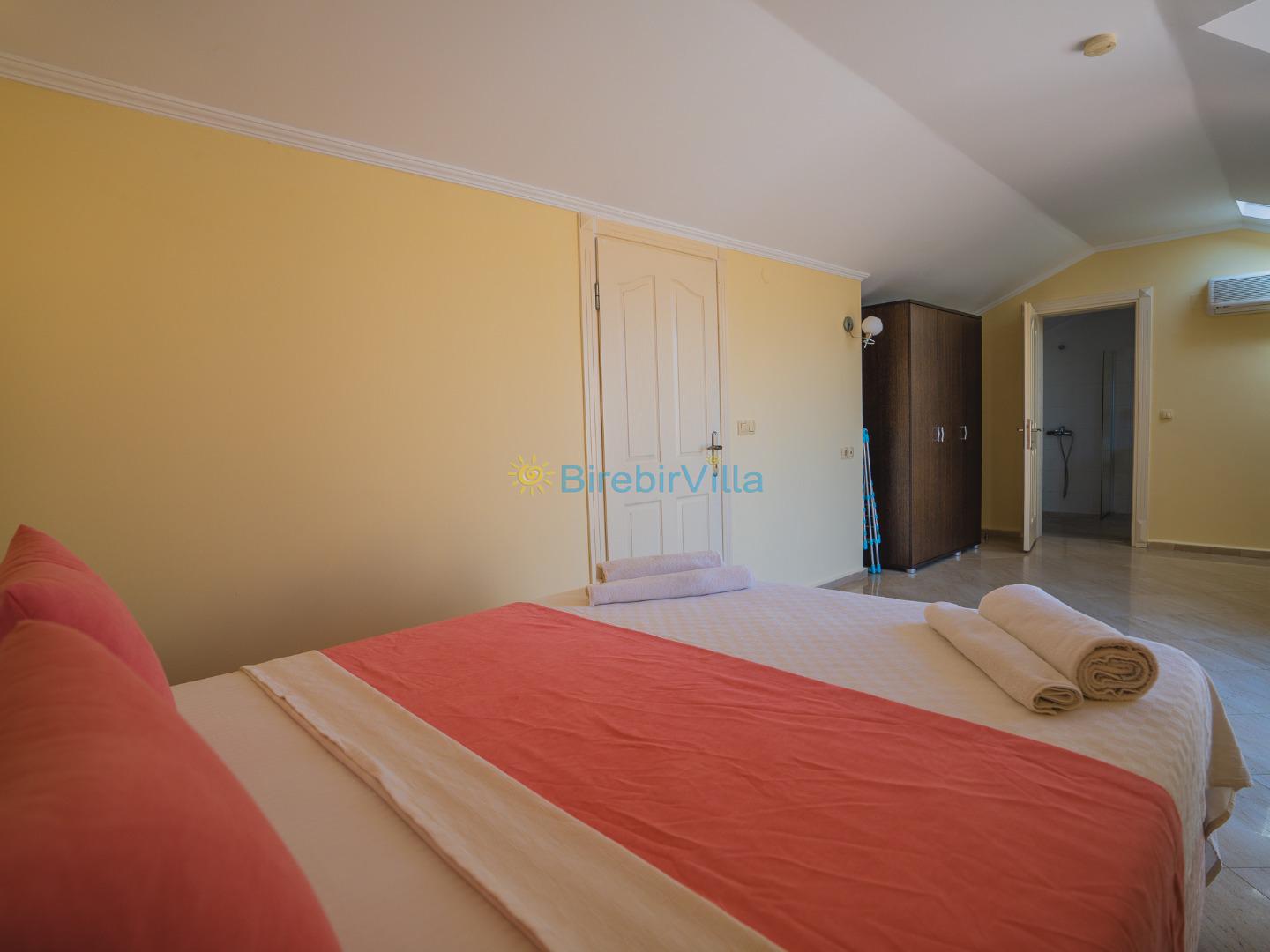 1.Yatak odası: Çift kişilik yatak, klima, elbise dolabı, komodin ve ebeveyn banyo bulunmaktadır.