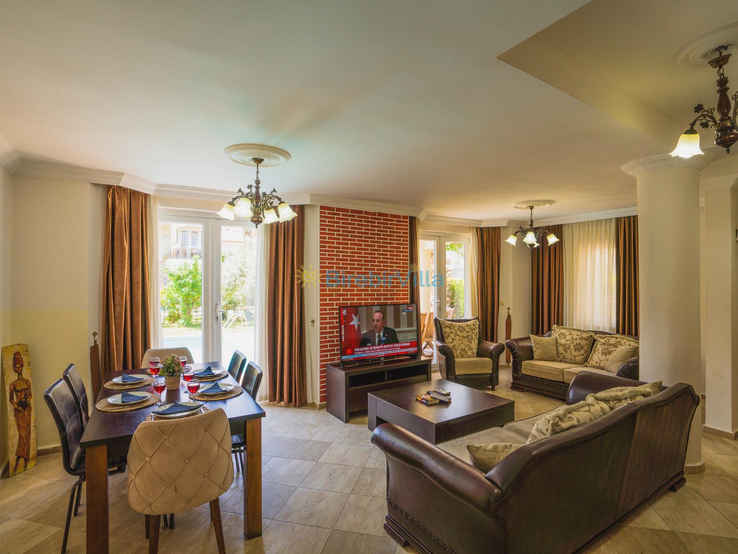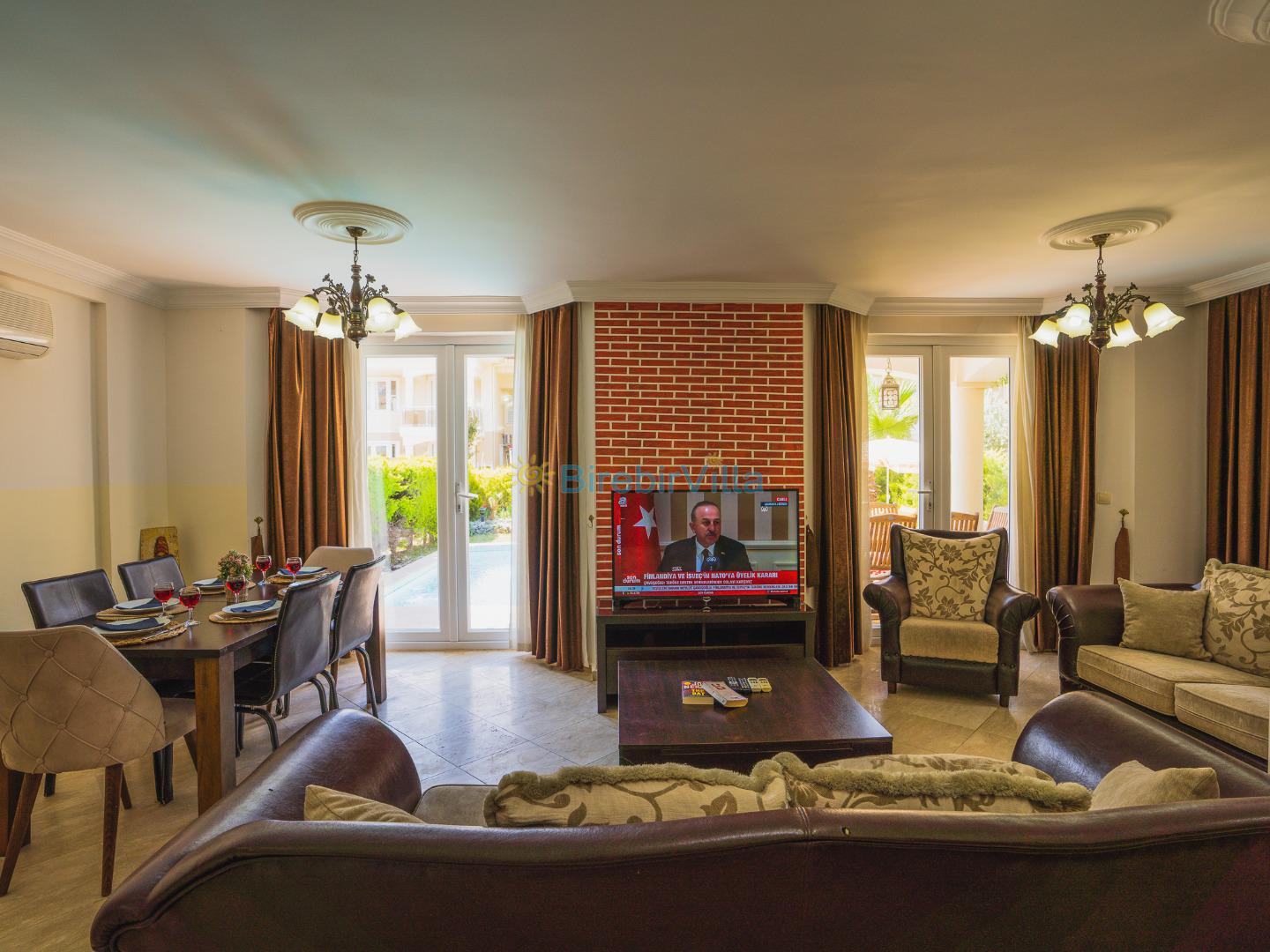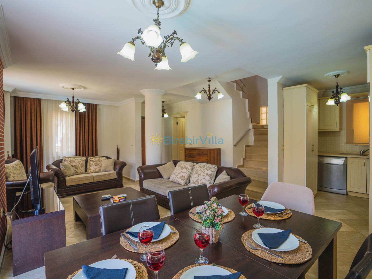 Salon: Modern koltuklar, 6 kişilik yemek masası, sehpa, ünite, Lcd tv, uydu alıcısı ve klima bulunmaktadır.
