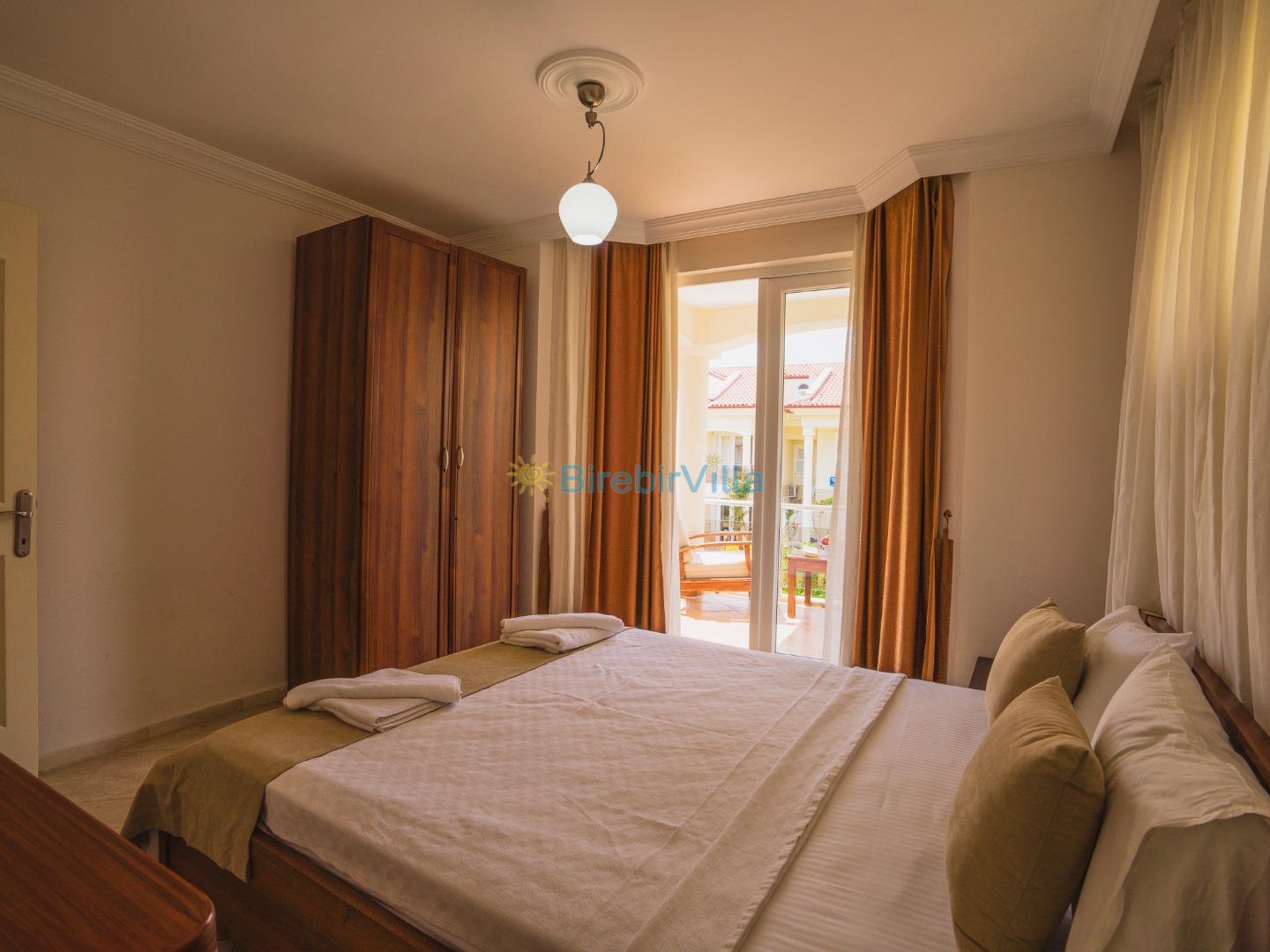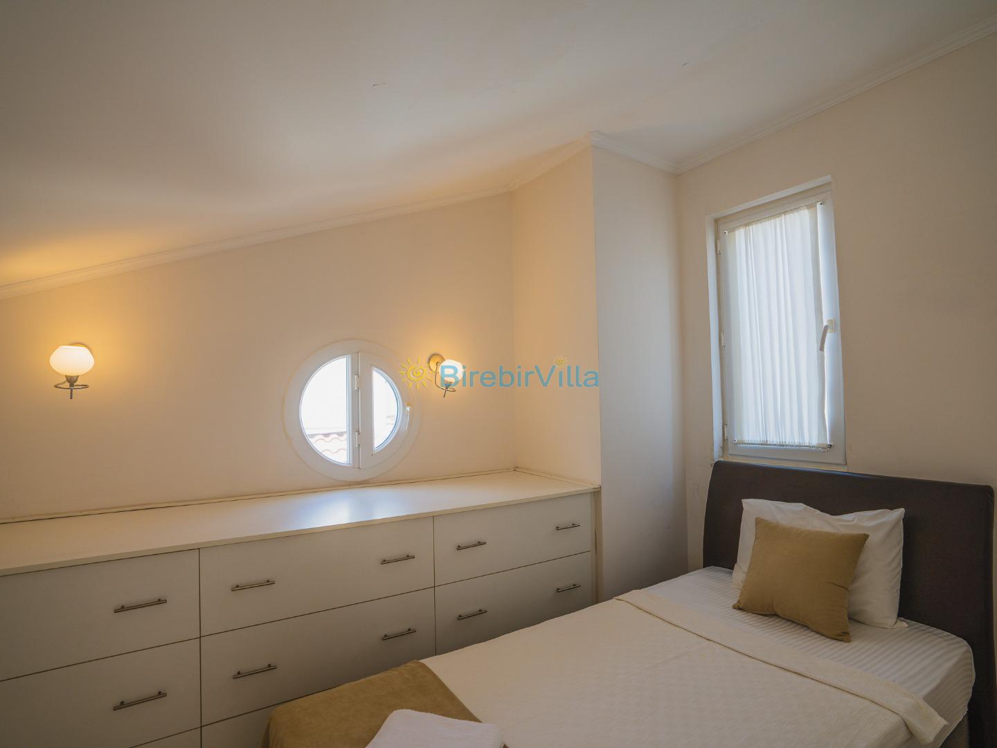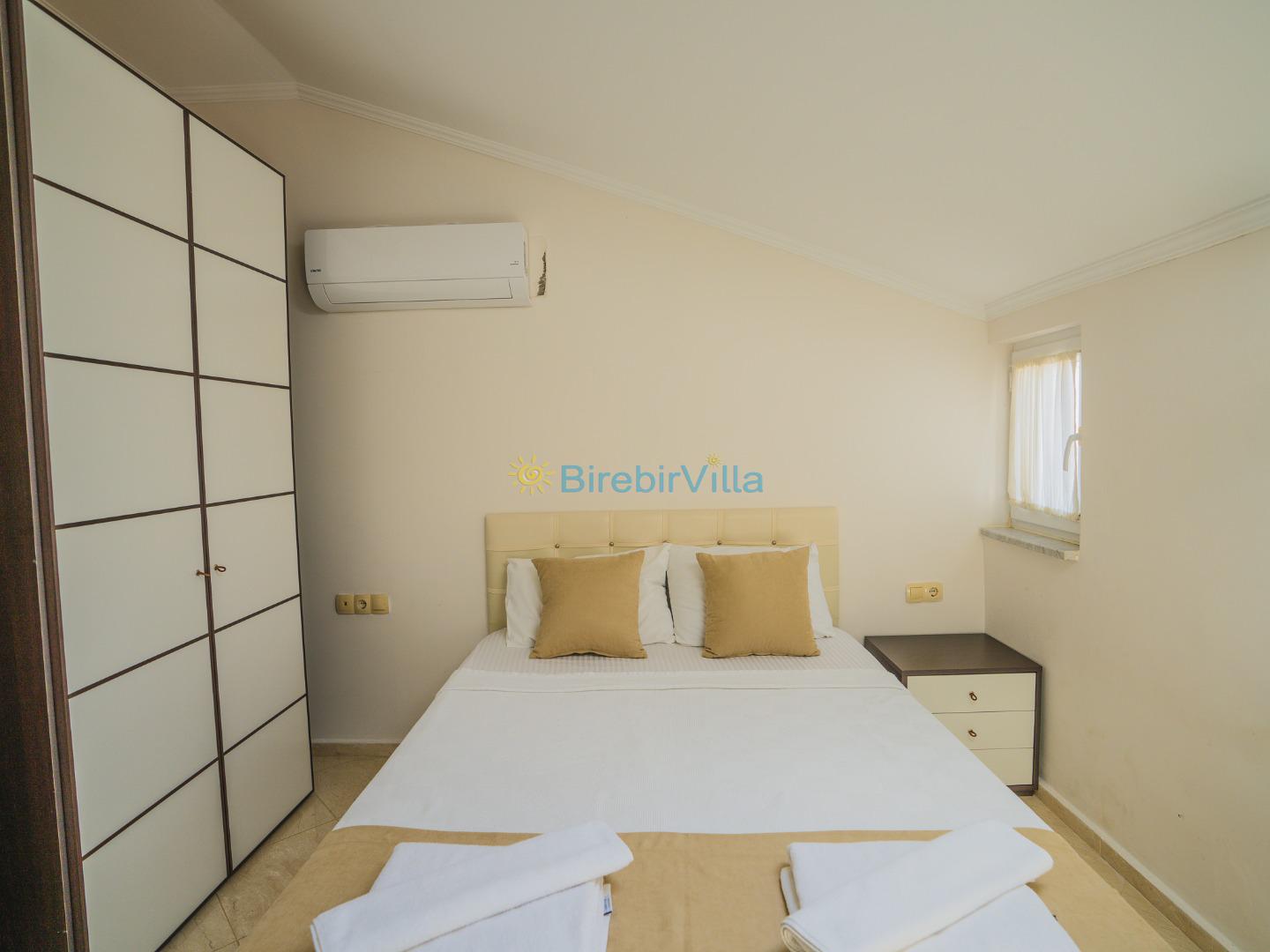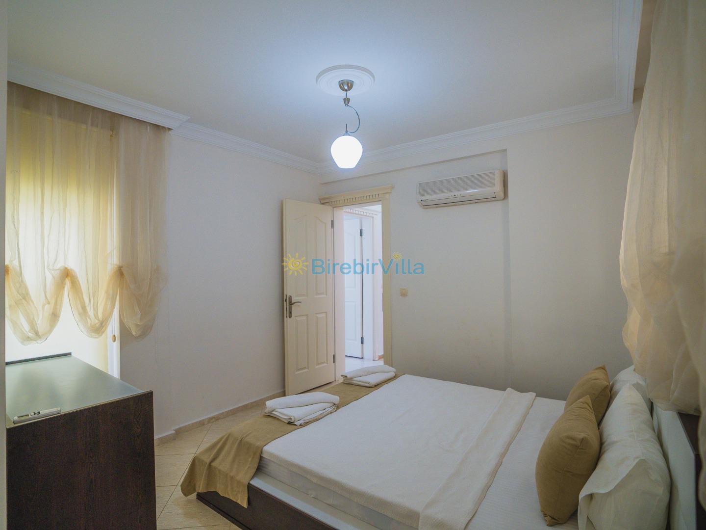 5.Yatak odası: Çift kişilik yatak, elbise dolabı, komodin ve klima bulunmaktadır.