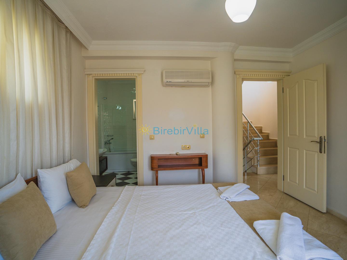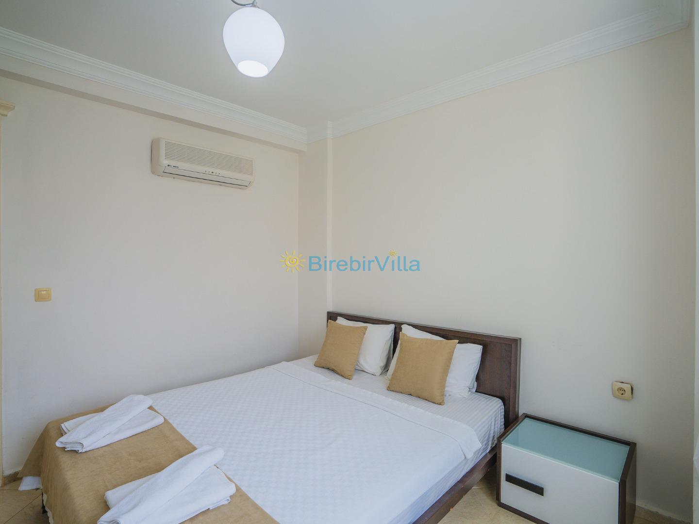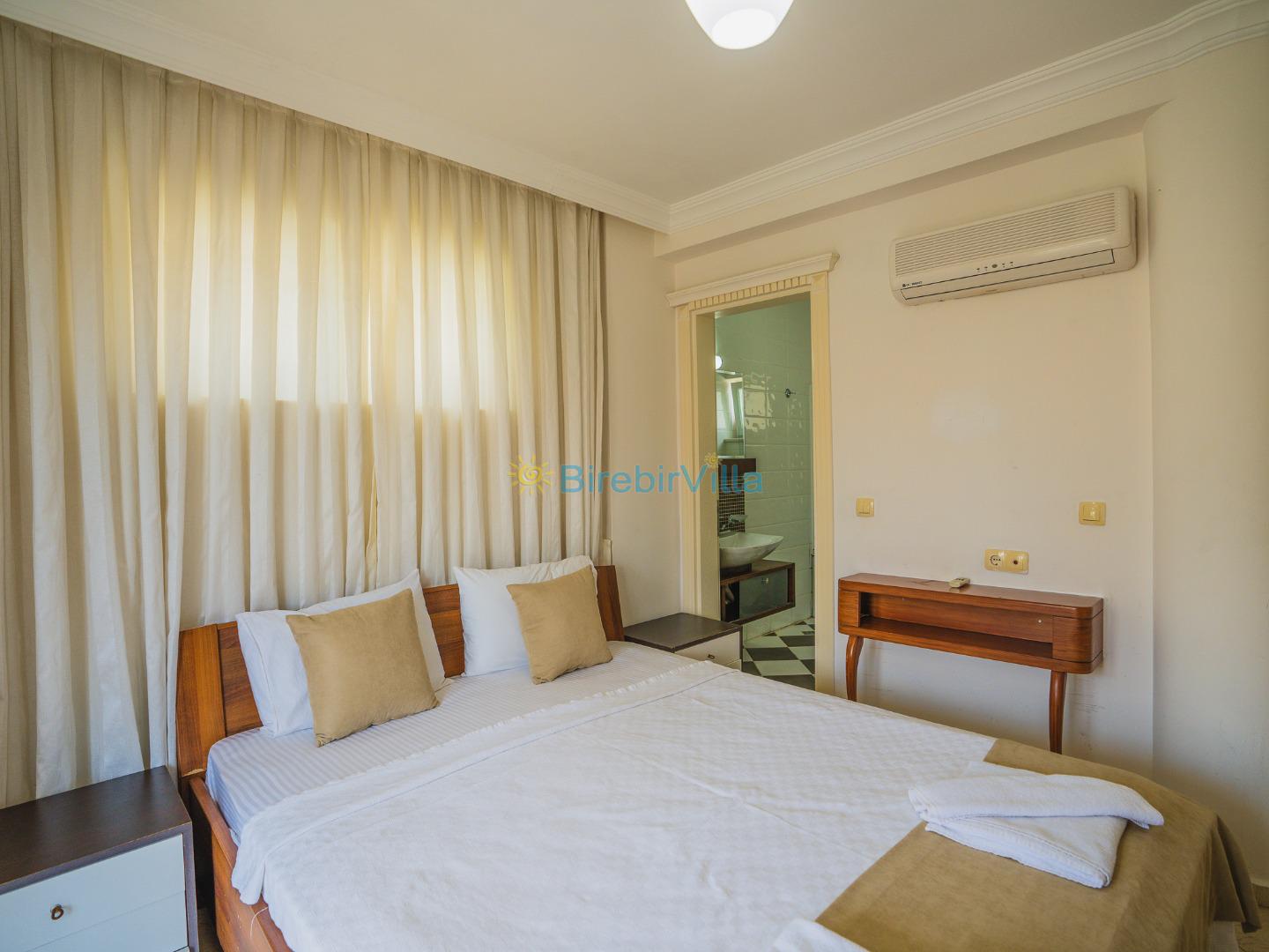 1.Yatak odası: Çift kişilik yatak, klima, elbise dolabı, komodin ve ebeveyn banyo bulunmaktadır.