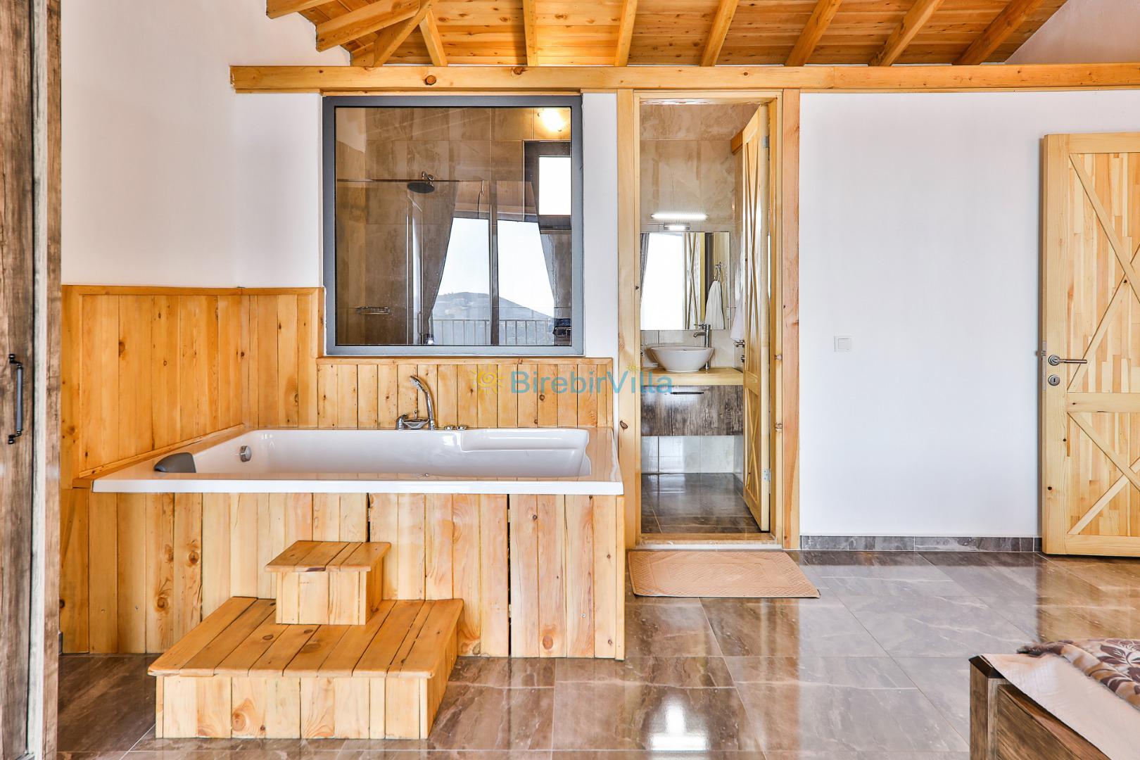 1.Yatak odası: 1 adet çift kişilik yatak ,klima, jakuzi, elbise dolabı, komodin, televizyon, makyaj masası, ebeveyn banyo ve kapalı havuza kapısı bulunmaktadır.