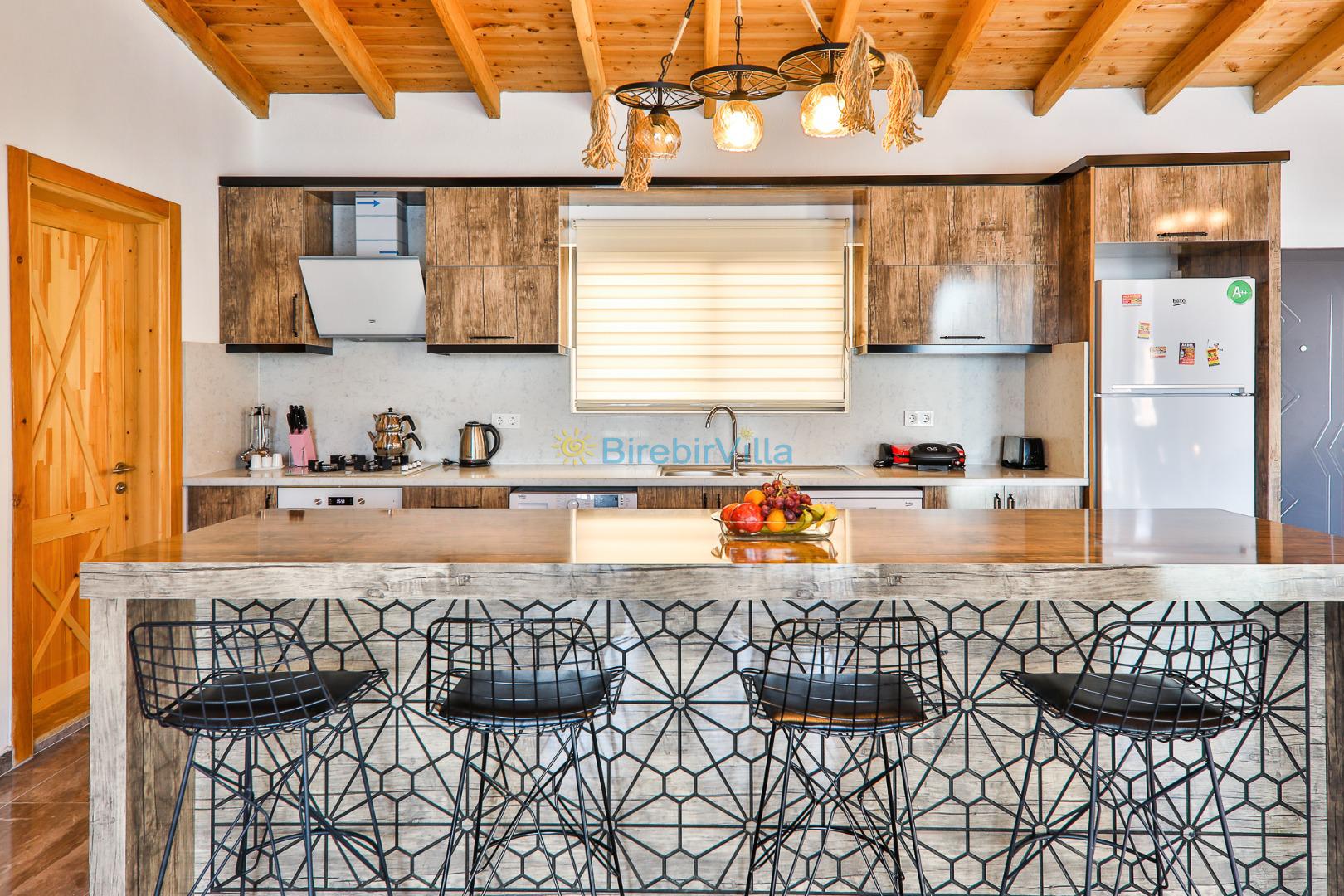 Mutfak: Açık plan mutfak, bulaşık makinesi, buzdolabı, elektrikli su ısıtıcı kettle, çamaşır makinesi, fırın, 4’lü ocak, 4 kişilik yemek takımı, tost makinesi, kaşık, bıçak, çatal takımı, tencere, bardaklar ve tava takımı bulunmaktadır. Mutfaktan bahçeye çıkışımız mevcuttur