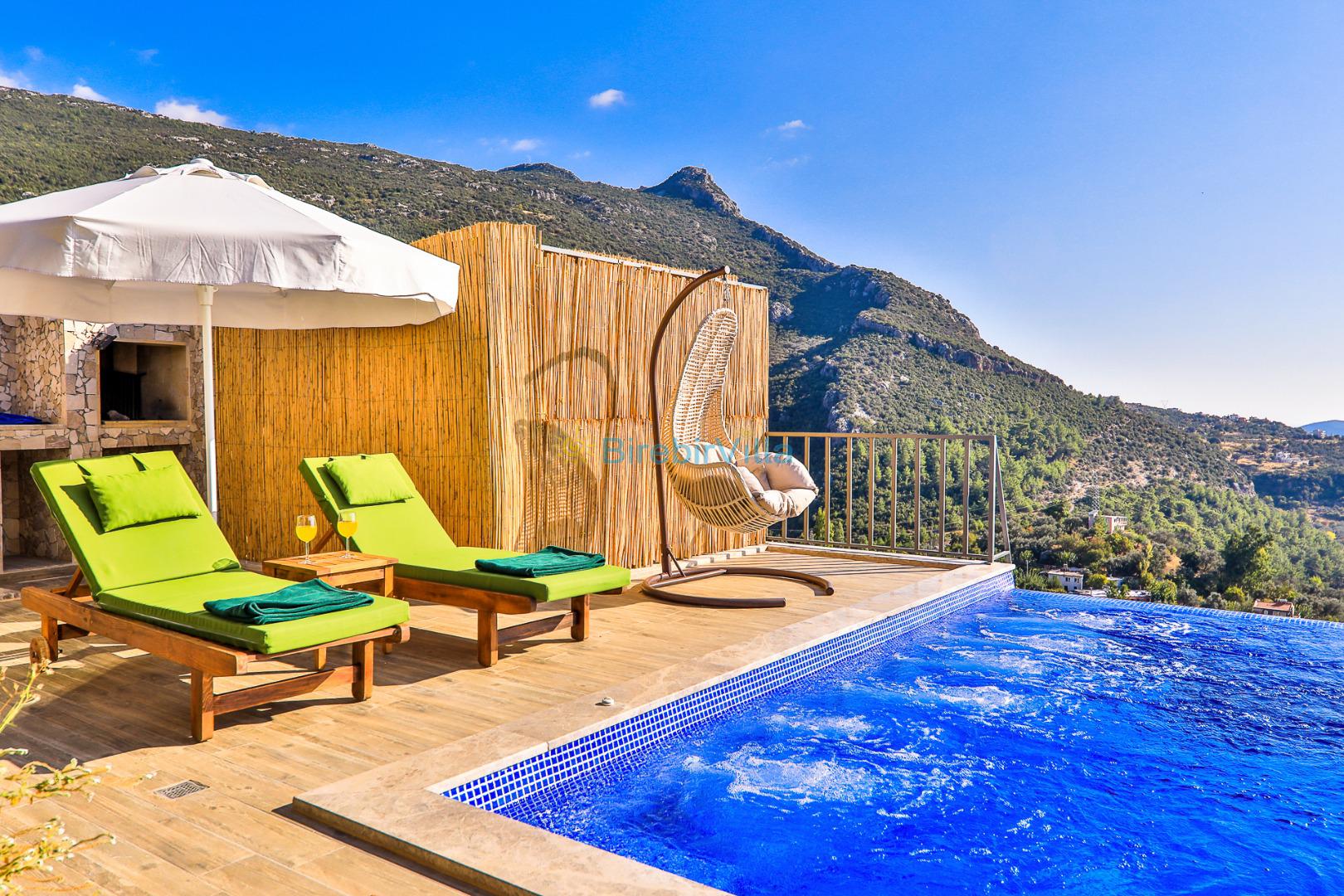 Villa Seçil, Antalya’nın gözde tatil beldelerinden Kalkan’ın İslamlar Köyü’nde konumlanan, mahremiyet ve konforu bir arada sunan lüks muhafazakar tatil villasıdır. 2 yatak odası ile çekirdek aileler ve balayı çiftleri için ideal bir konaklama imkânı sunmaktadır. Villada yer alan kapalı ısıtmalı yüzme havuzu, yılın dört mevsimi tatil yapabilme ayrıcalığı sağlarken, bahçede bulunan korunaklı açık havuz sayesinde muhafazakar aileler gözlerden uzak bir tatilin keyfini çıkarabilir. Doğa manzaralı konumu, modern iç tasarımı ve sakin atmosferiyle Villa Seçil, huzurlu ve ayrıcalıklı bir villa tatili sunar.