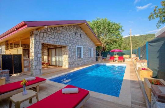 Villa Sevil 1, Fethiye’nin Kayaköy mevkisinde yer alan, 2 yatak odalı ve 4 kişi konaklama kapasiteli jakuzili muhafazakar kiralık villa konseptine sahip özel bir tatil villasıdır. Korunaklı yapısı sayesinde gözlerden uzak, huzurlu ve güvenli bir tatil imkânı sunmaktadır. Özellikle Fethiye muhafazakar villa kiralama, Kayaköy jakuzili villa ve 4 kişilik kiralık villa arayışında olan misafirler için ideal olan Villa Sevil 1, balayı çiftleri ve çekirdek aileler tarafından sıklıkla tercih edilmektedir. Modern ve konforlu donanımıyla misafirlerine keyifli bir konaklama deneyimi sunar.